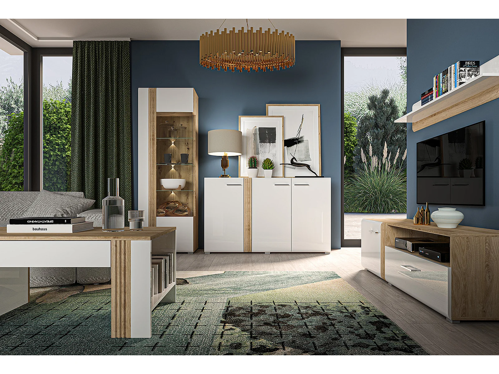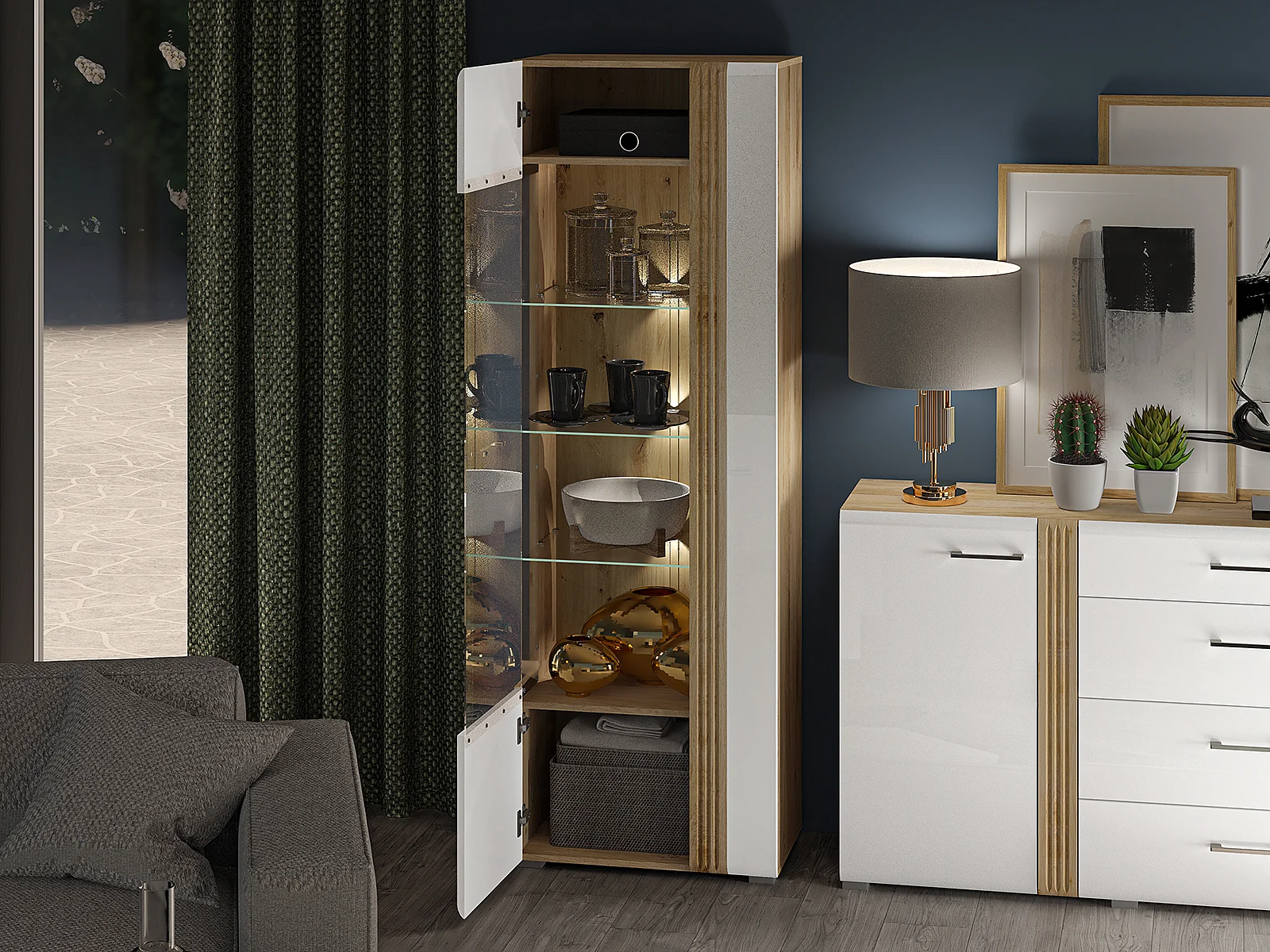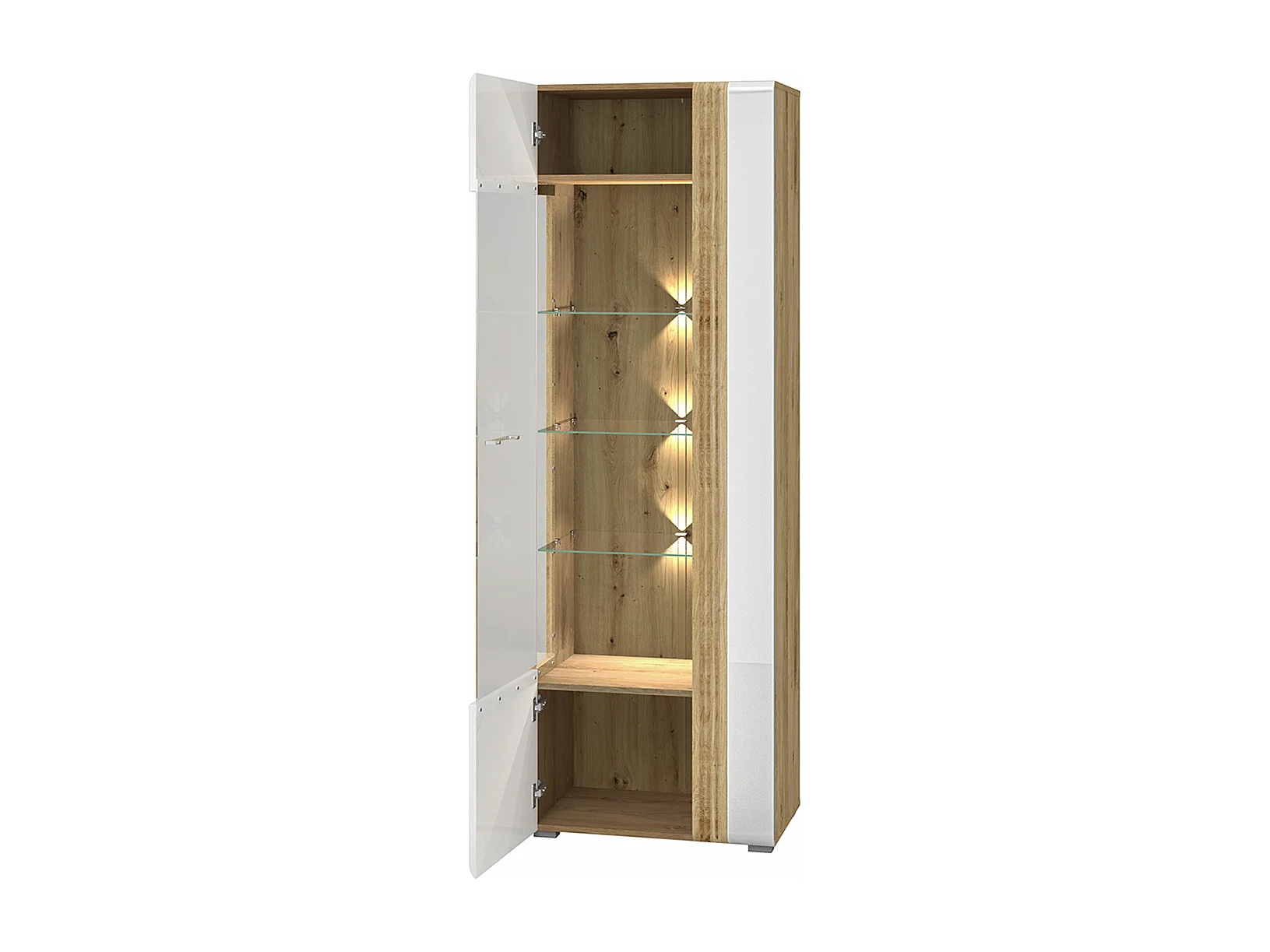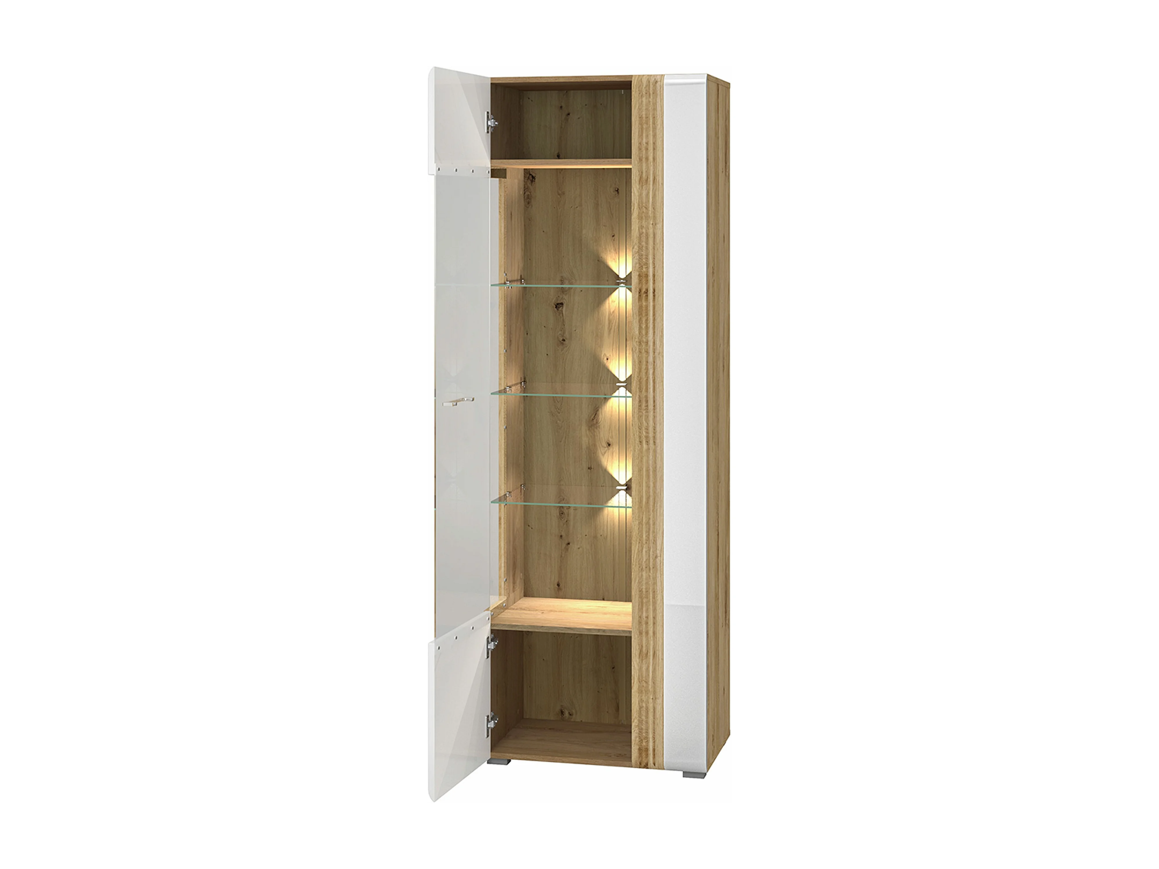 STANDVITRINE Adagio weiß hochglanz / Eiche castello 65 / 42 / 196cm