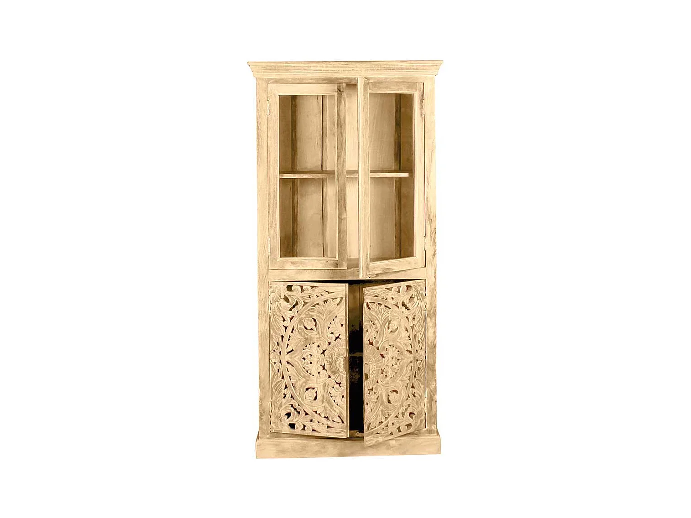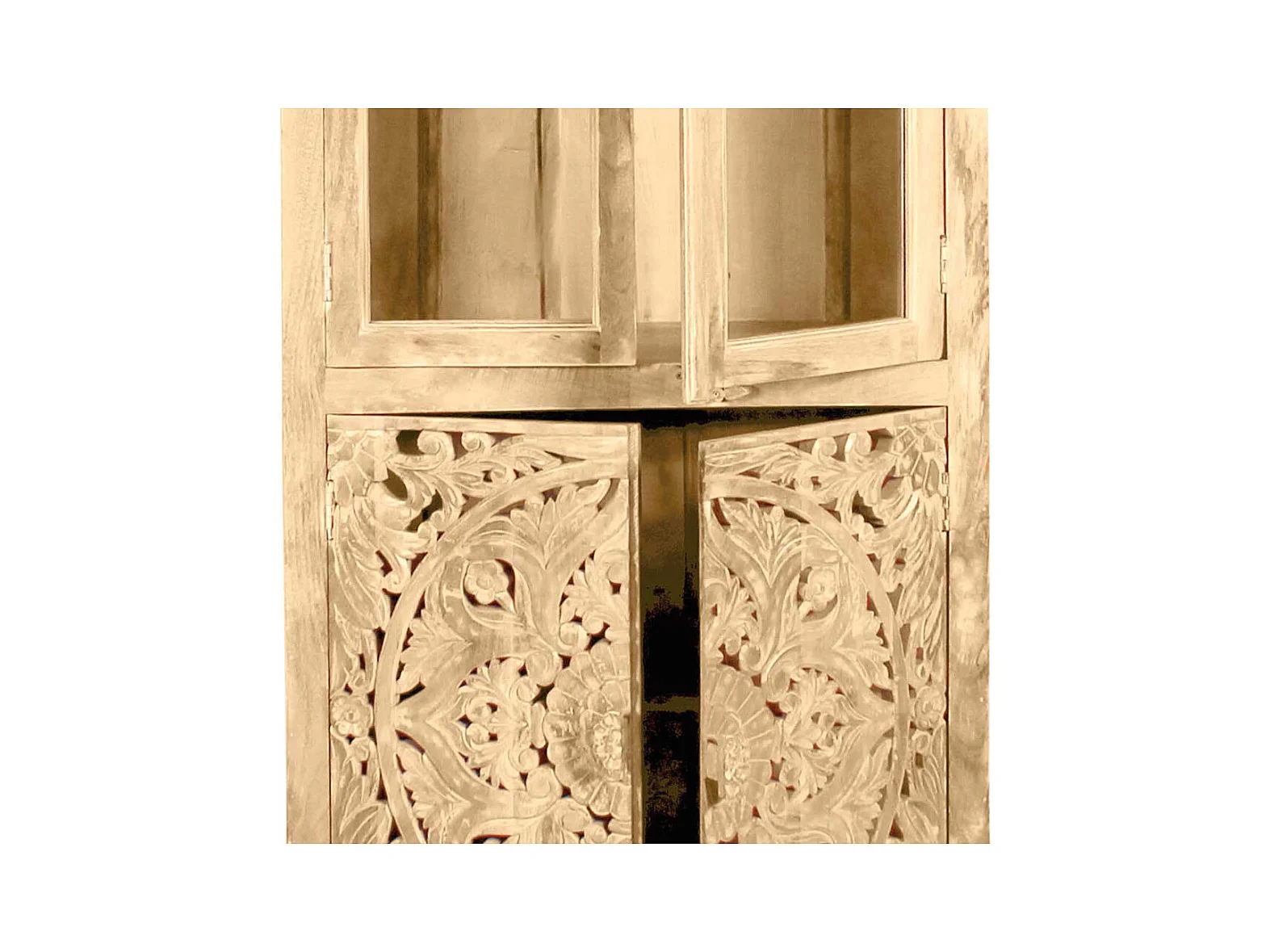 Standvitrine aus Mangoholz Sandfarben massiv Vintage Design