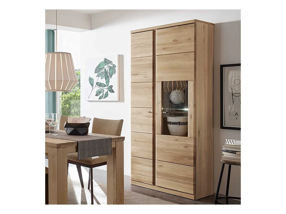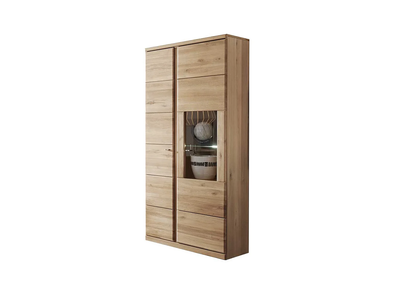 Standvitrine aus Wildeiche Bianco geölt LED Beleuchtung