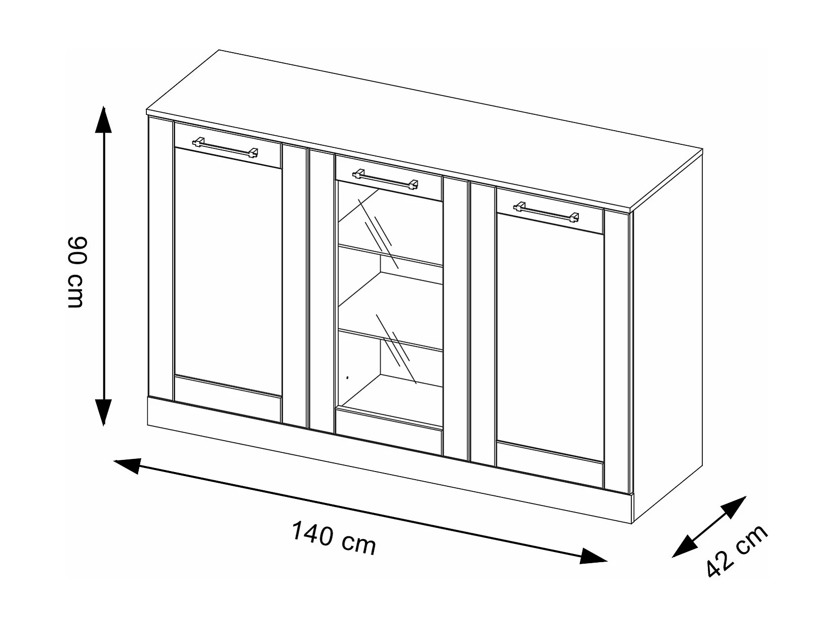 STANDVITRINE Cozy Eiche Rustikal 140 / 42 / 90cm