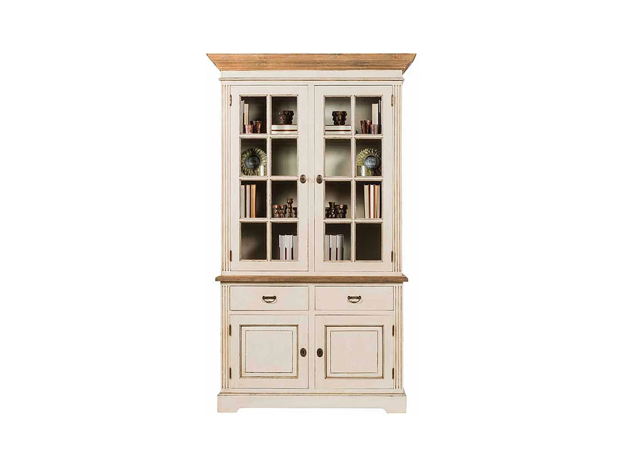 Standvitrine in Creme Weiß Teakholz furniert