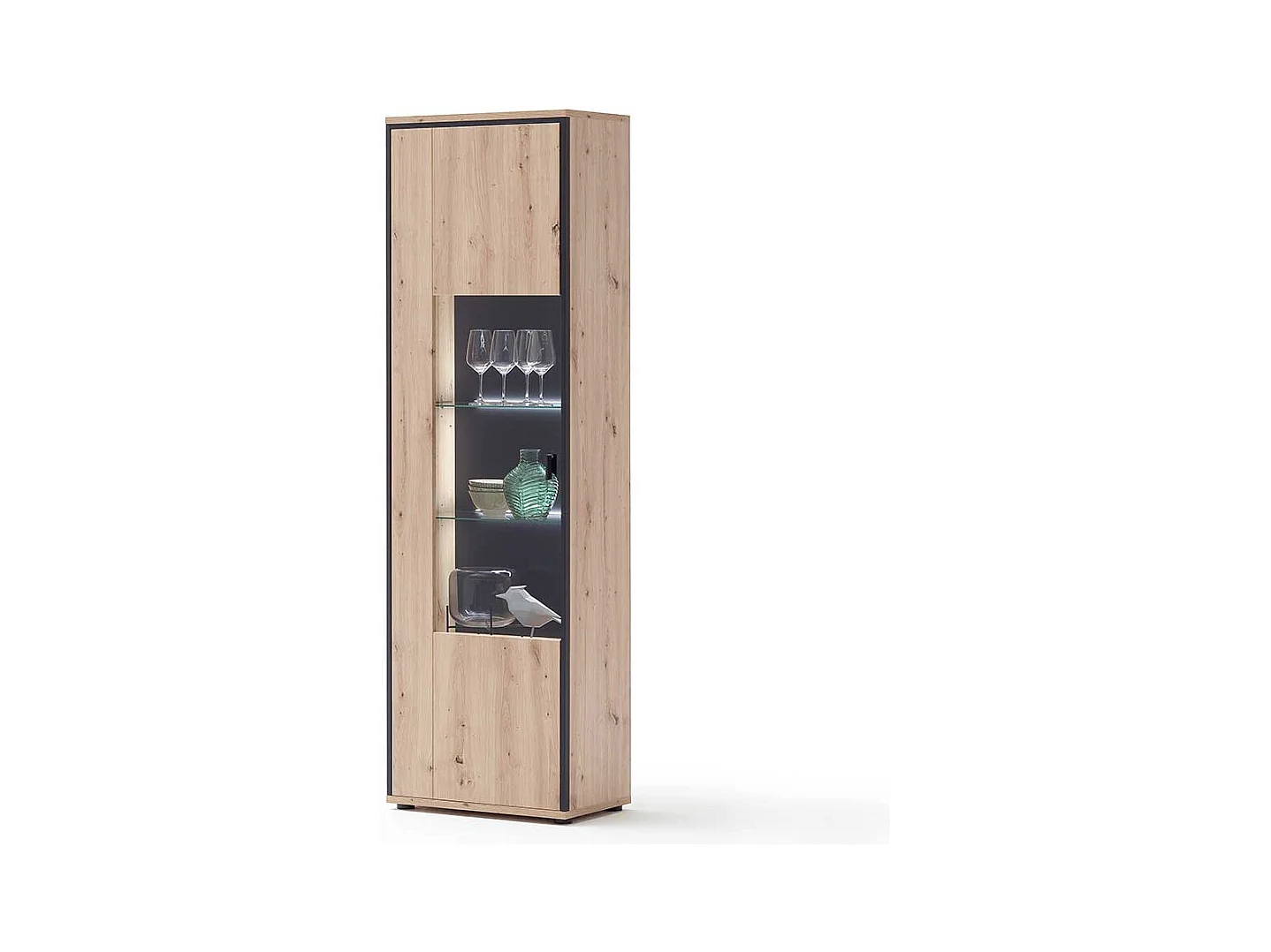 Standvitrine in Eichefarben und Anthrazit 210 cm hoch