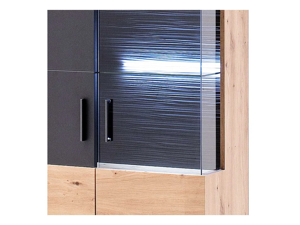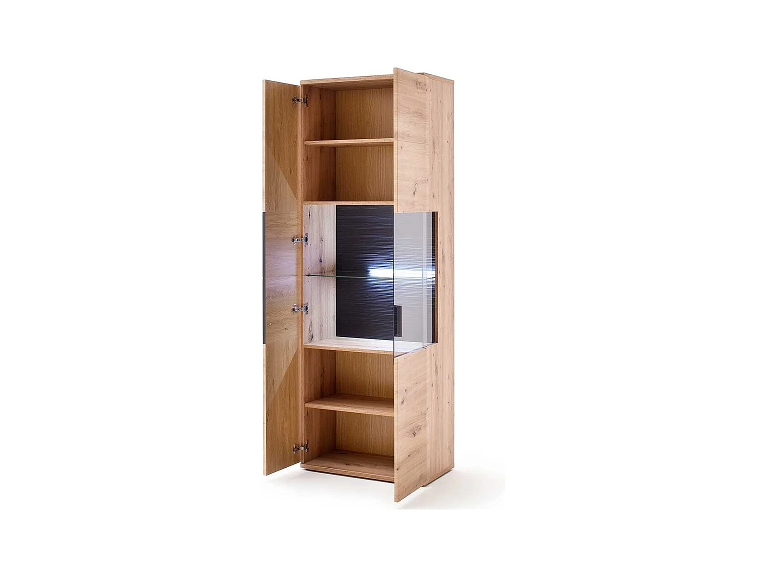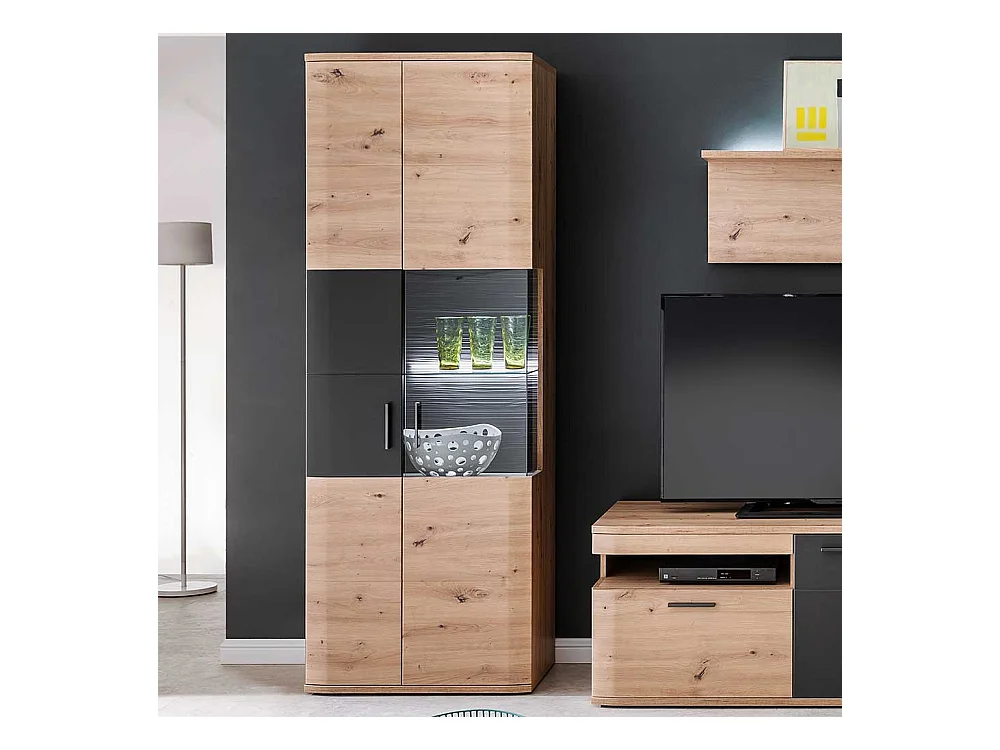 Standvitrine in Eichefarben und Anthrazit 70 cm breit