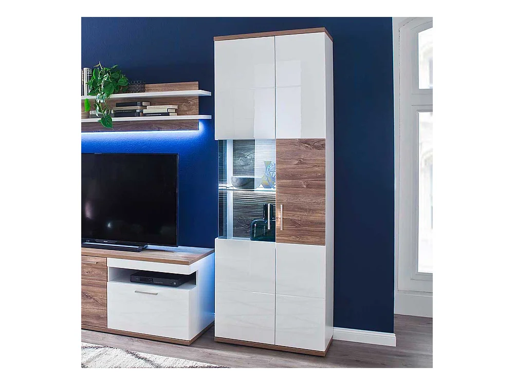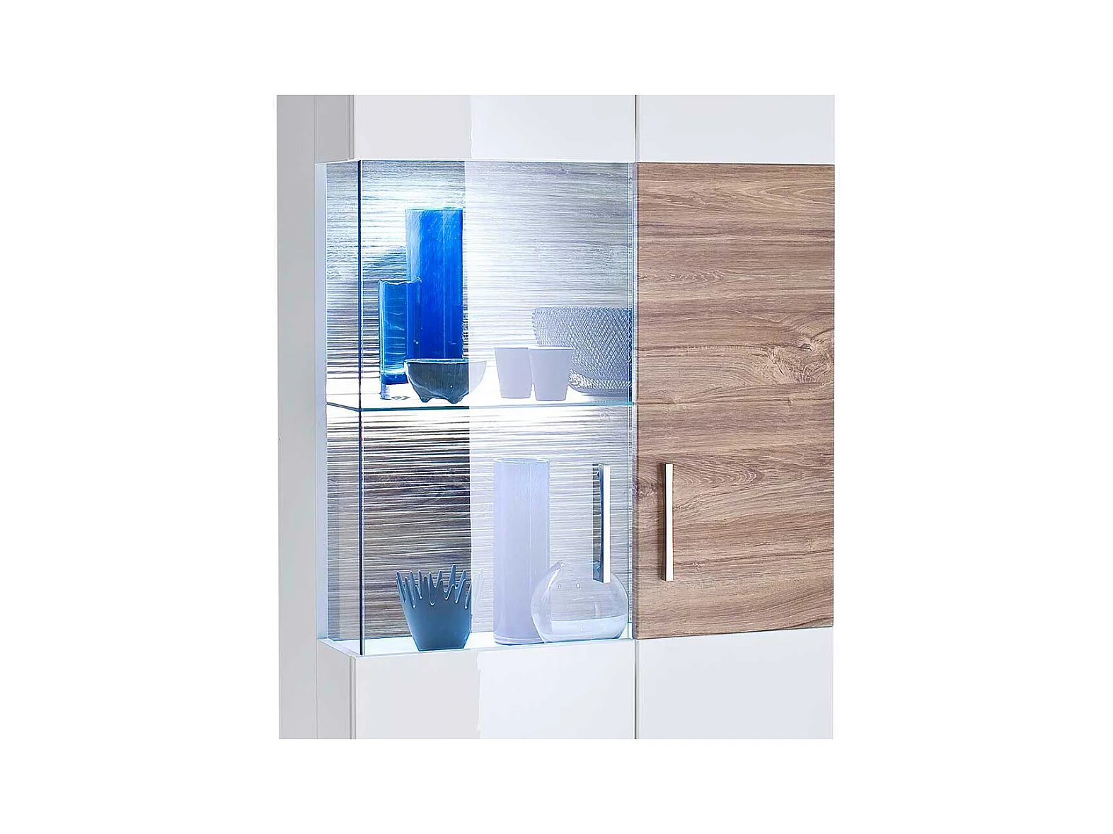 Standvitrine in Weiß hochglänzend und Eiche Dekor 70 cm breit