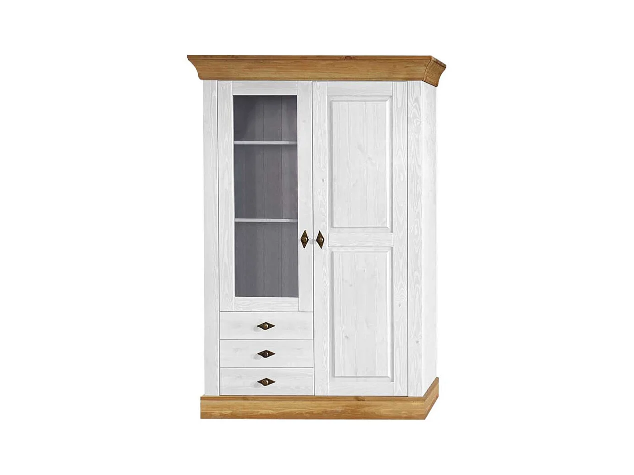 Standvitrine in Weiß Kiefer teilmassiv Landhaus
