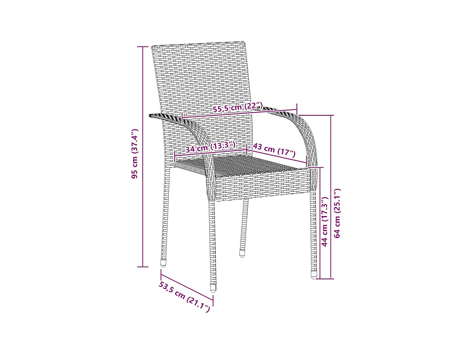 Stapelbare Gartenstühle 2 Stk. Poly Rattan Braun