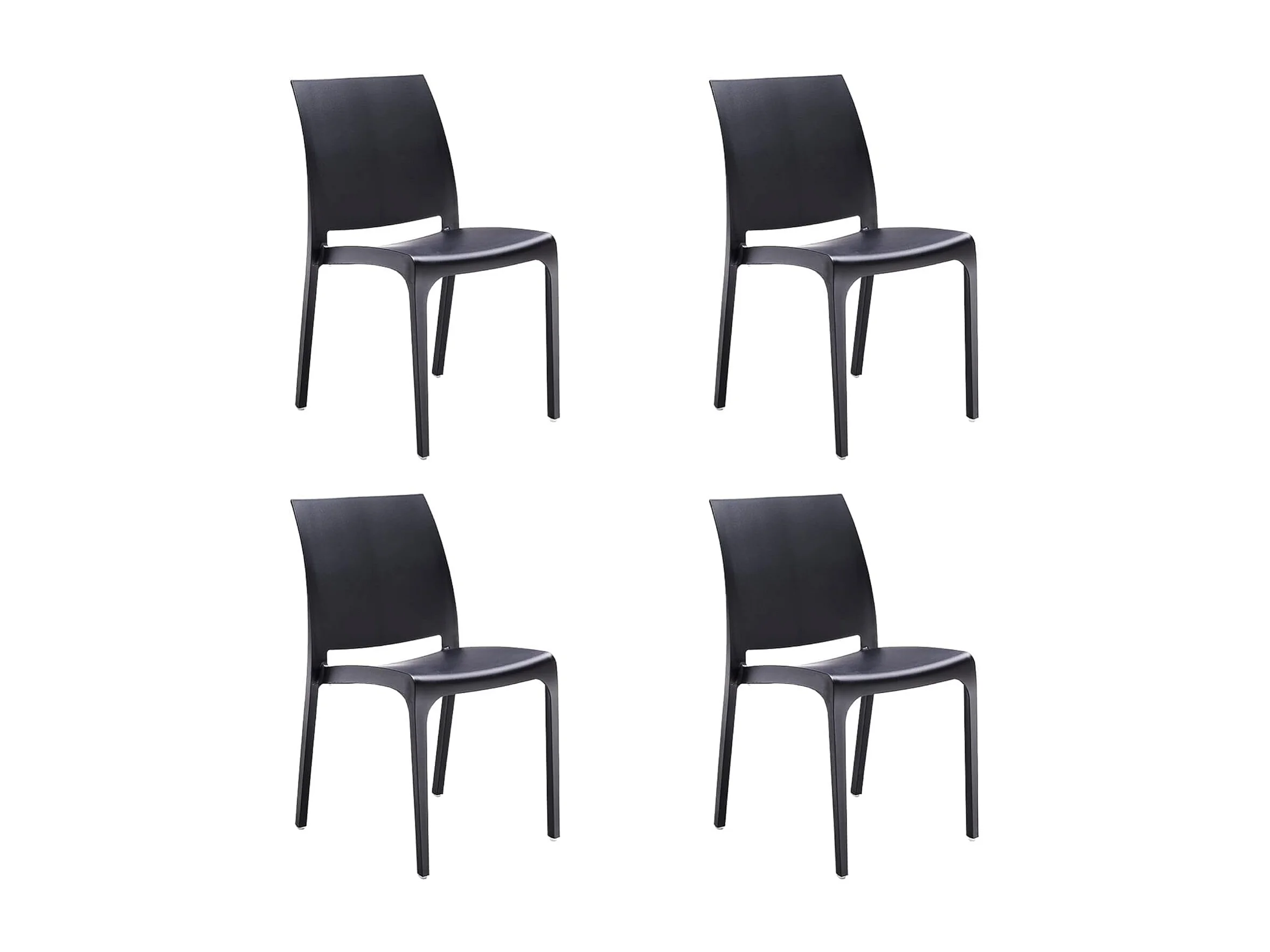Stapelbarer Stuhl aus Kunstharz, hergestellt in Italien, Design für drinnen und draußen, SOFIA Schwarz, 4-tlg