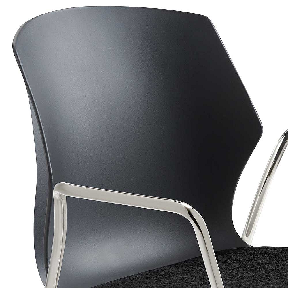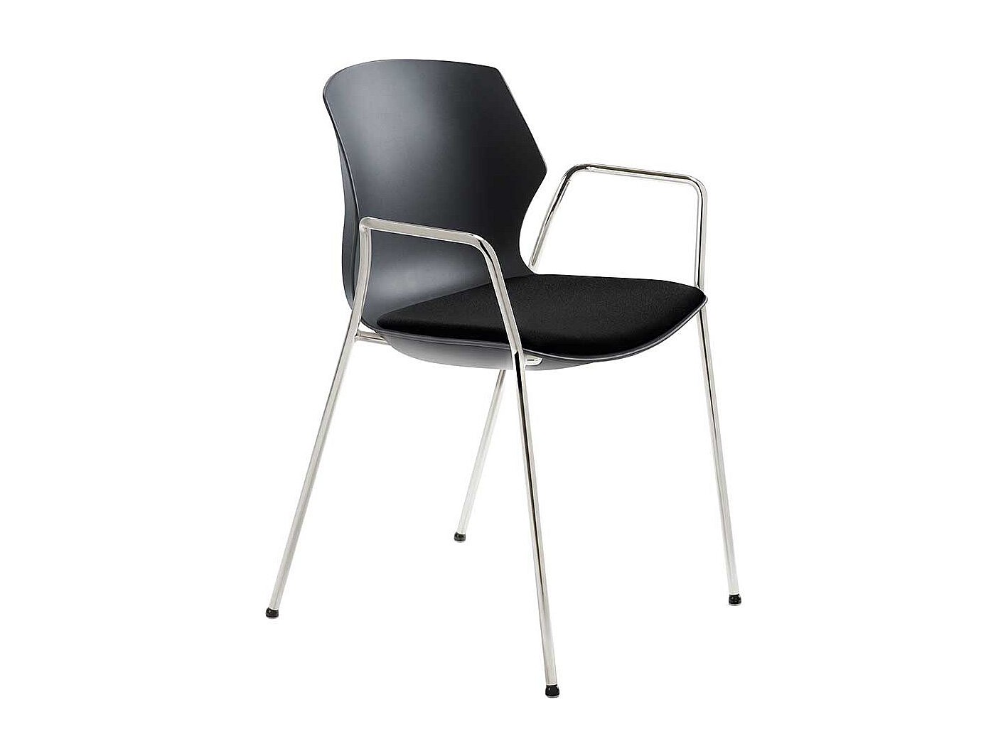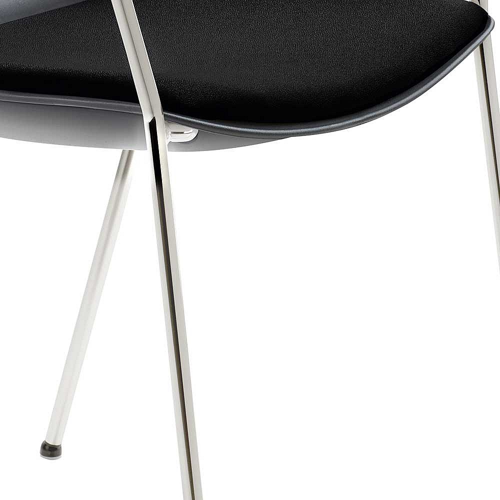 Stapelstuhl in Anthrazit und Schwarz verchromten Armlehnen