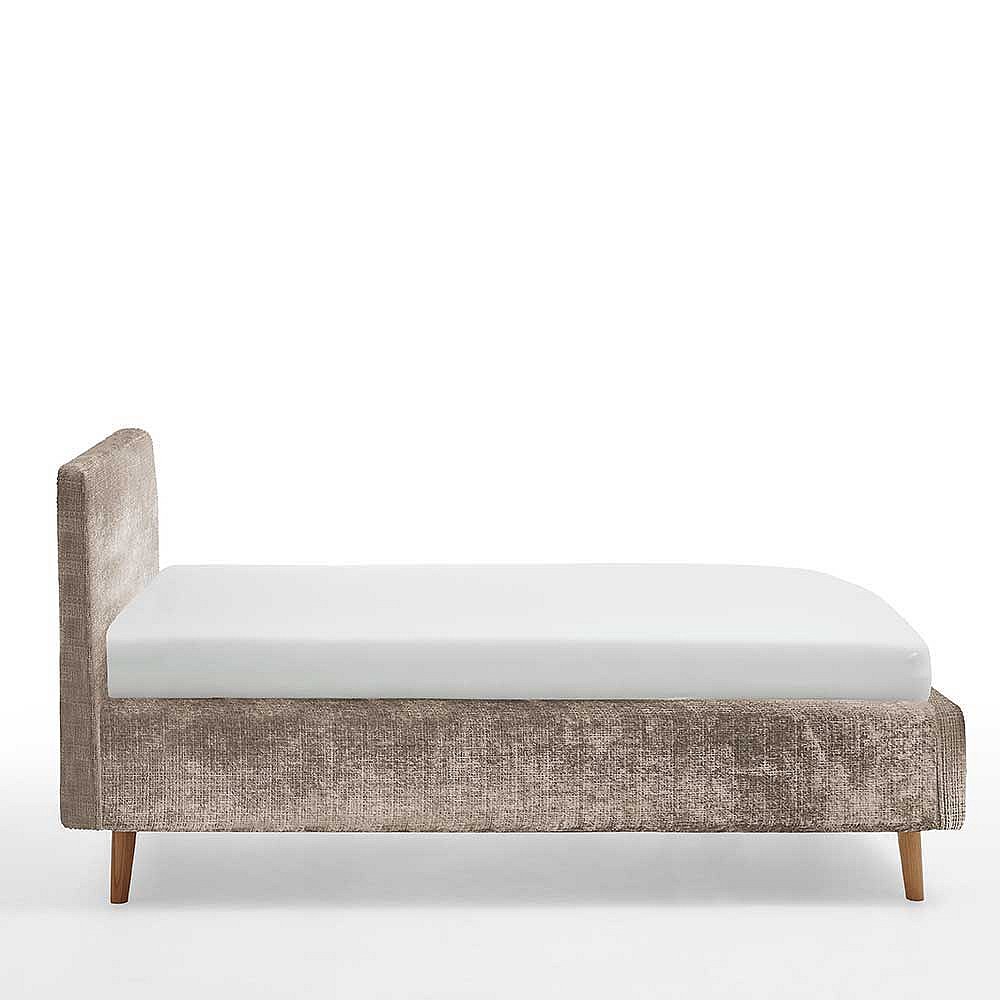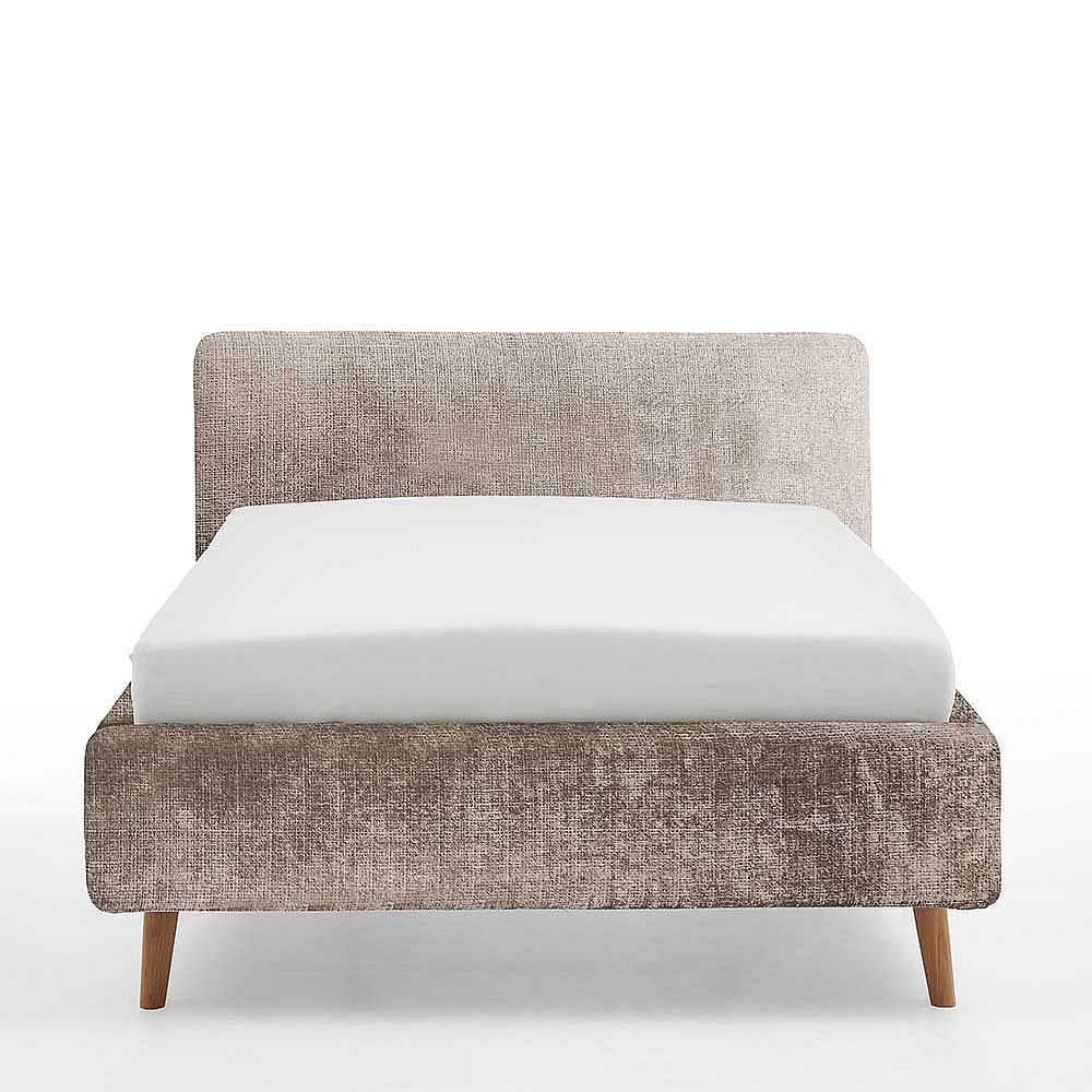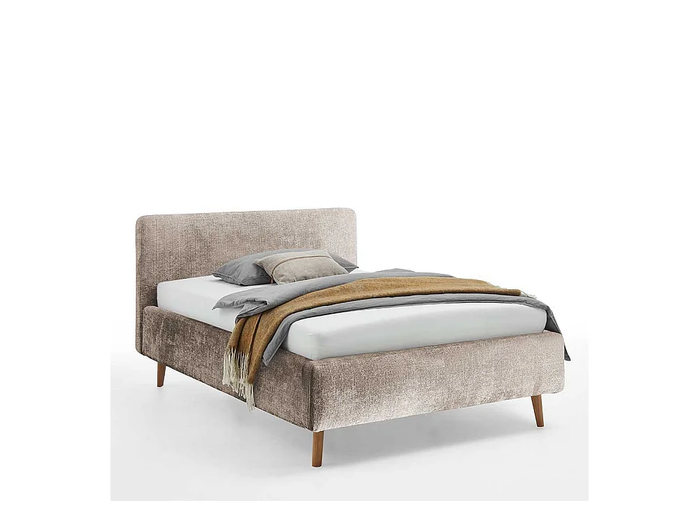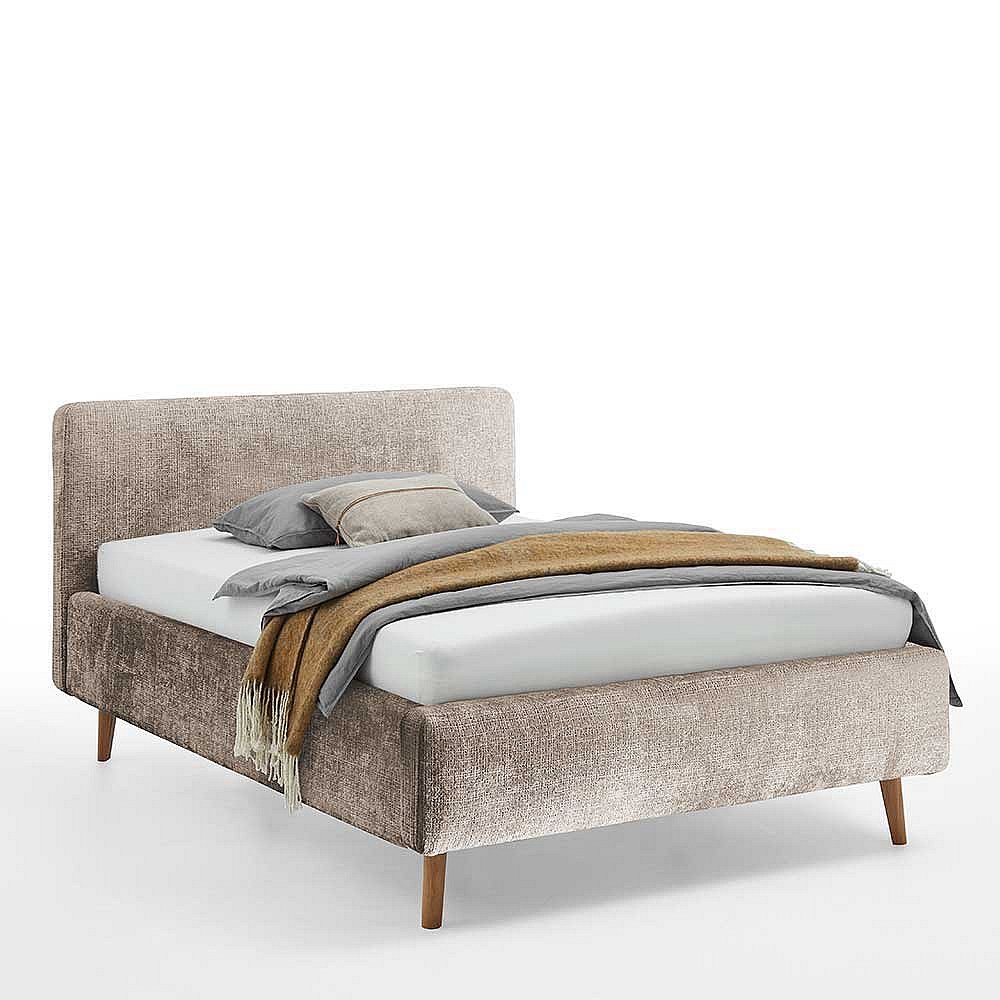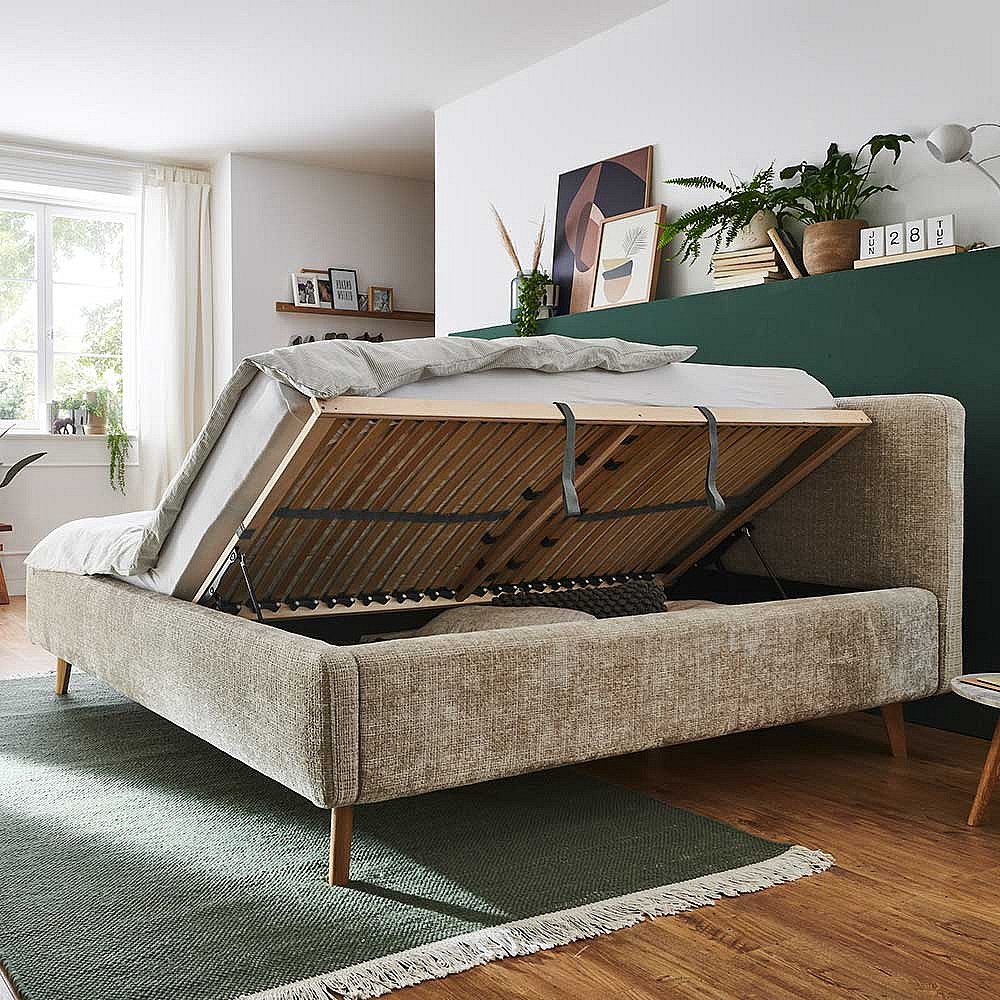 Stauraum Bett gepolstert in Beige und Eiche inklusive Lattenrost
