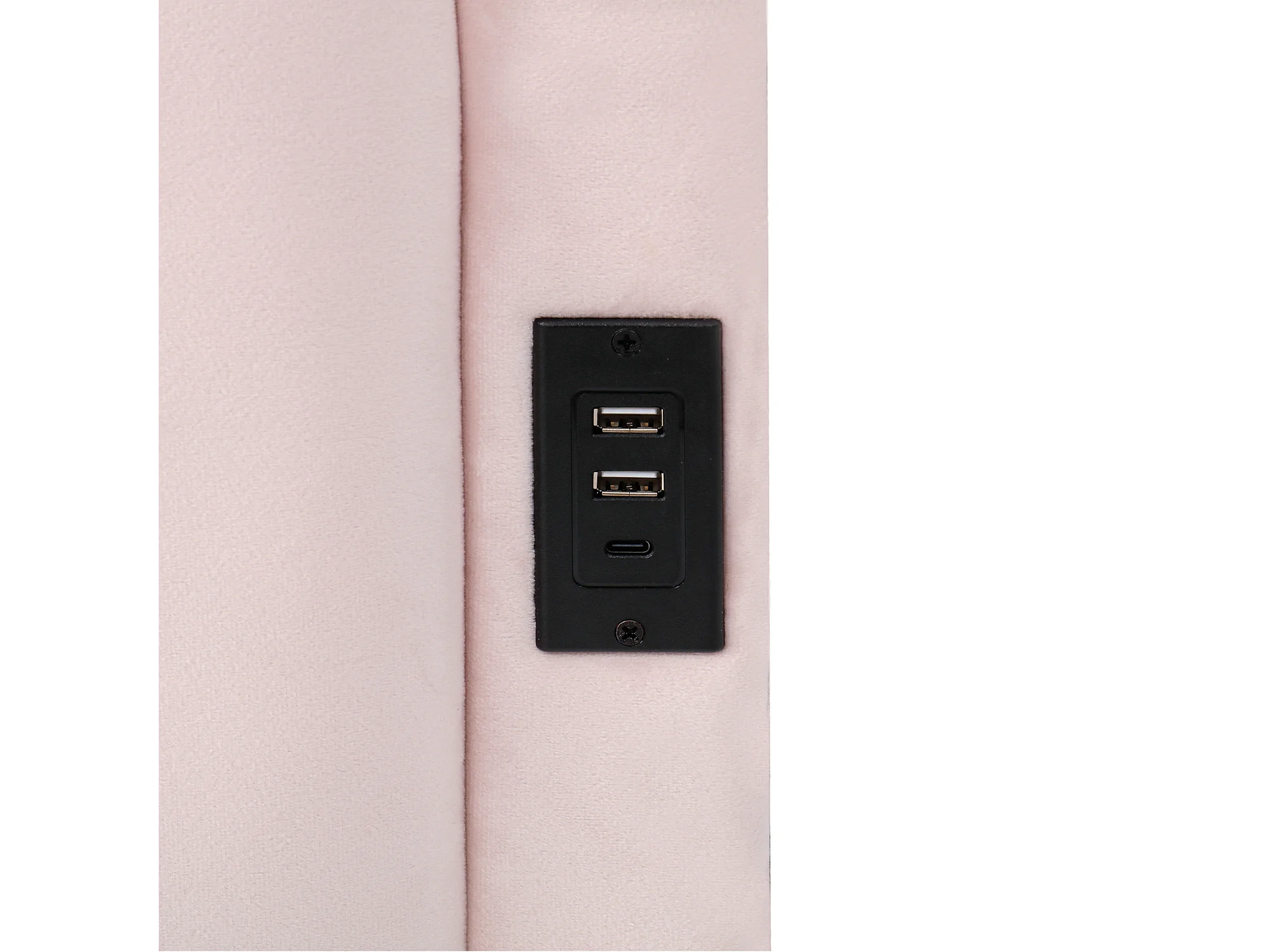 Stauraumbett 90 x 200 cm – Einzelbett mit 2 Aufbewahrungstaschen und USB-Ladegerät – rosa samt – matratze nicht enthalten