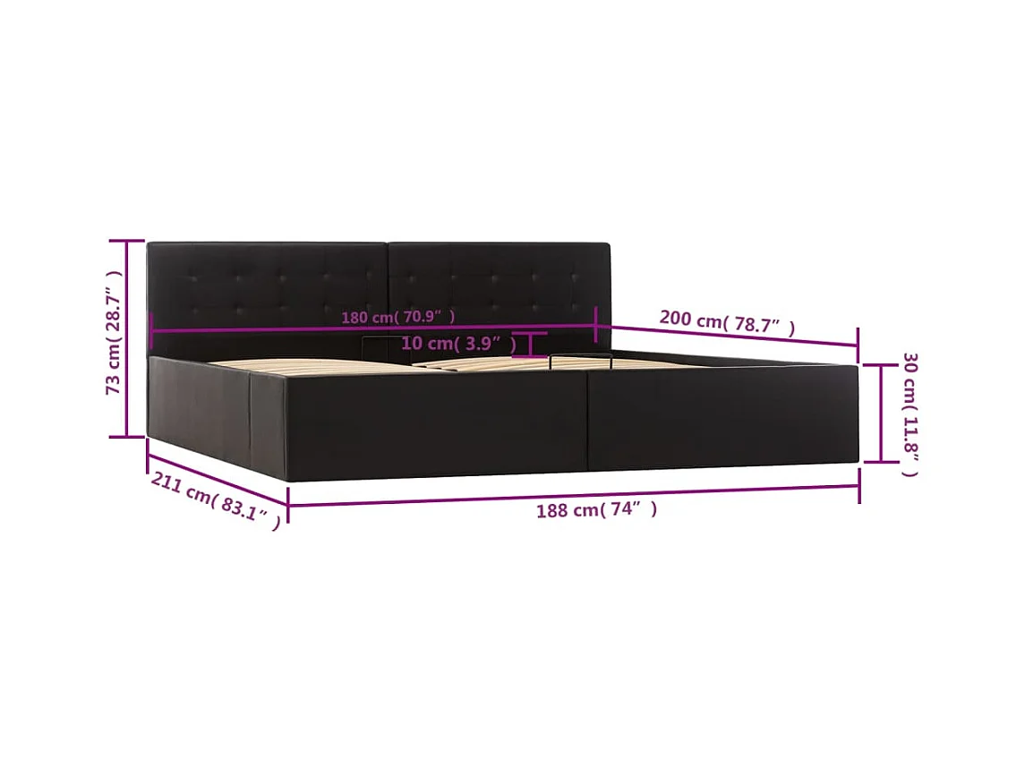 Stauraumbett Hydraulisch Schwarz Kunstleder 180×200 cm