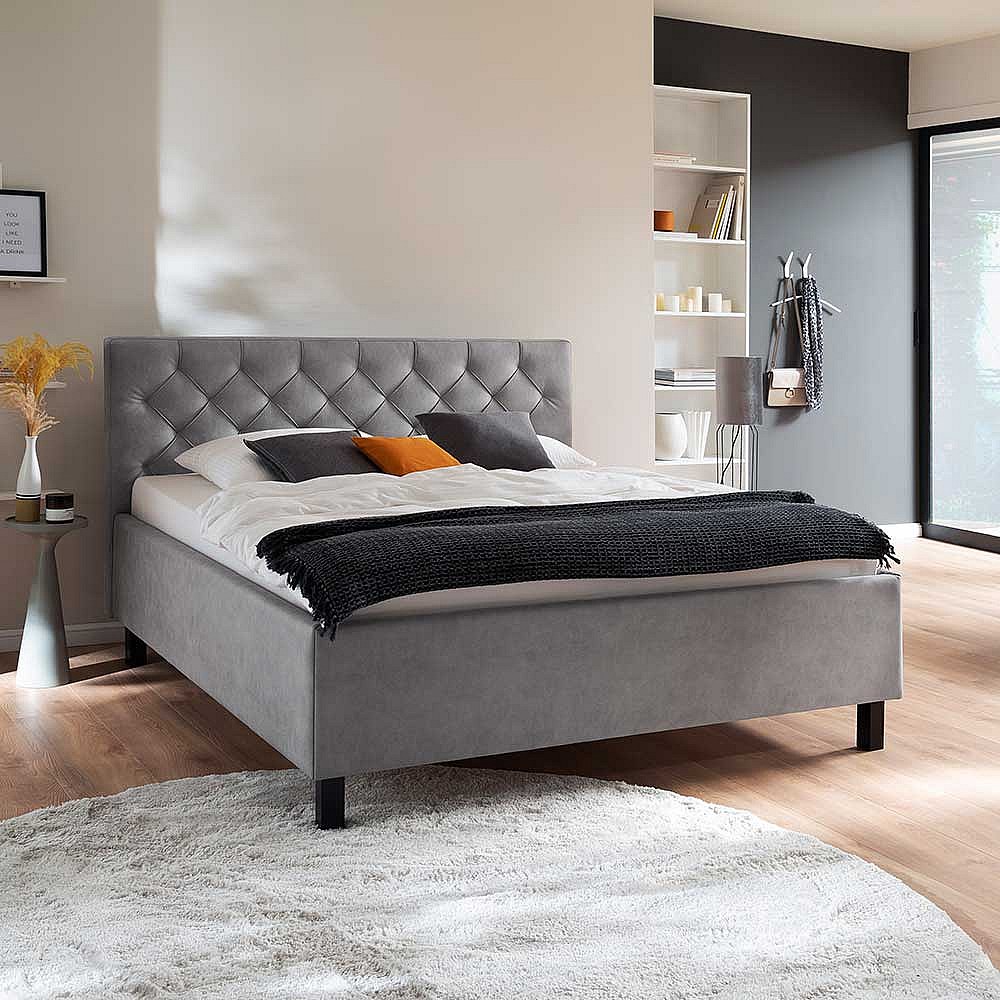 Stauraumbett in 160 und 180 cm Hellgrau
