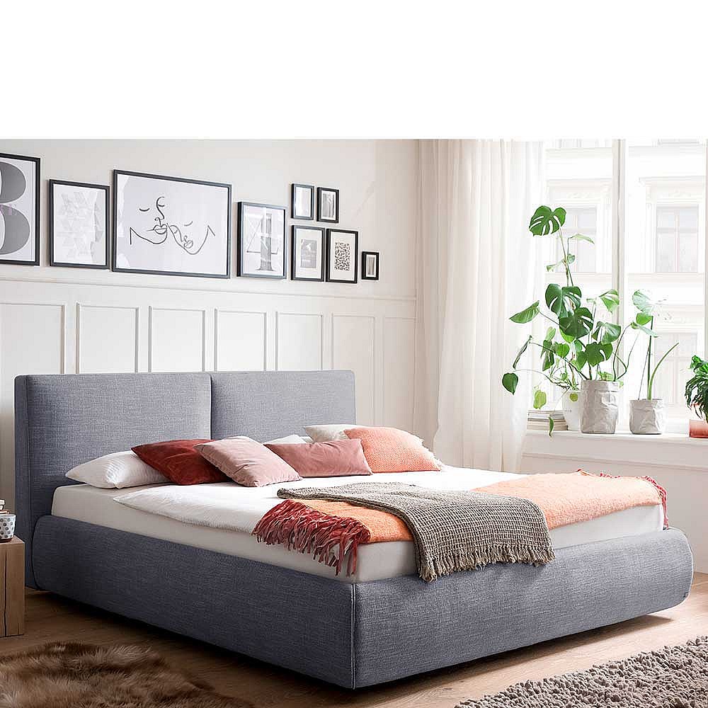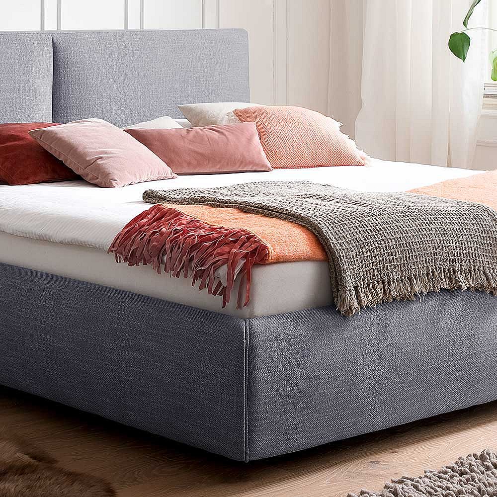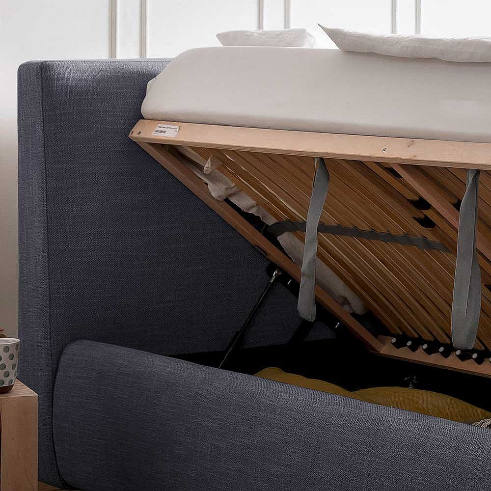 Stauraumbett in Blau Webstoff 180x200 cm