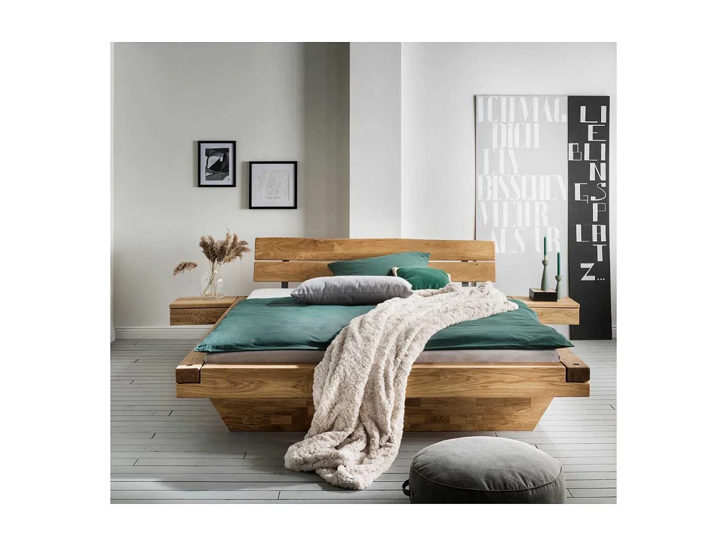 Stauraumbett Massivholz aus Wildeiche Schwebesockel (dreiteilig)