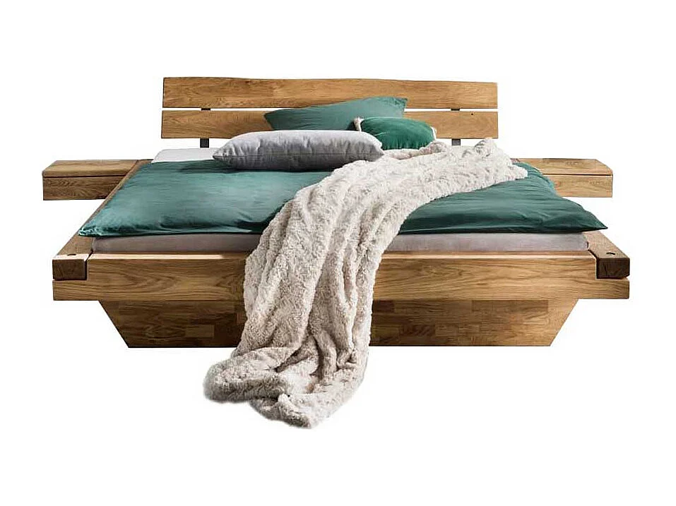 Stauraumbett Massivholz aus Wildeiche Schwebesockel (dreiteilig)