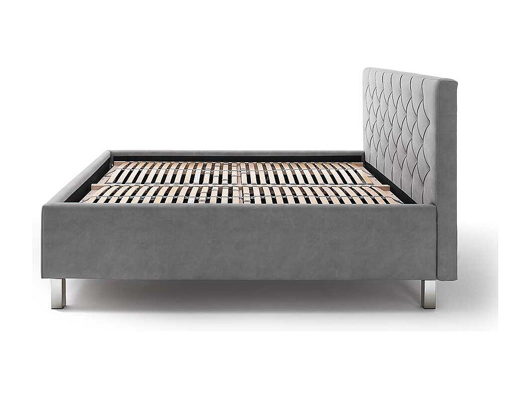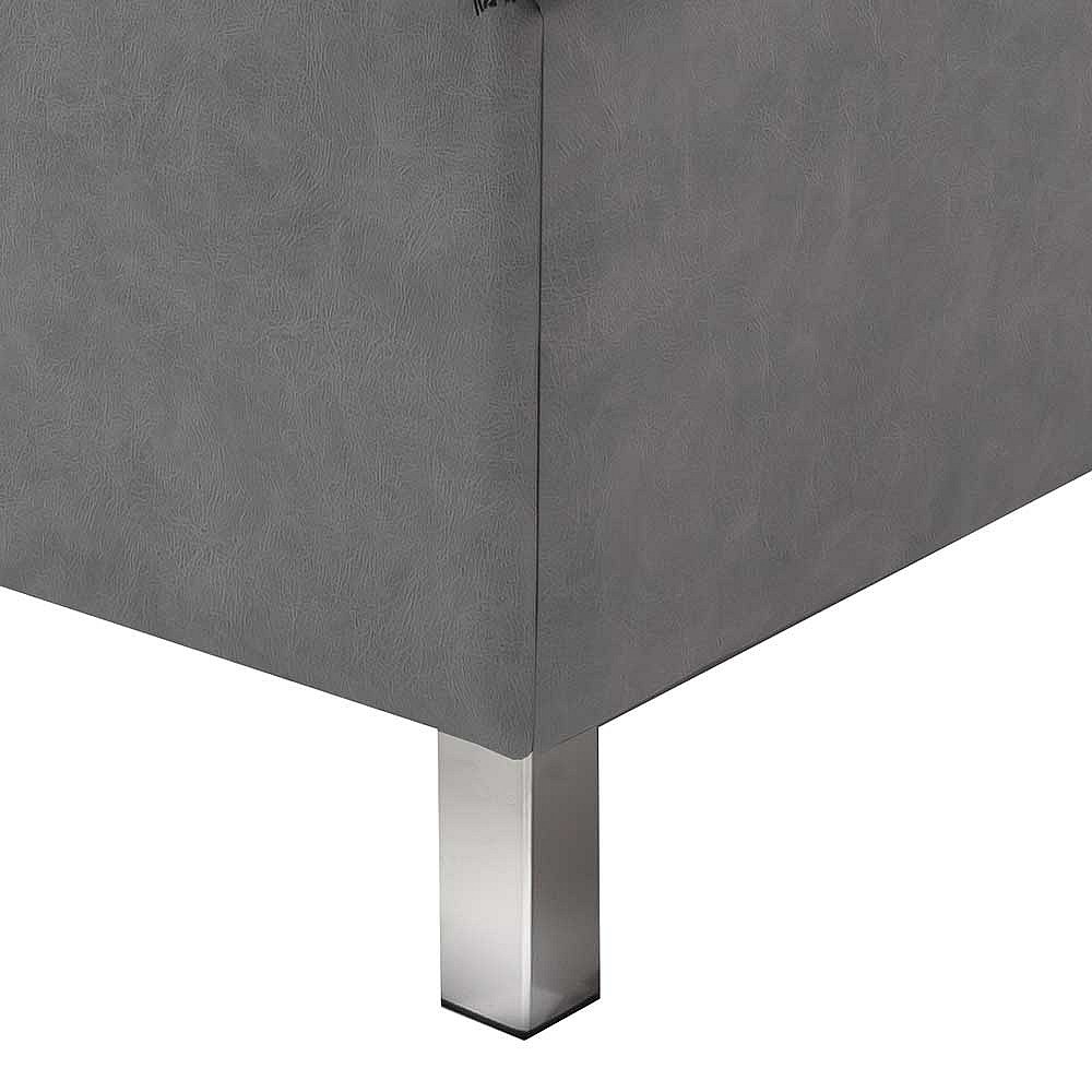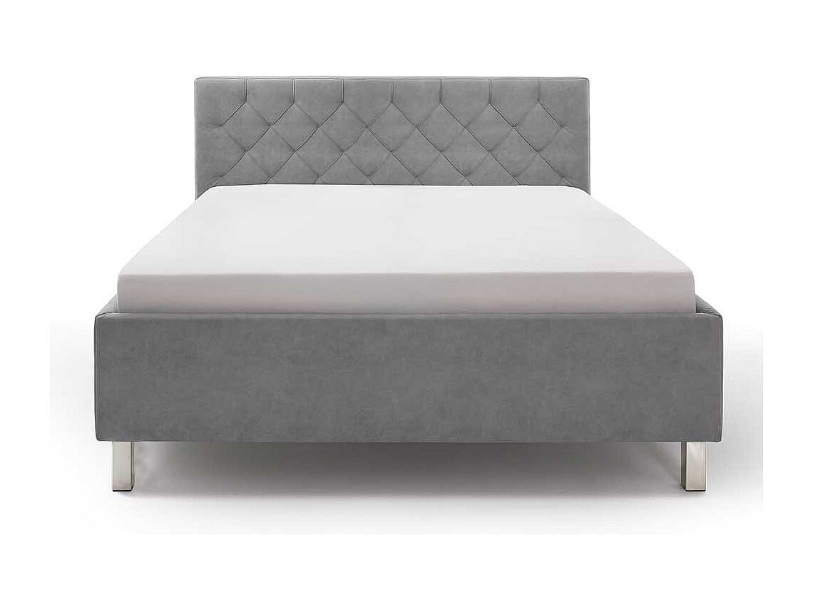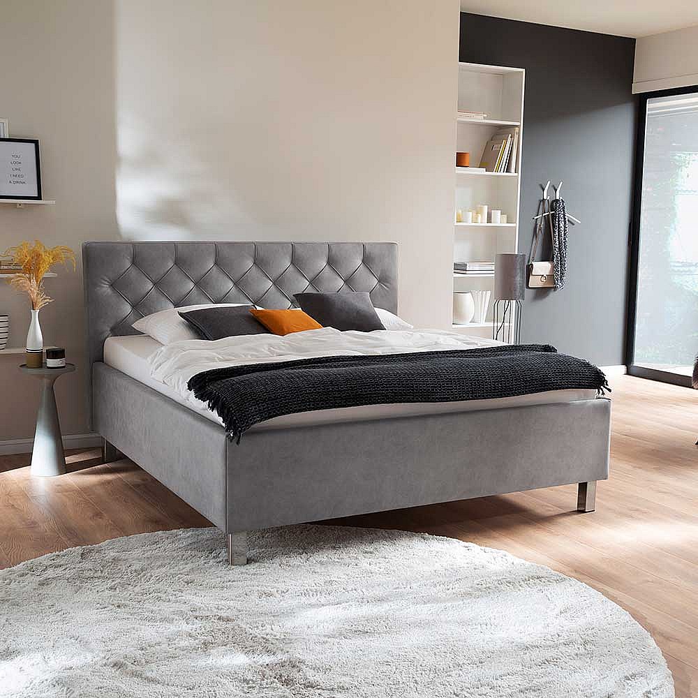 Stauraumbett mit Polsterkopfteil Hellgrau & Chromfarben
