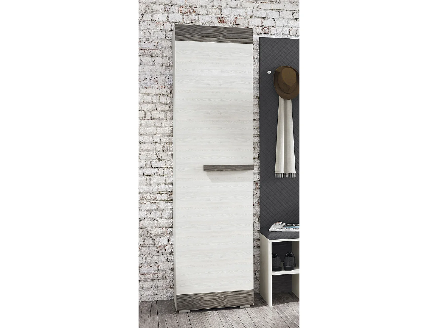 STAURAUMSCHRANK Blanco Pinie weiß / grau 55 / 42 / 202cm