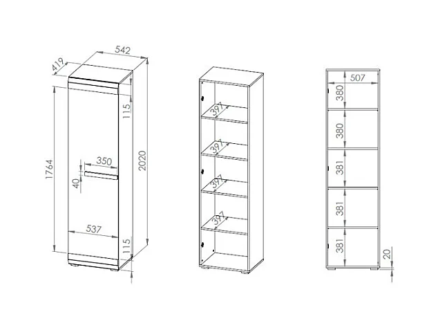 STAURAUMSCHRANK Blanco Pinie weiß / grau 55 / 42 / 202cm