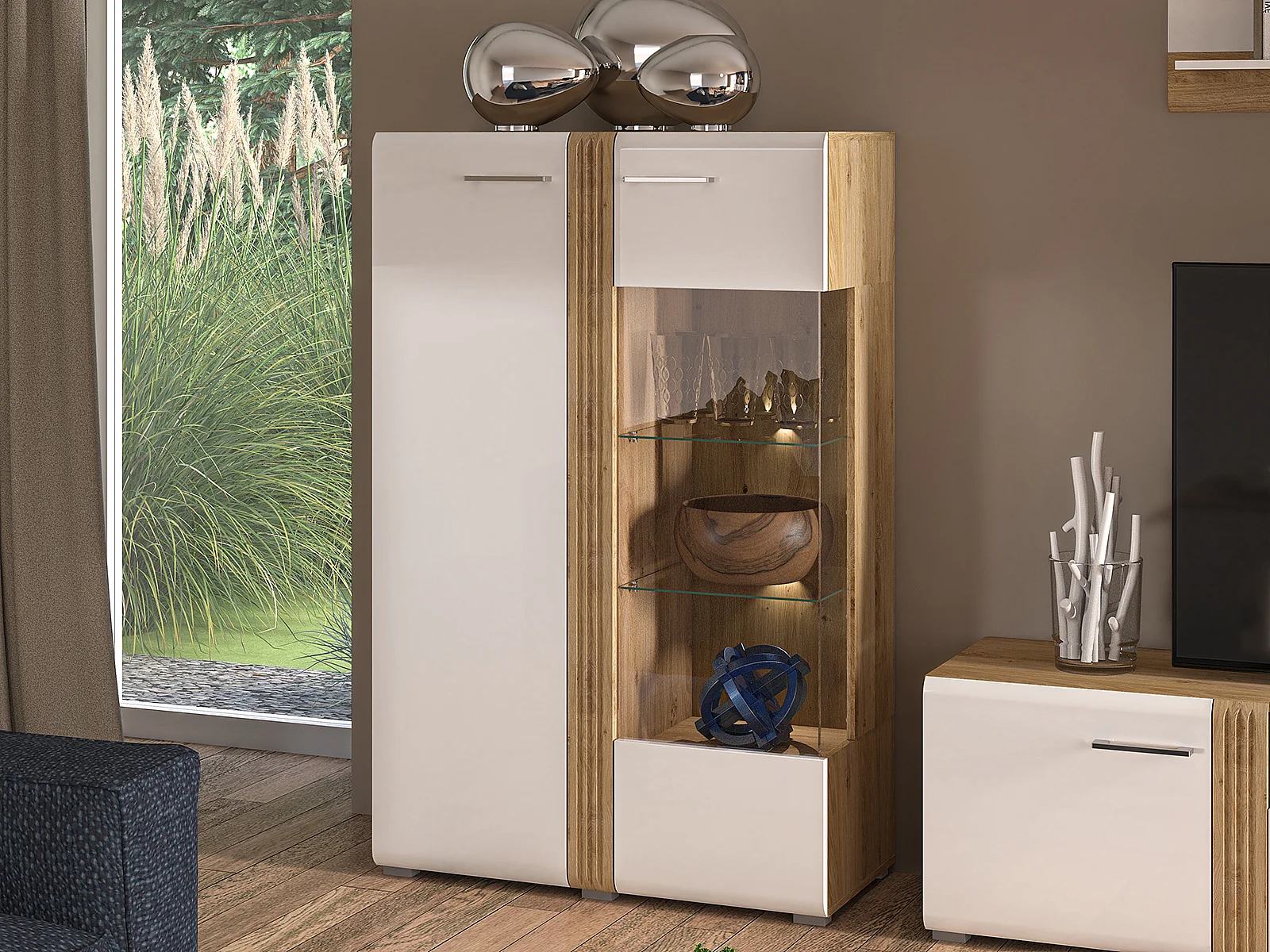 STAURAUMVITRINE Adagio weiß Hochglanz / Eiche castello 92 / 42 / 143cm