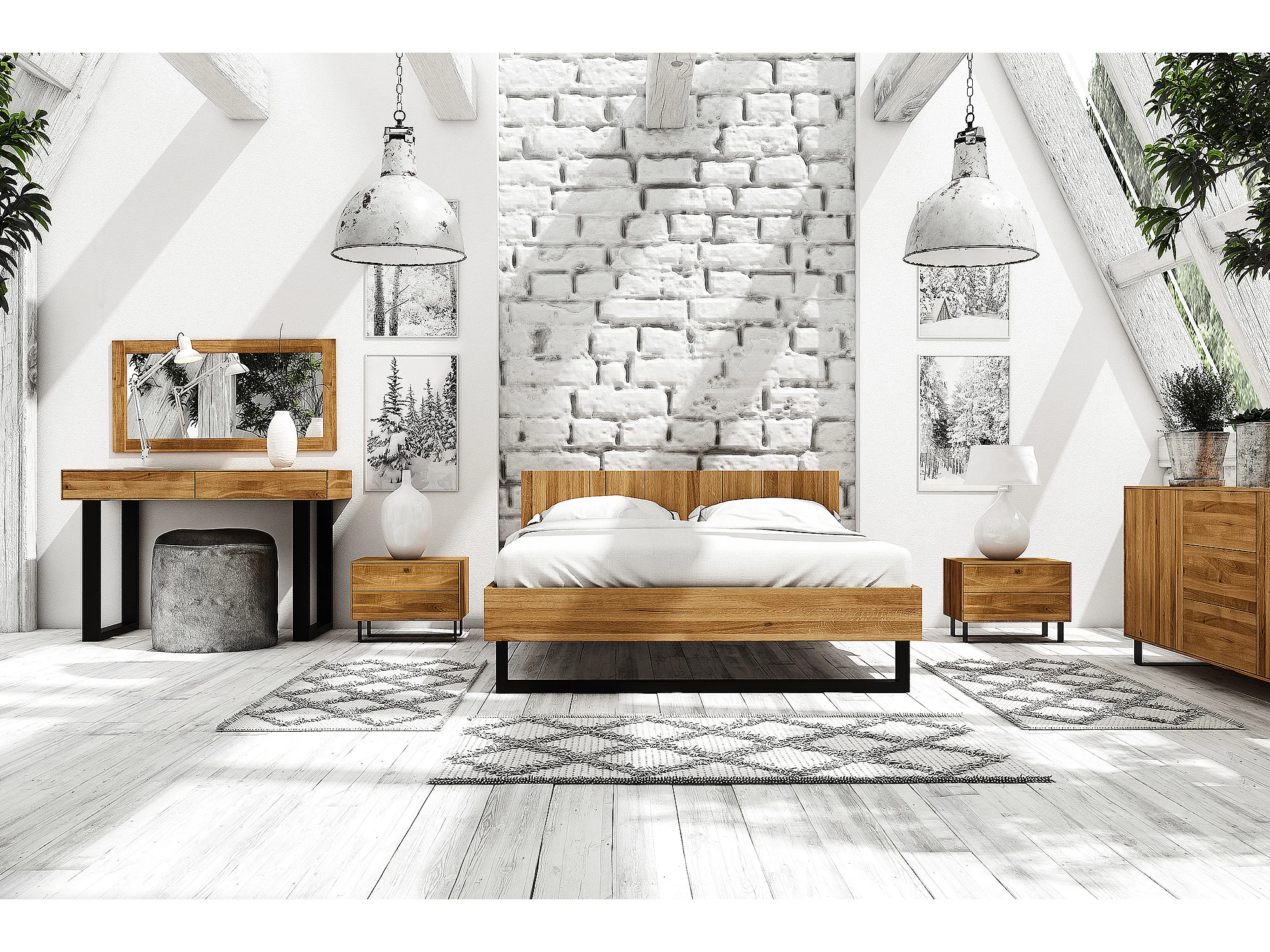 STEEL - Bett 140x200 mit Holzkopfteil aus Wildeiche, naturgeölt