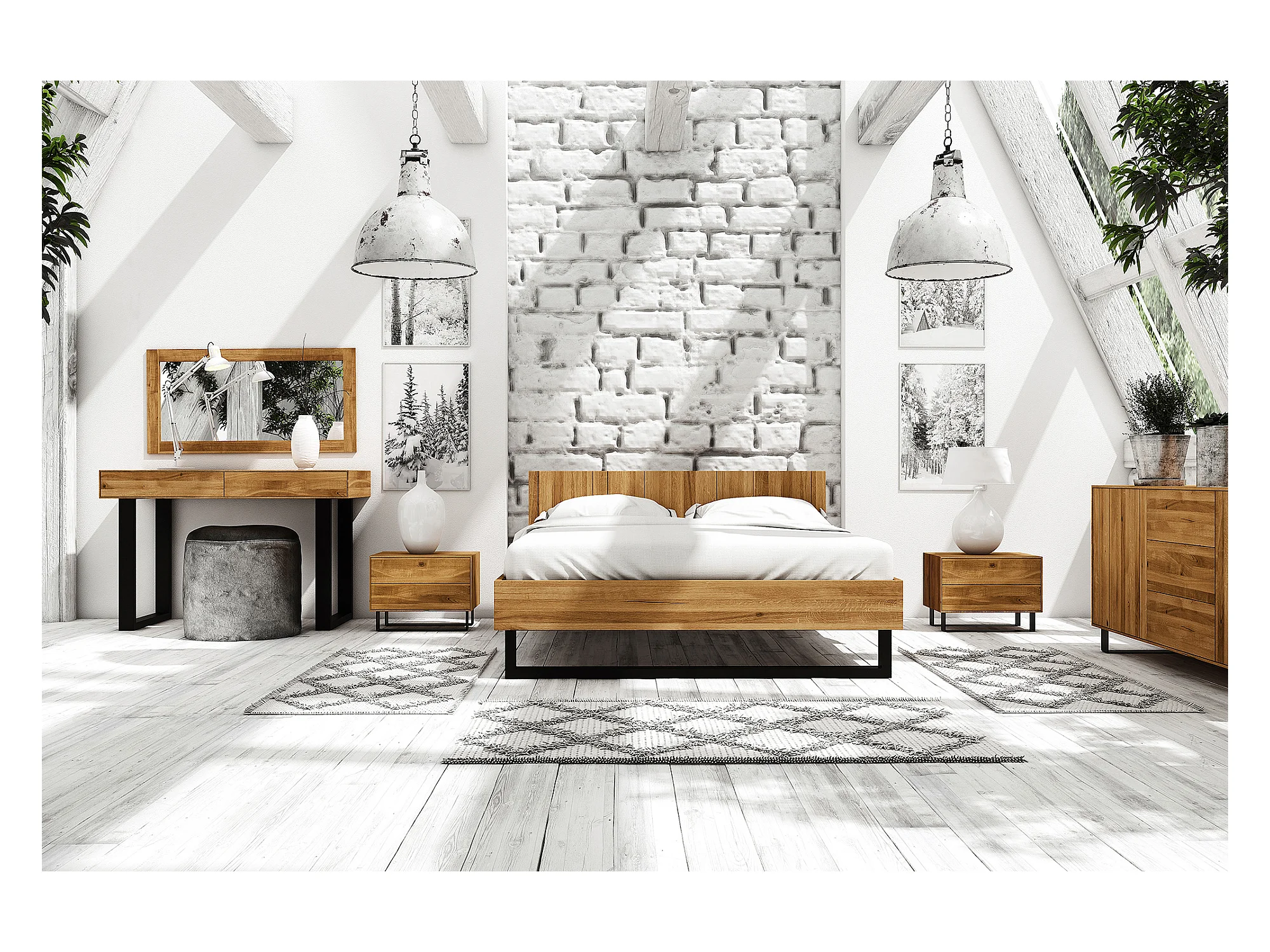 STEEL - Bett 180x210 mit Holzkopfteil aus Wildeiche, naturgeölt