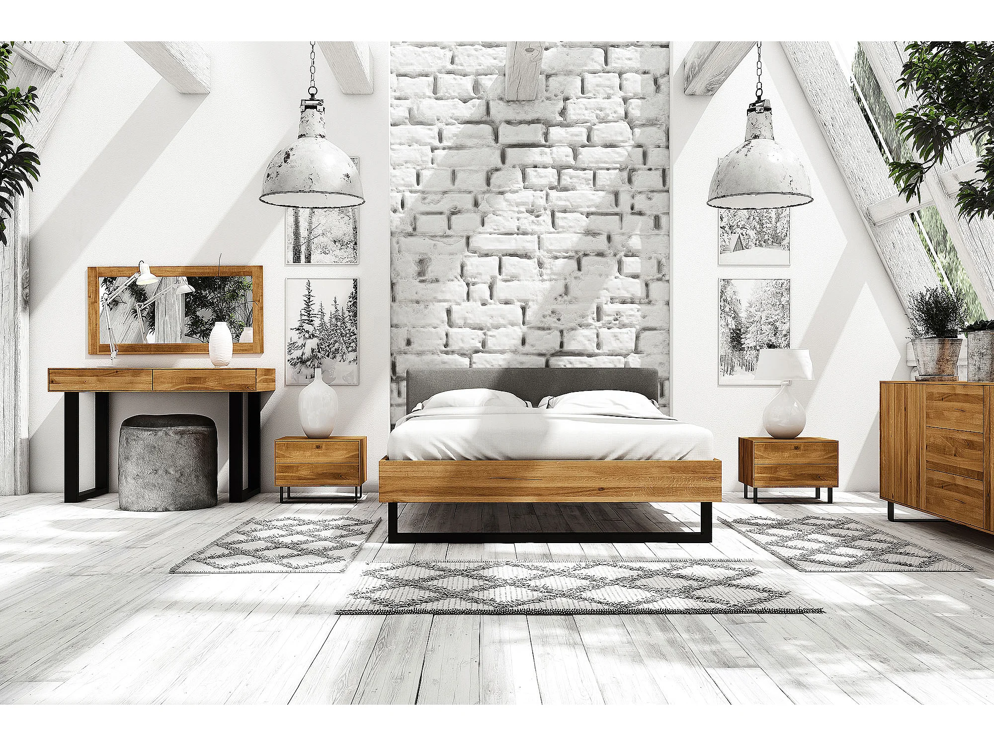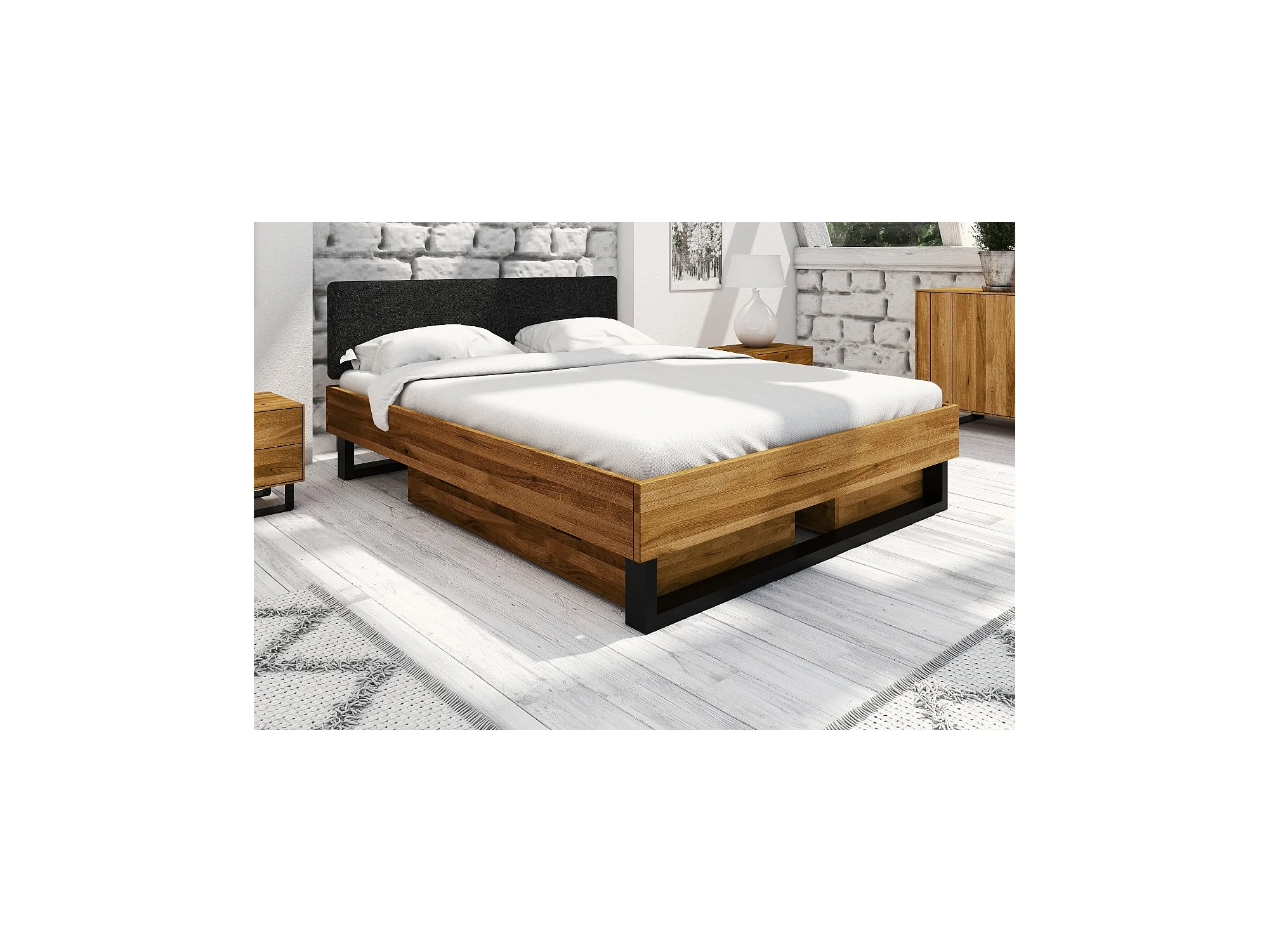STEEL - Bett mit Polsterkopfteil 140x200 aus Wildeiche, naturgeölt