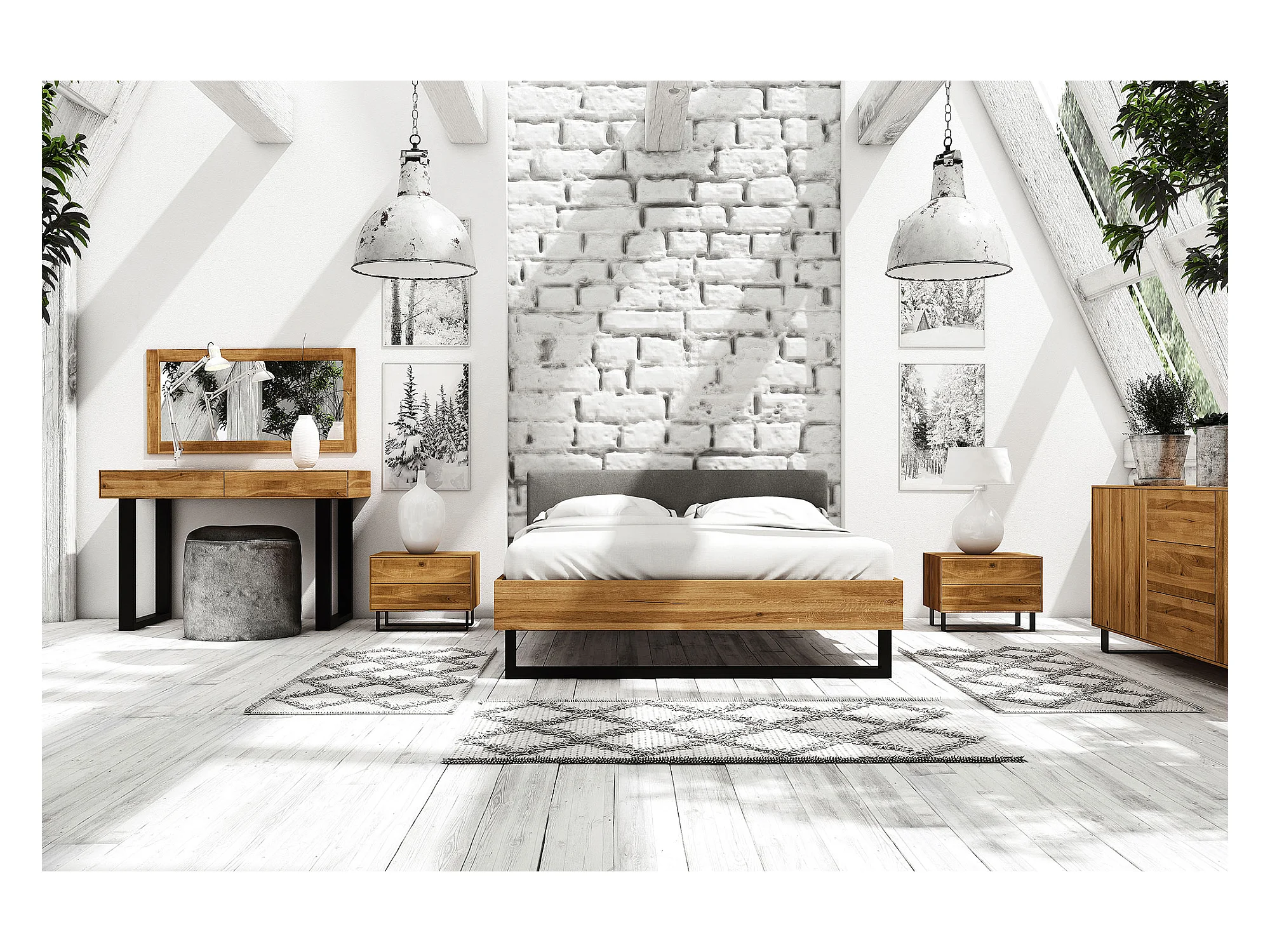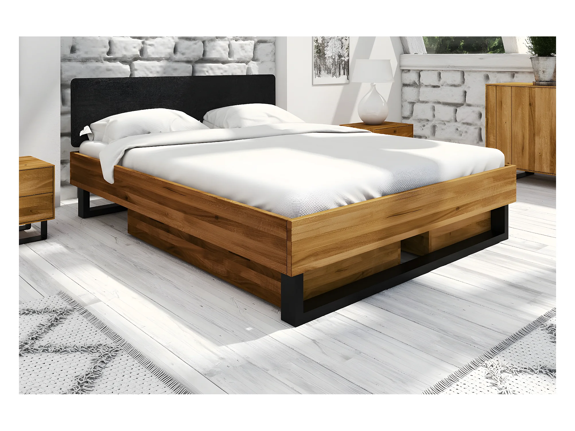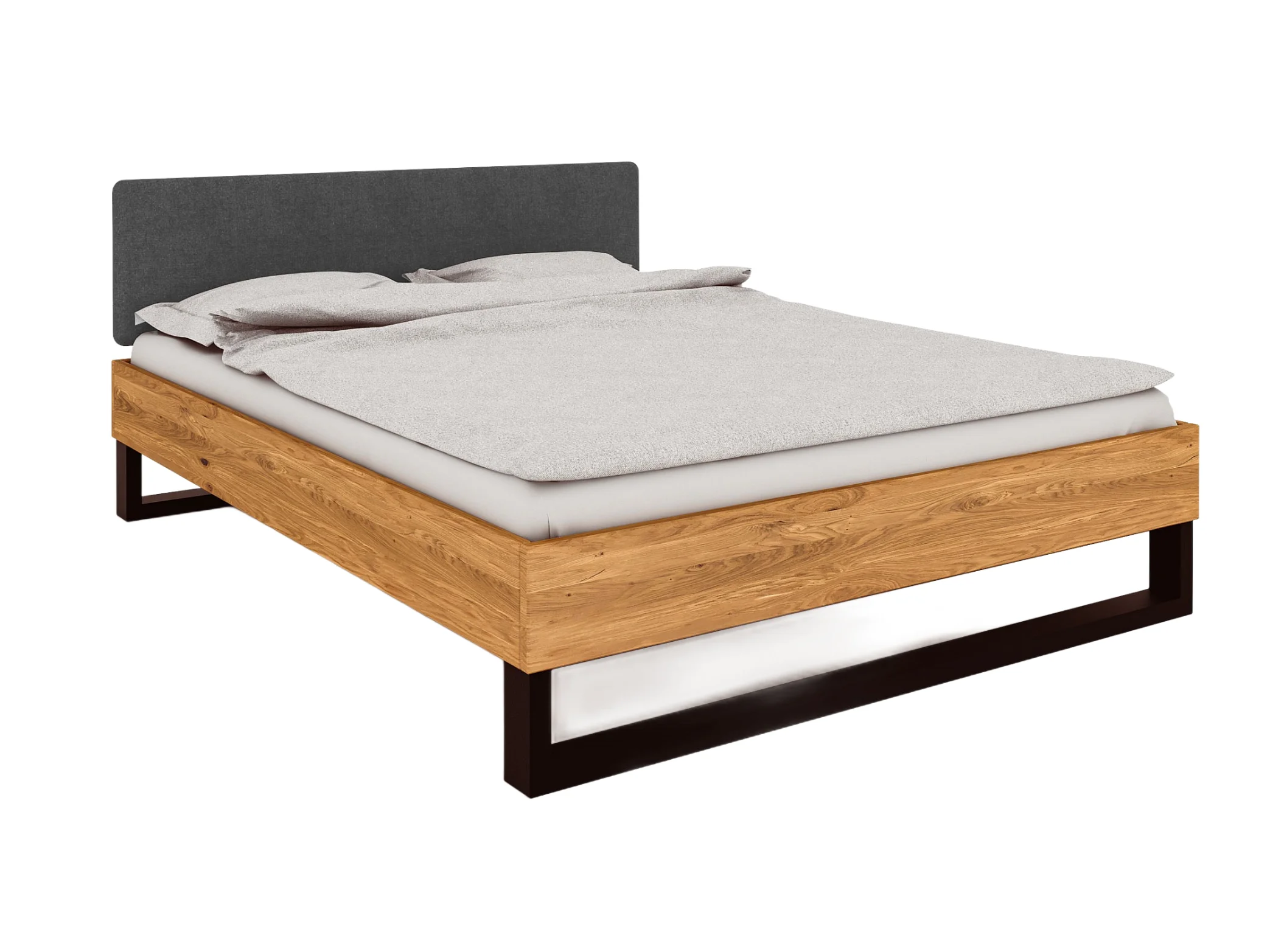 STEEL - Bett mit Polsterkopfteil 200x200 aus Wildeiche, naturgeölt