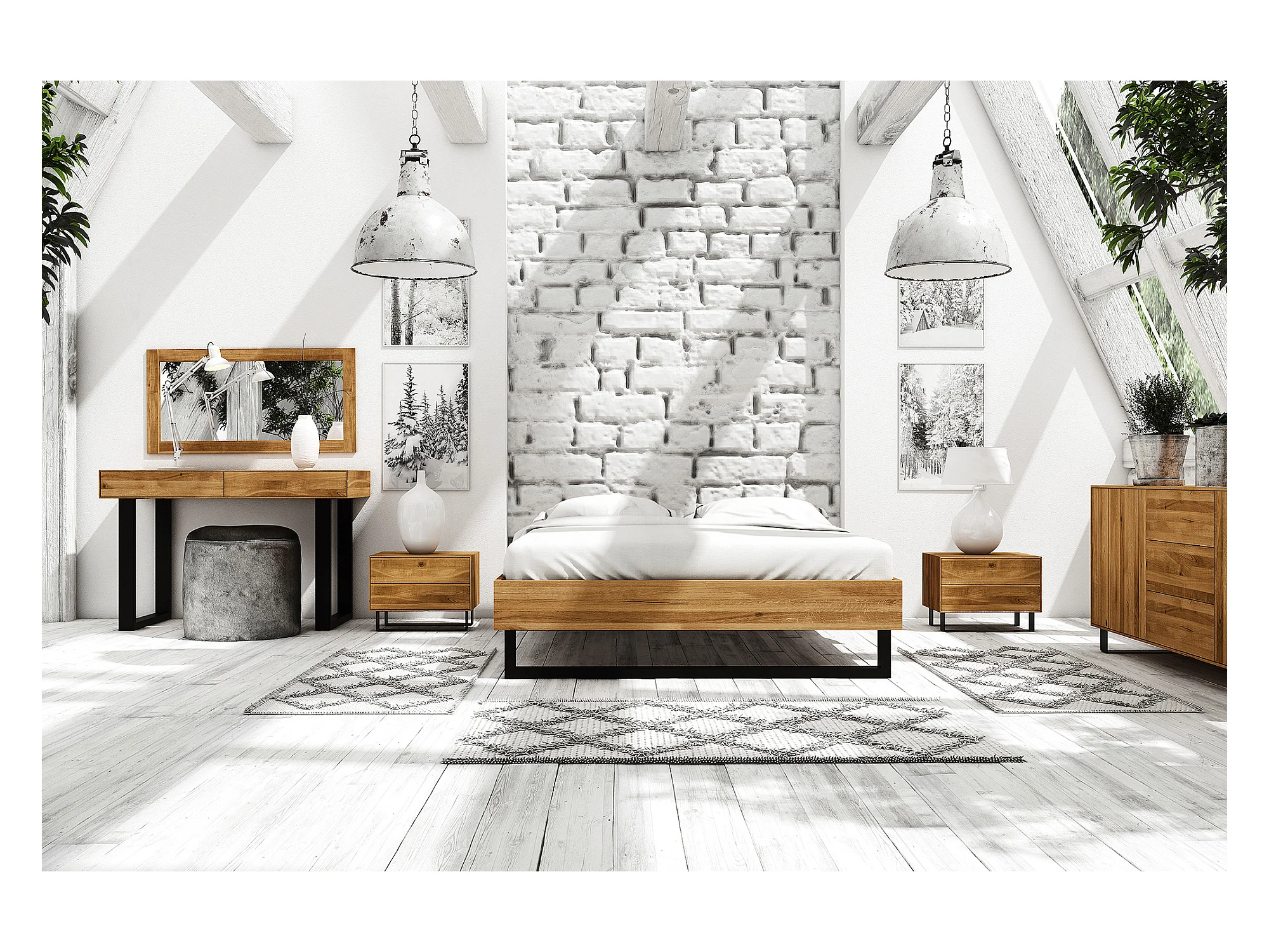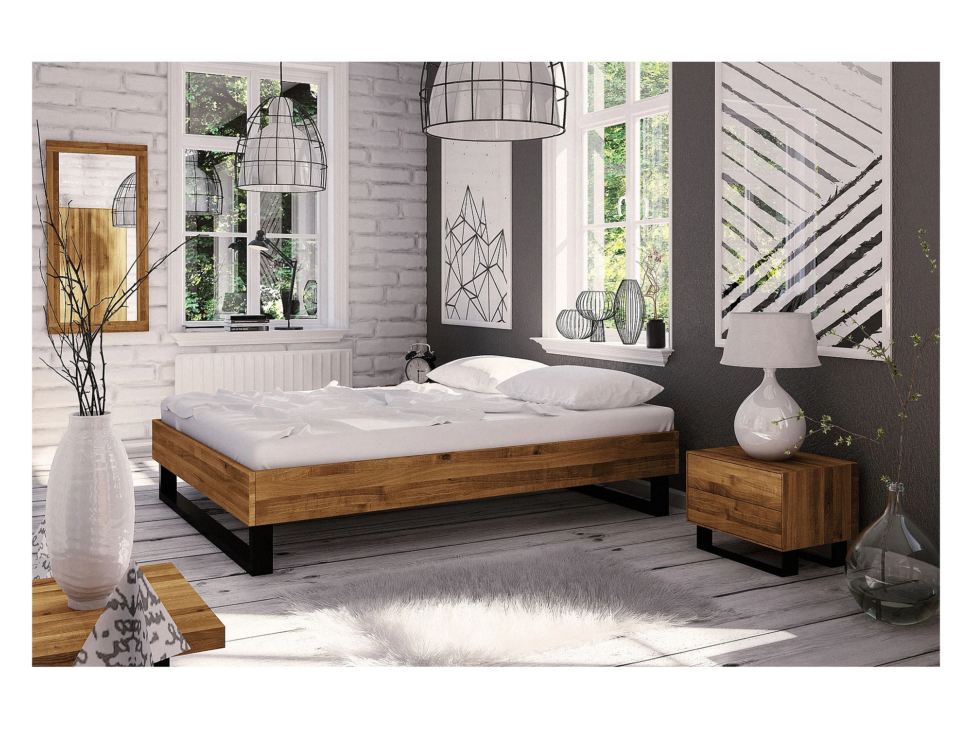 STEEL - Bett ohne kopfteil 140x200 aus Wildeiche, naturgeölt