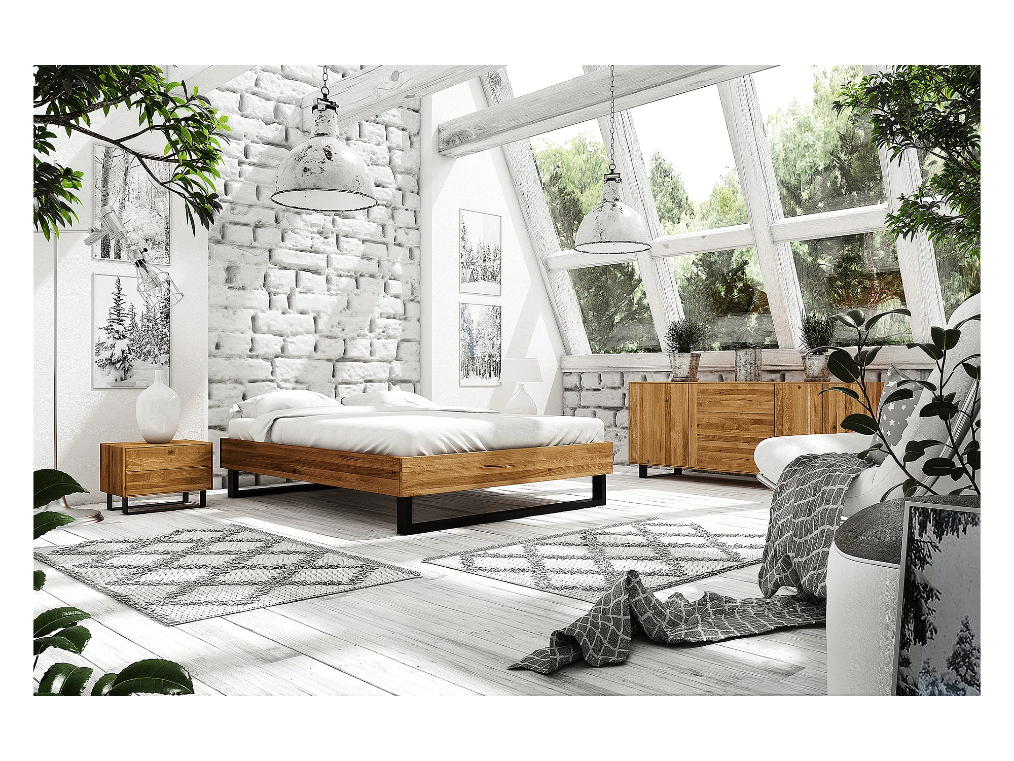 STEEL - Bett ohne kopfteil 200x200 aus Wildeiche, naturgeölt