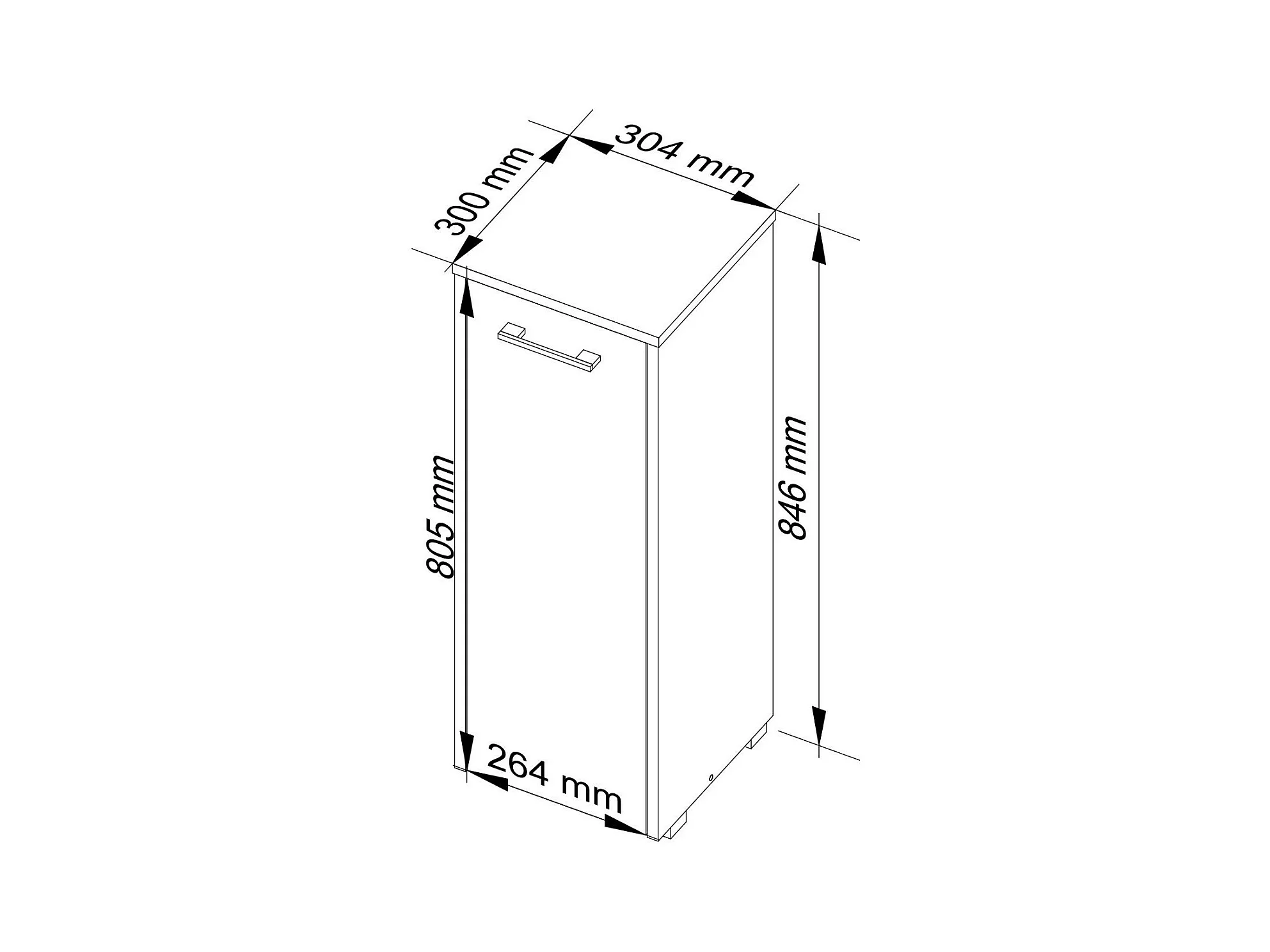 Stehender Badezimmerschrank AKORD FIN Artisan Eiche 30 cm Tür 2 Ebenen Front Weiß B30 x H85 x T30 cm