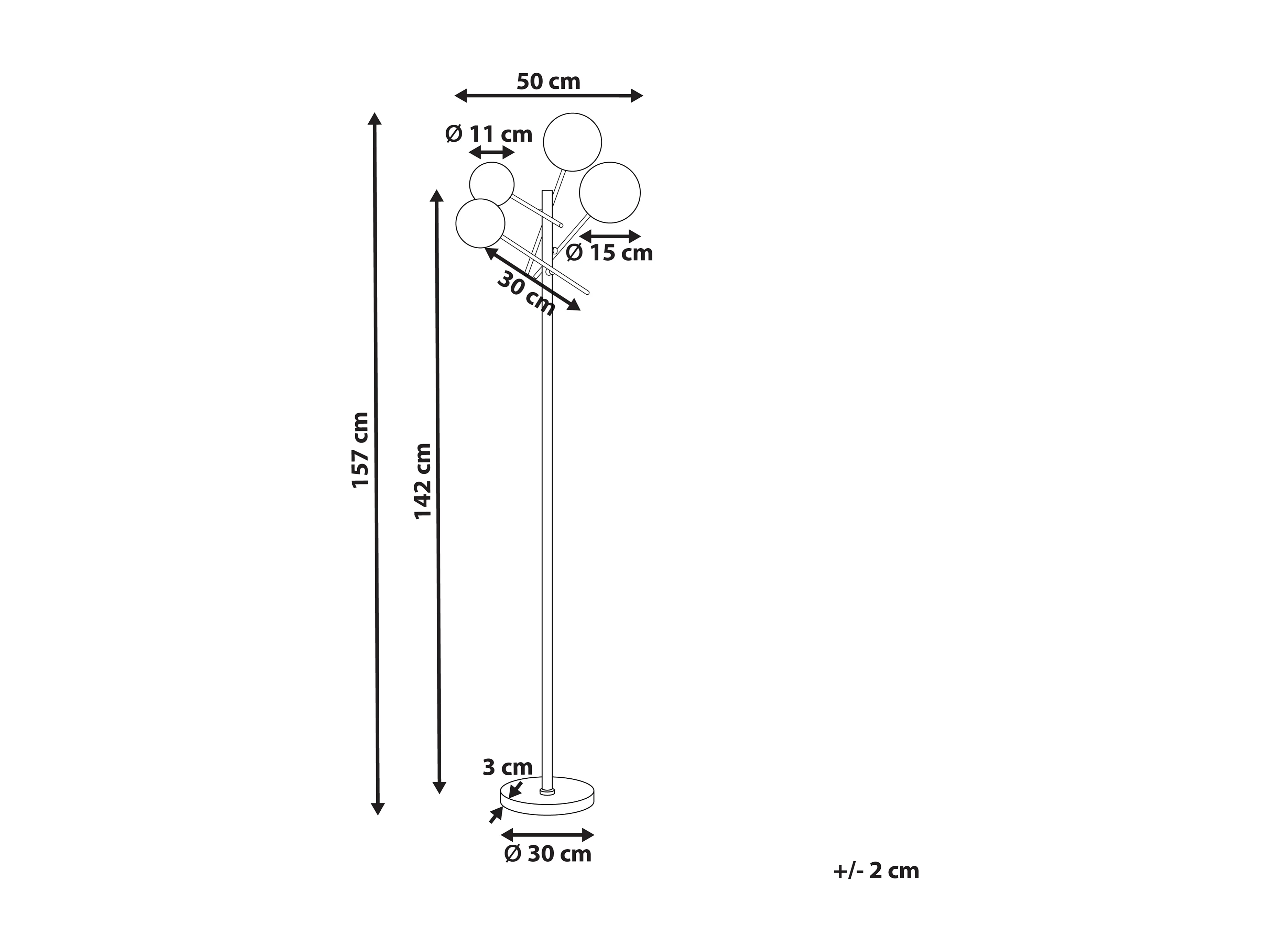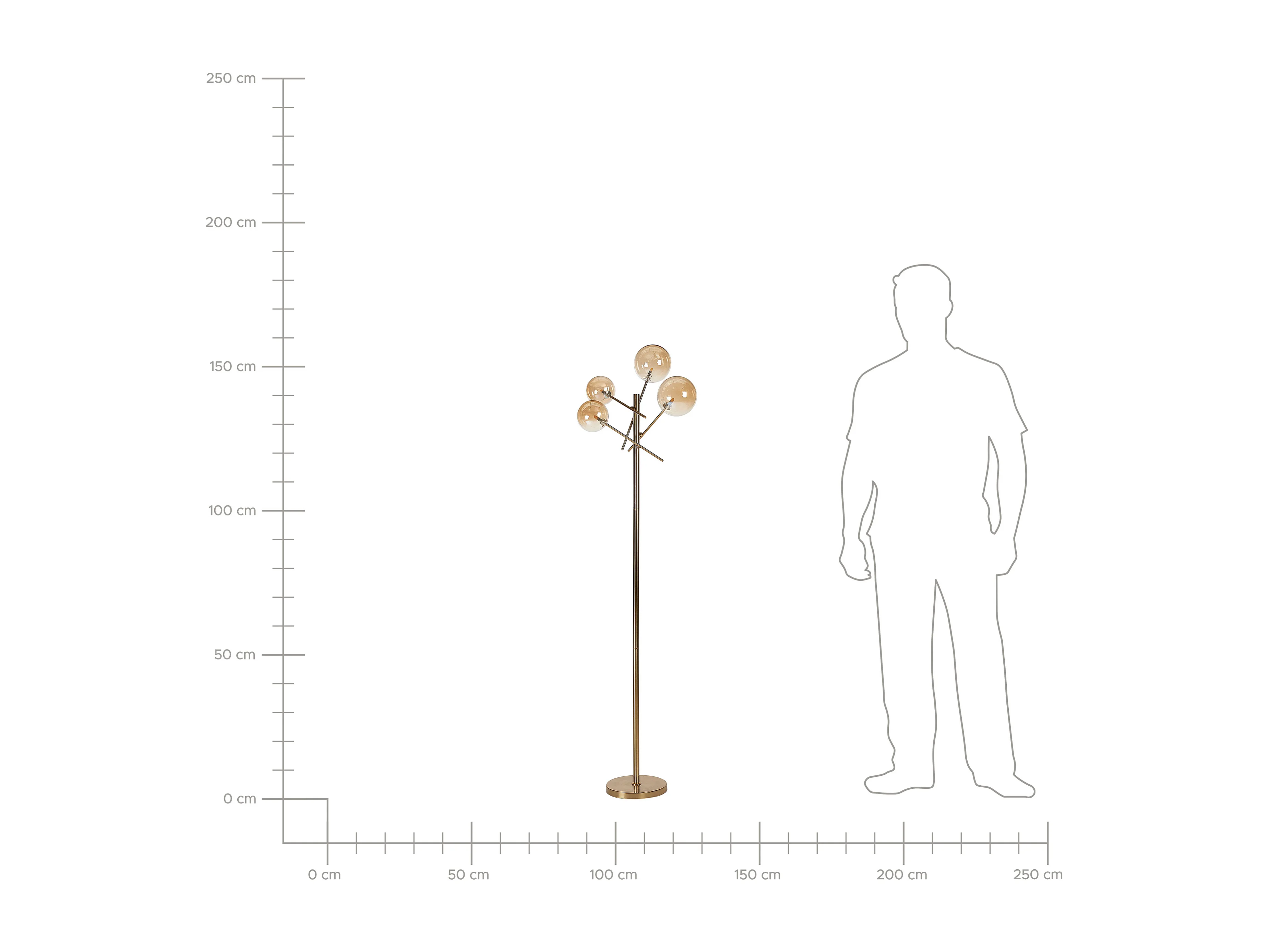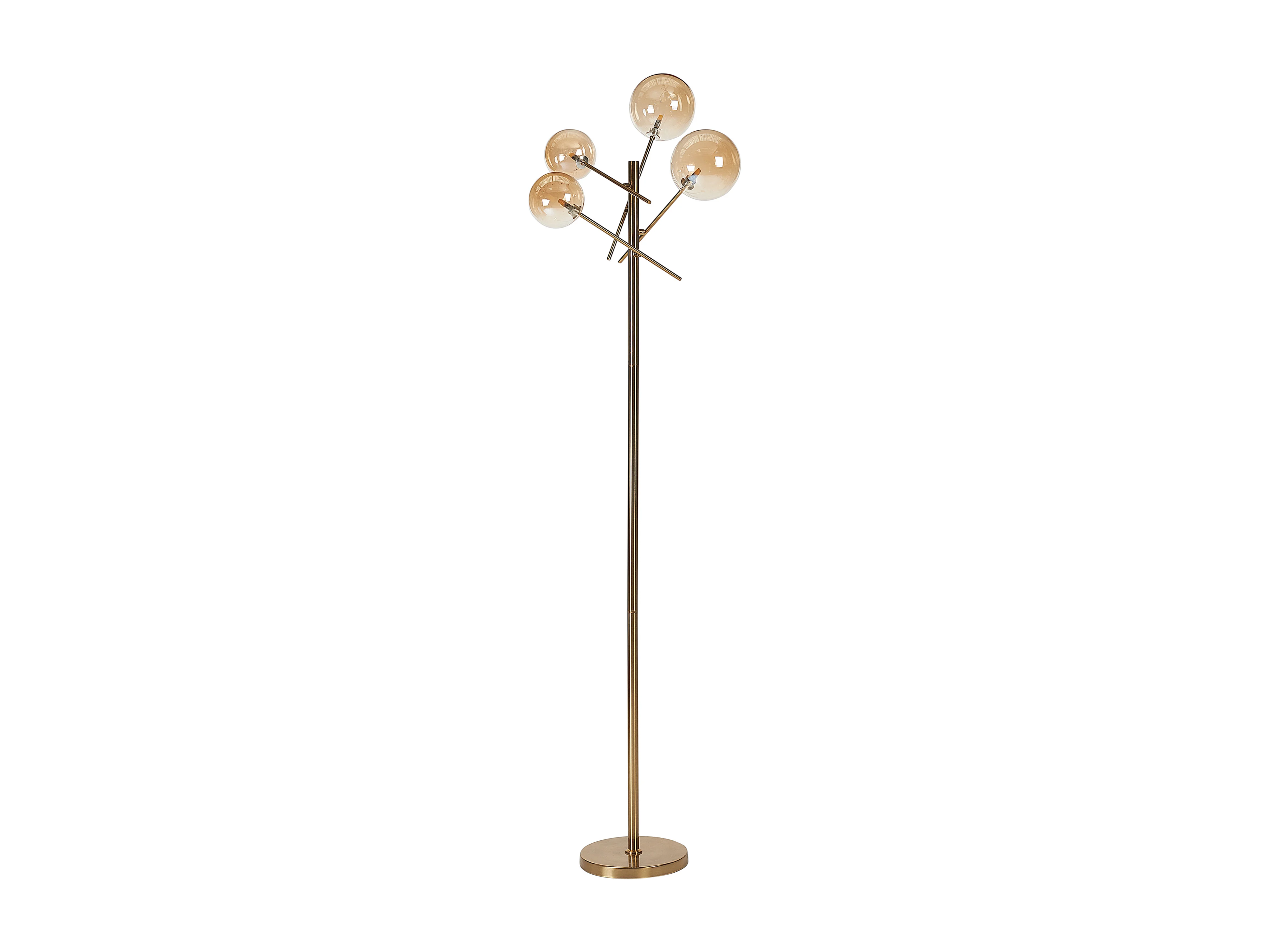 Stehlampe Metall und Glas gold rund mit 4 Schirmen Kugelform 157cm modern Tamesi