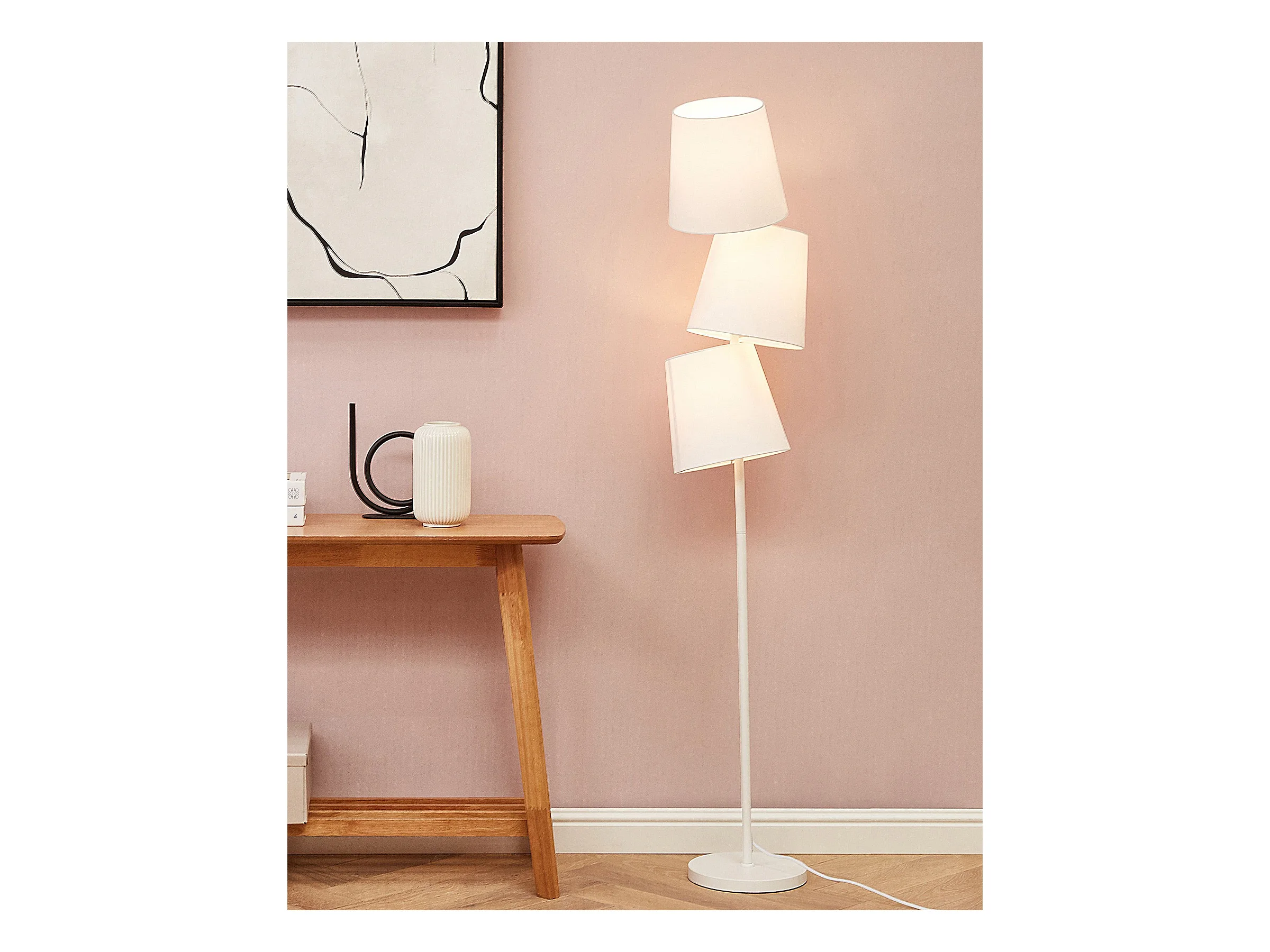 Moderne Stehlampe 3 Lampenschirme Polyester/Metall weiß Rio Grande