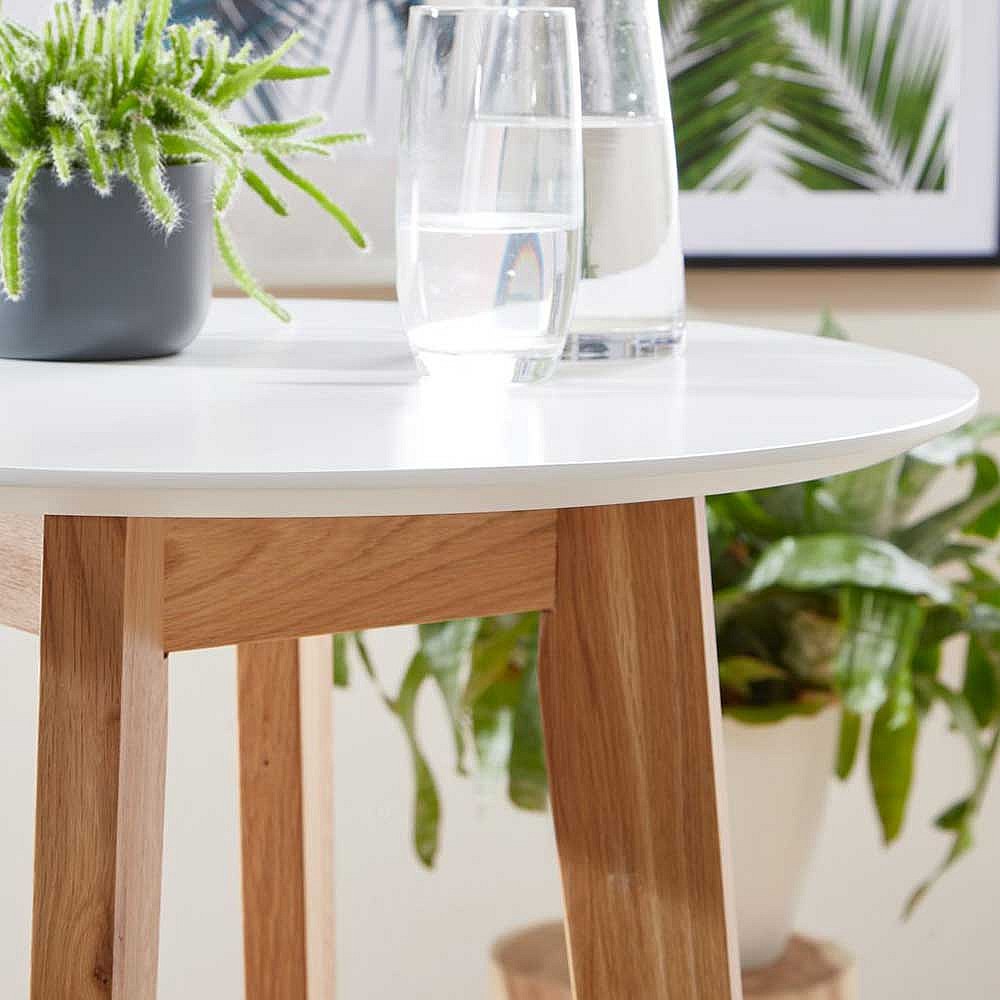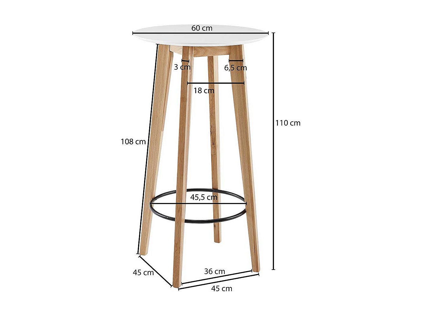 Stehtisch Skandi Stil in Weiß und Eichefarben 110 cm hoch
