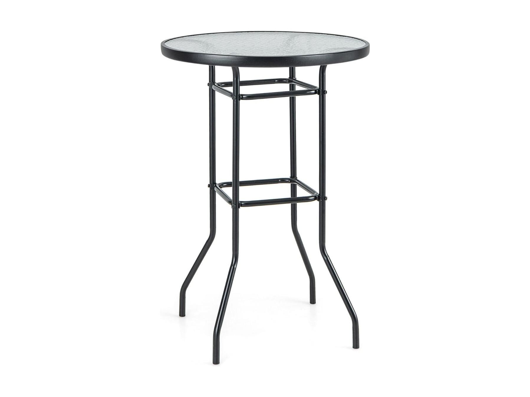 Hoher Gartentisch Stehtisch runder Bistrotisch mit Tischplatte aus gehärtetem Glas 68 x 68 x 97 cm Schwarz