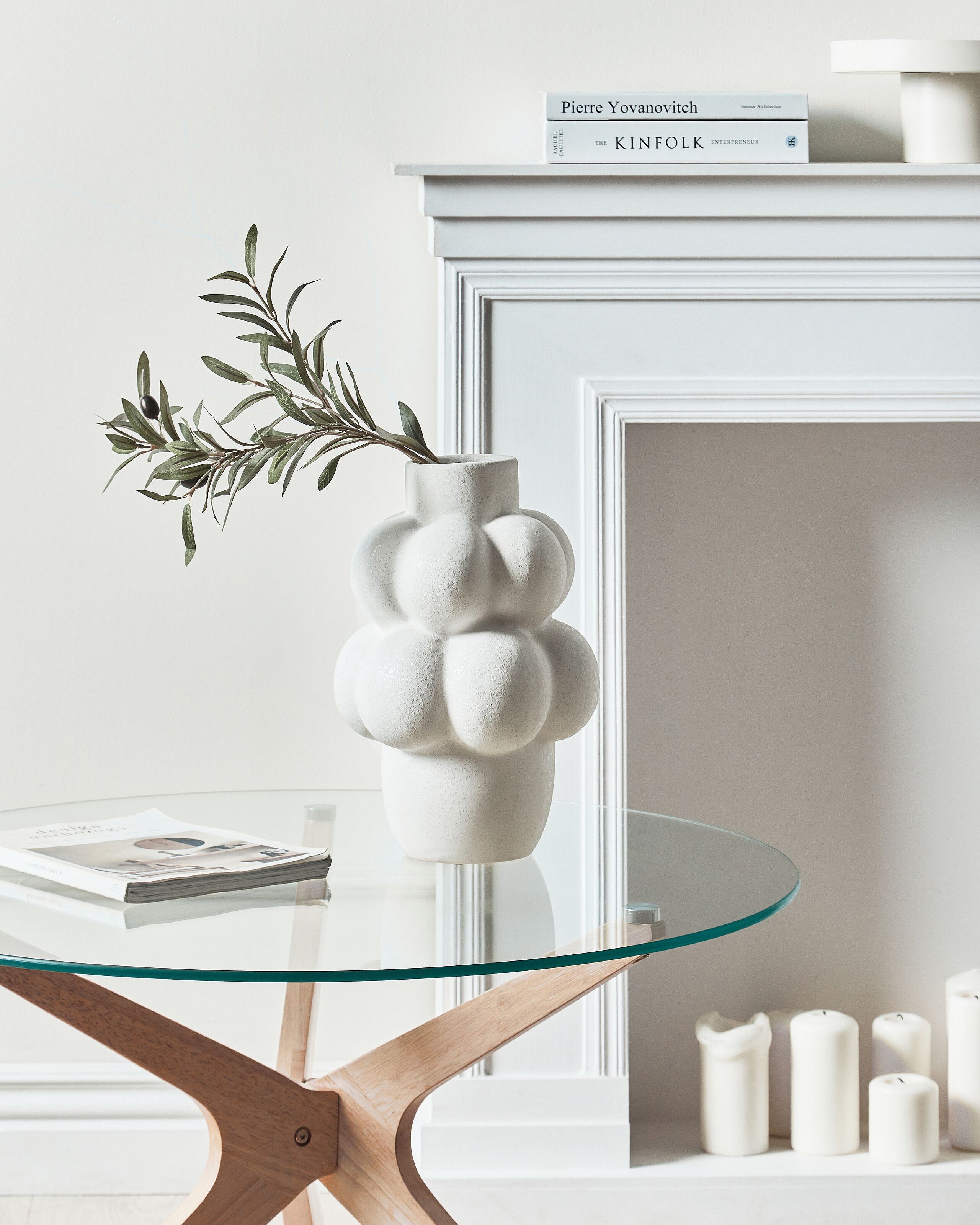 Blumenvase VIMBA Steinzeug 32 cm Cremeweiss