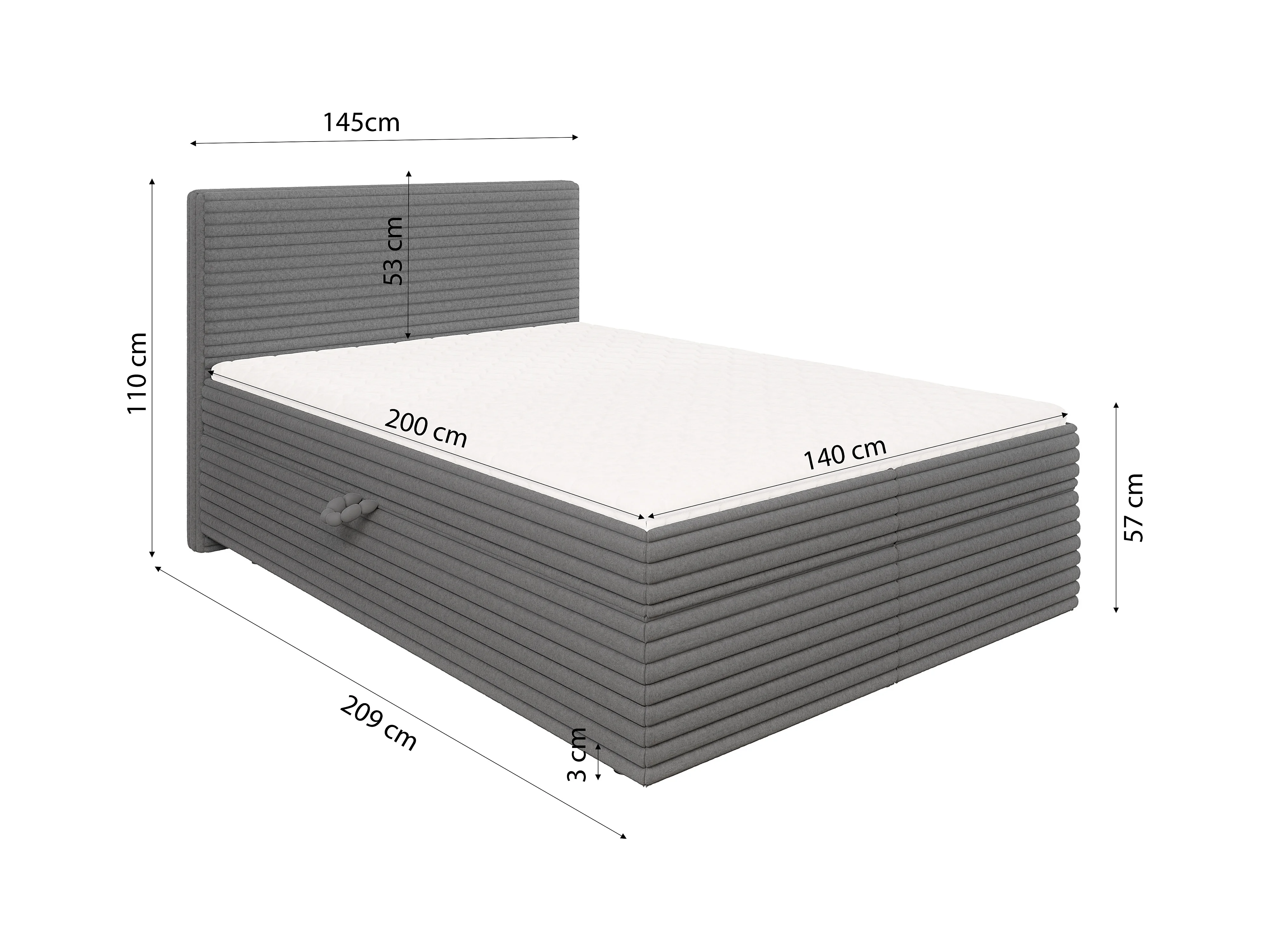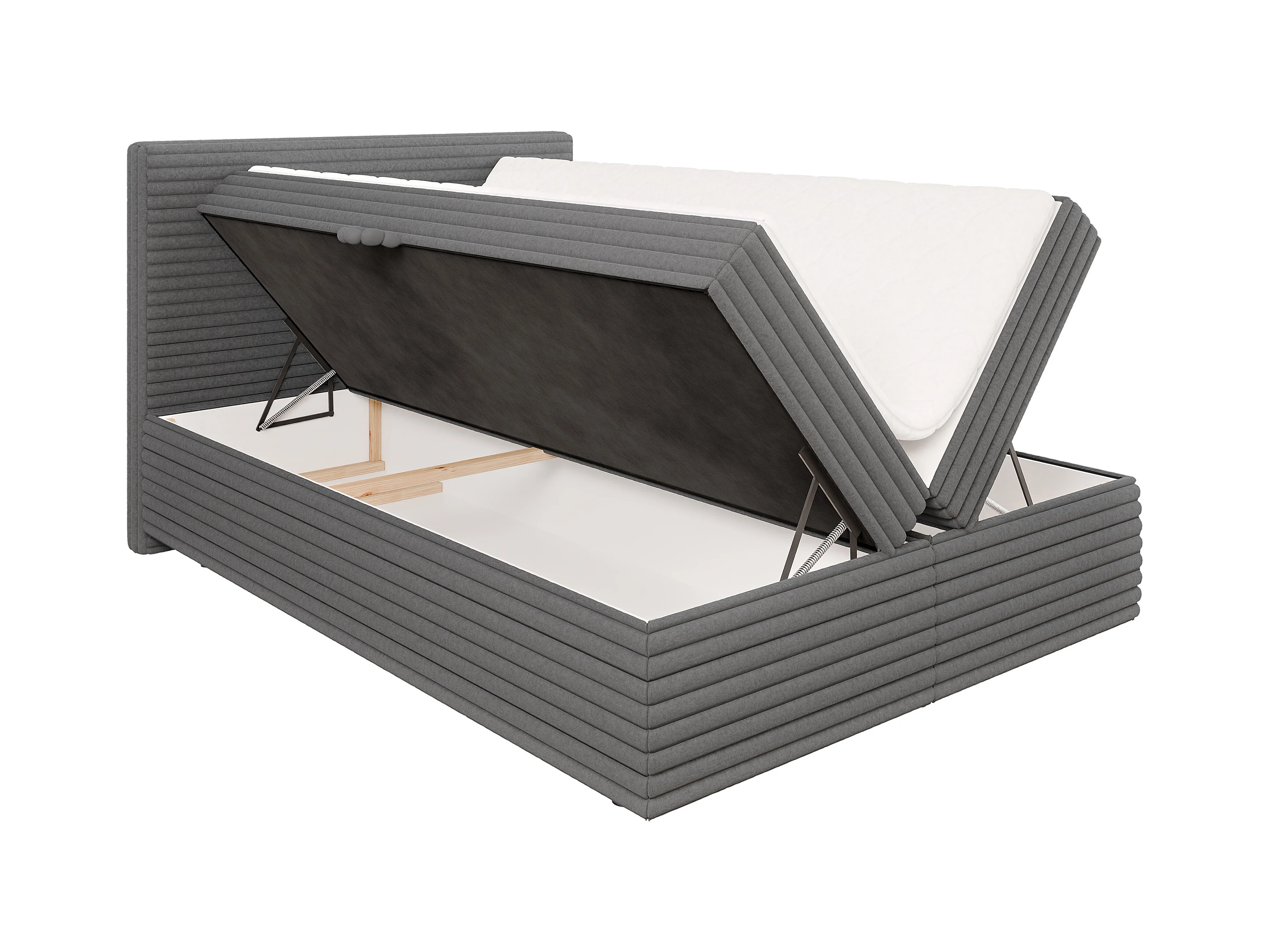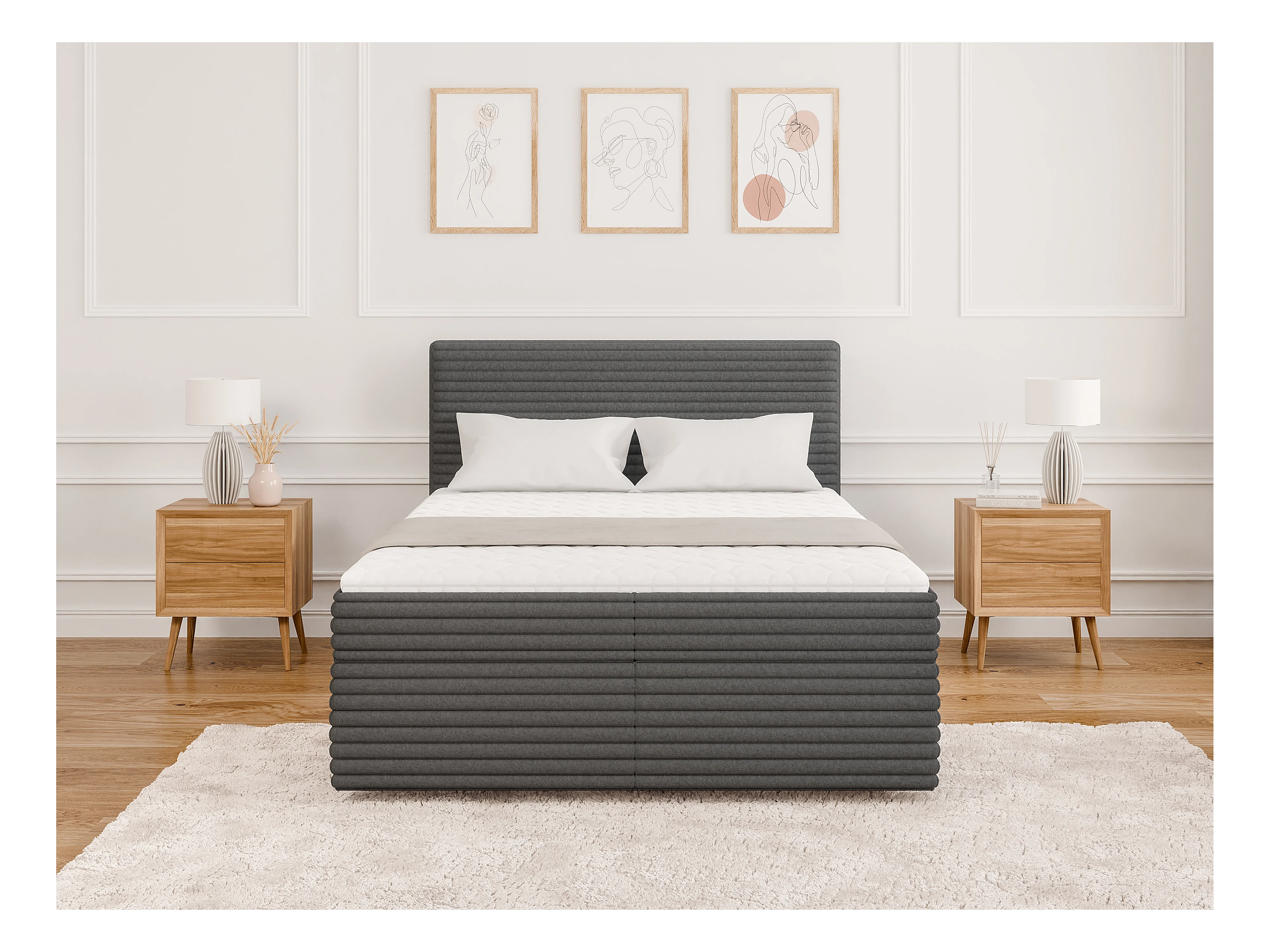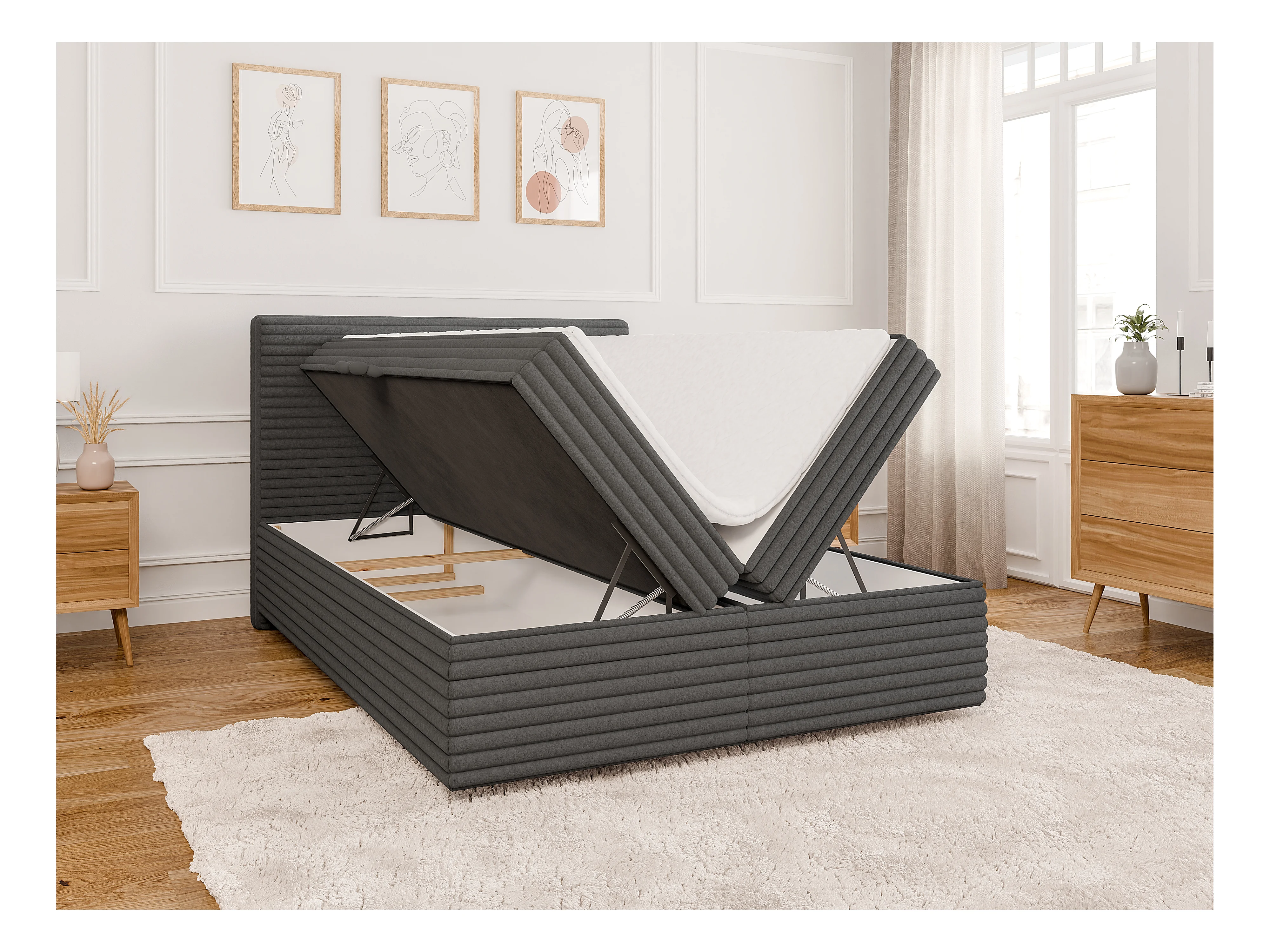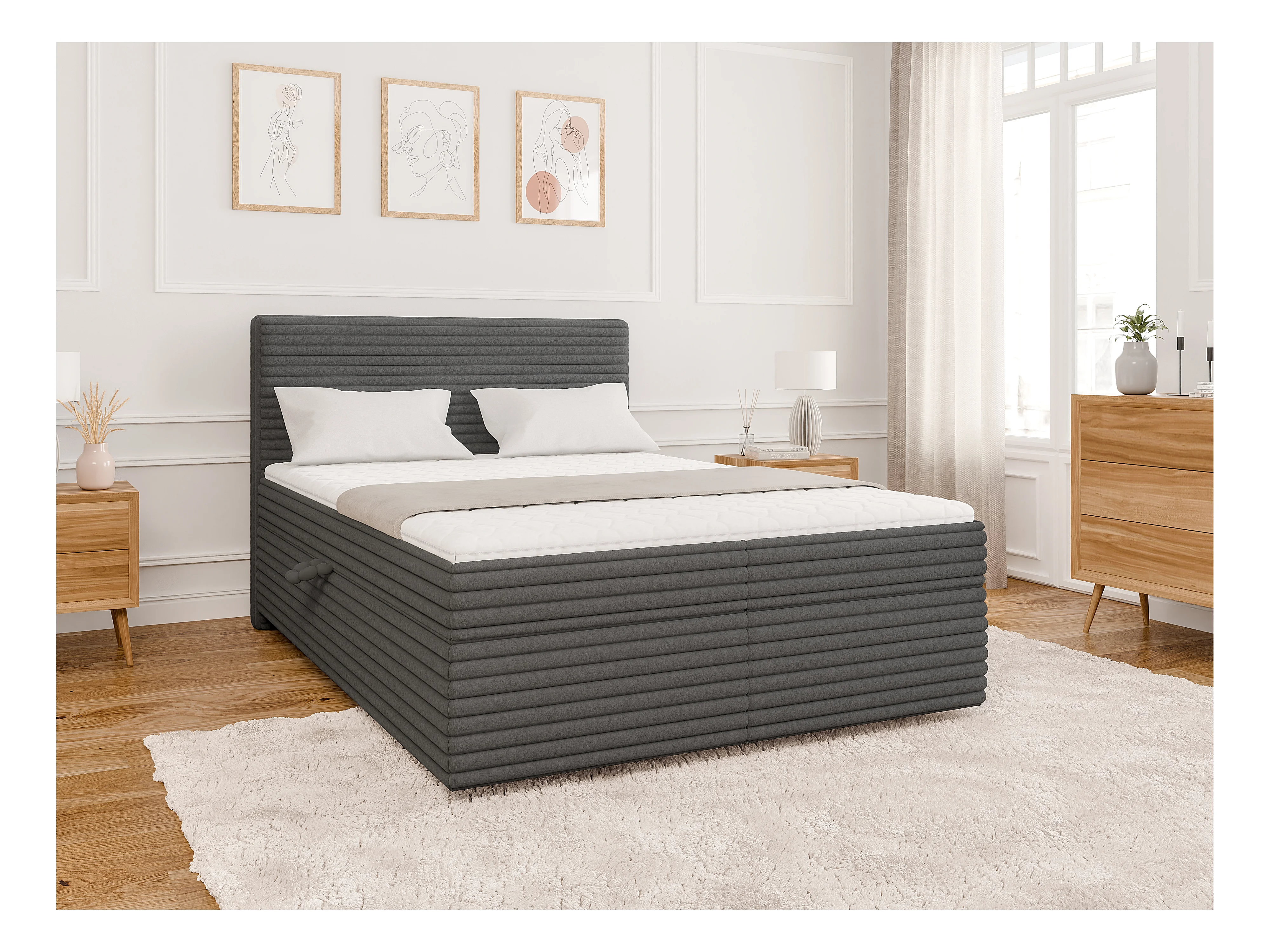Stella - Boxspringbett 140x200 mit Topper und Bettkästen aus Dunkelgrau Plüschcord