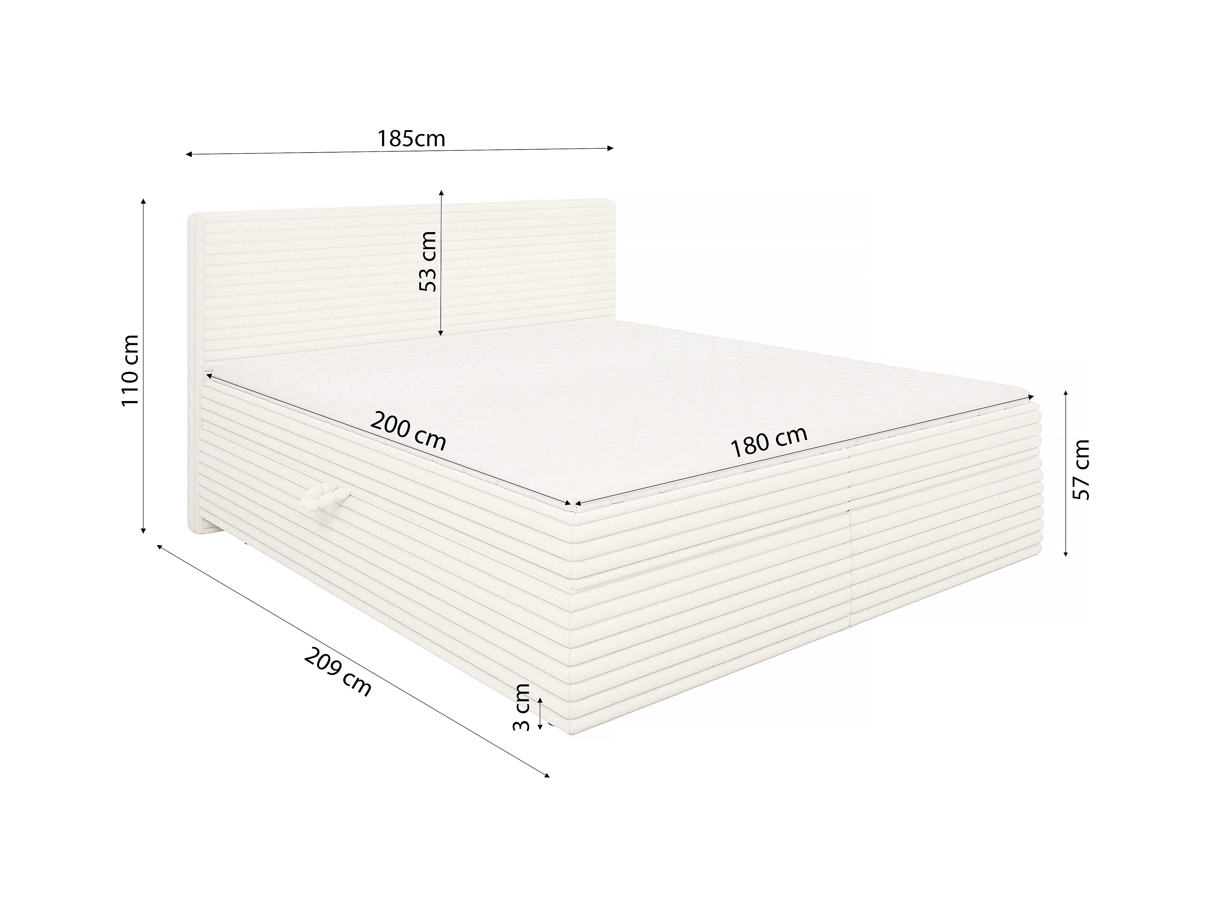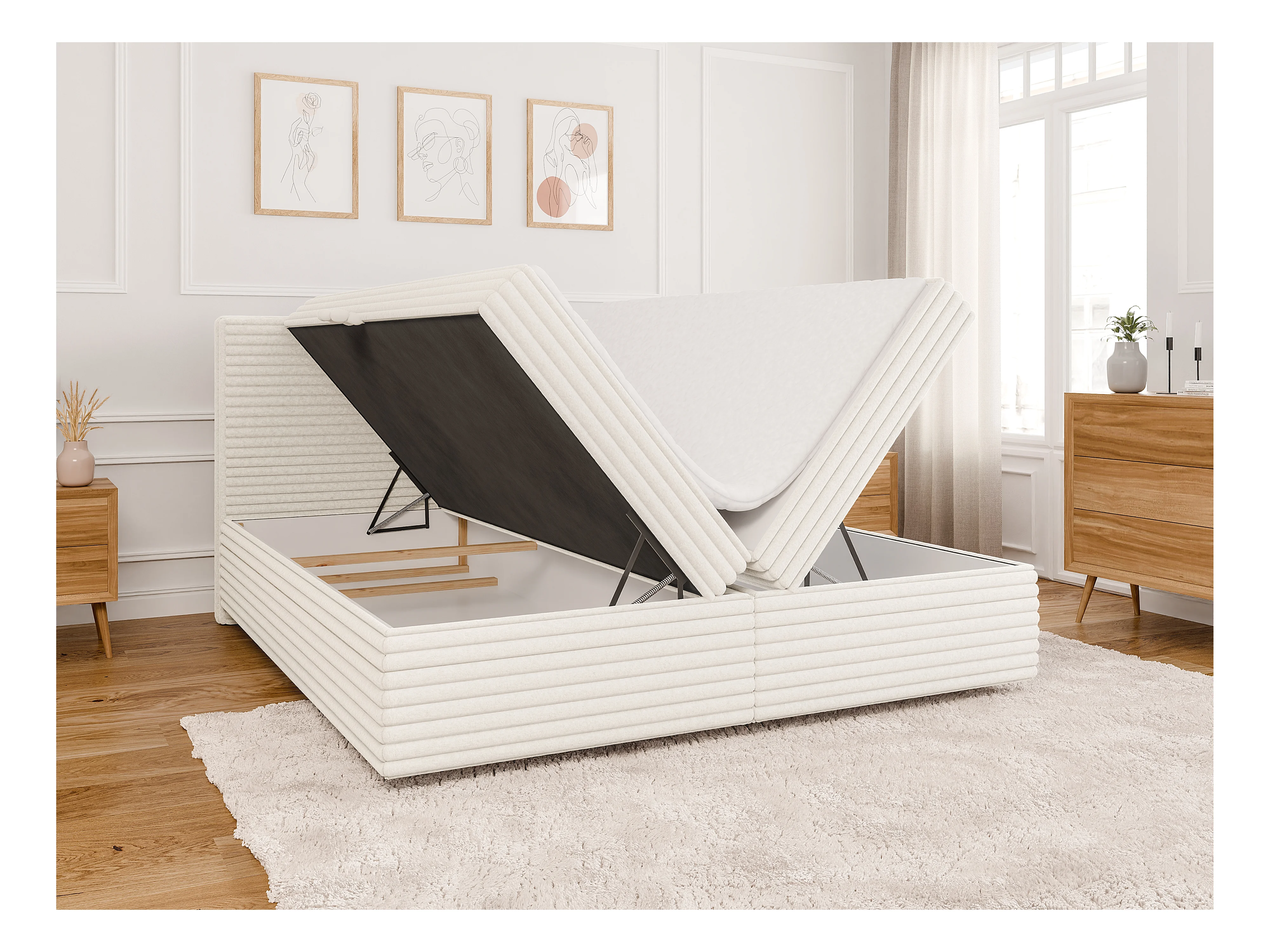 Stella - Boxspringbett 180x200 mit Topper und Bettkästen aus Hellbeige Plüschcord