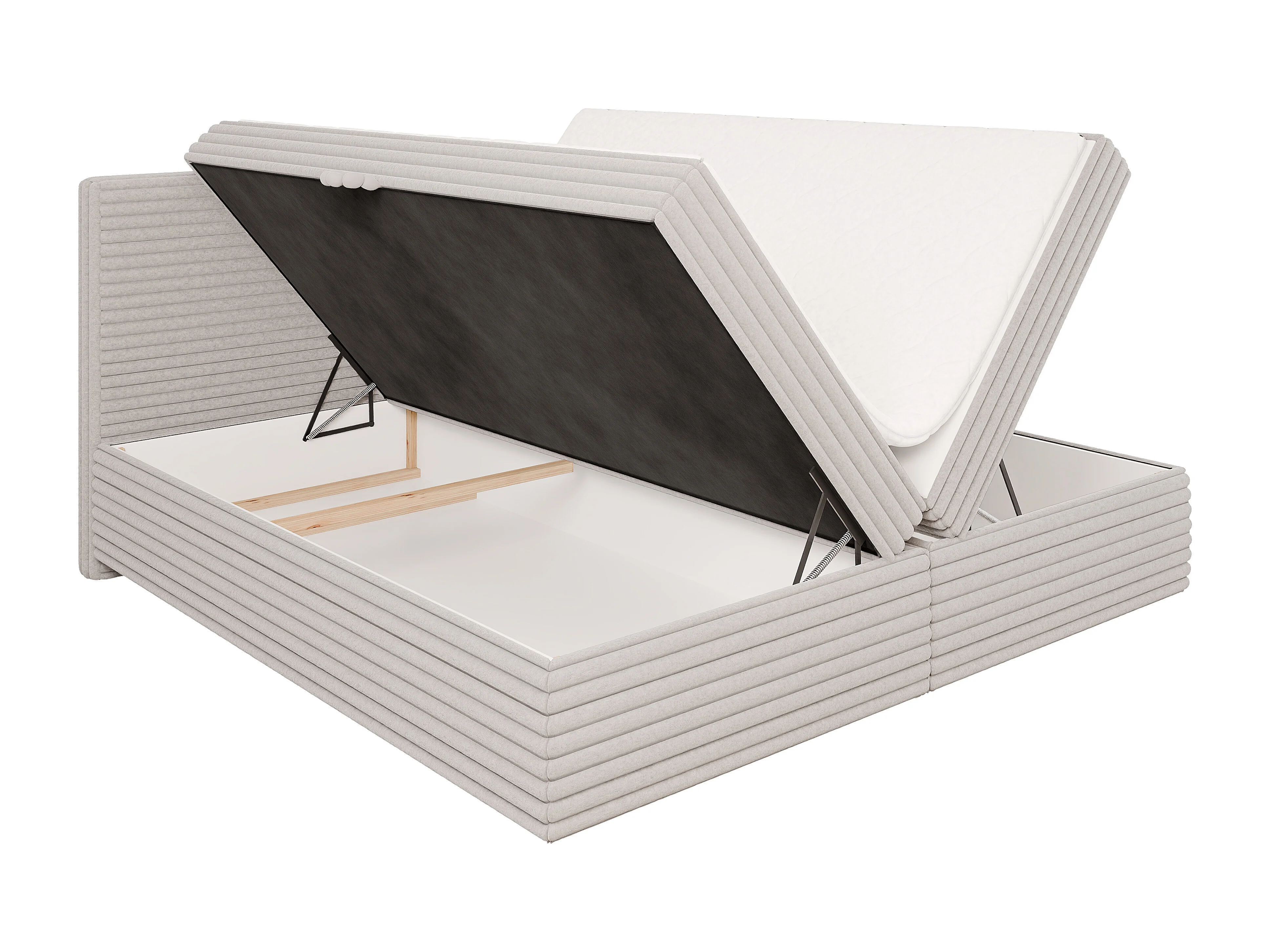 Stella - Boxspringbett 200x200 mit Topper und Bettkästen aus Hellgrau Plüschcord