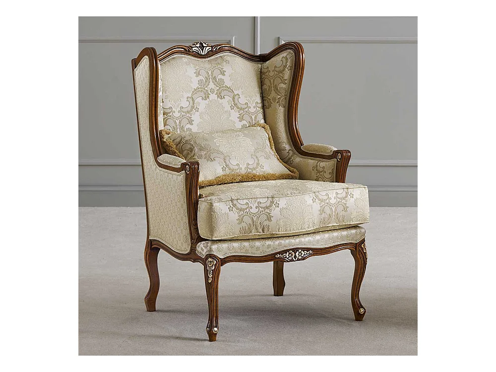 Stilmöbel Kaminsessel in Cremefarben - Beige Vierfußgestell aus Holz