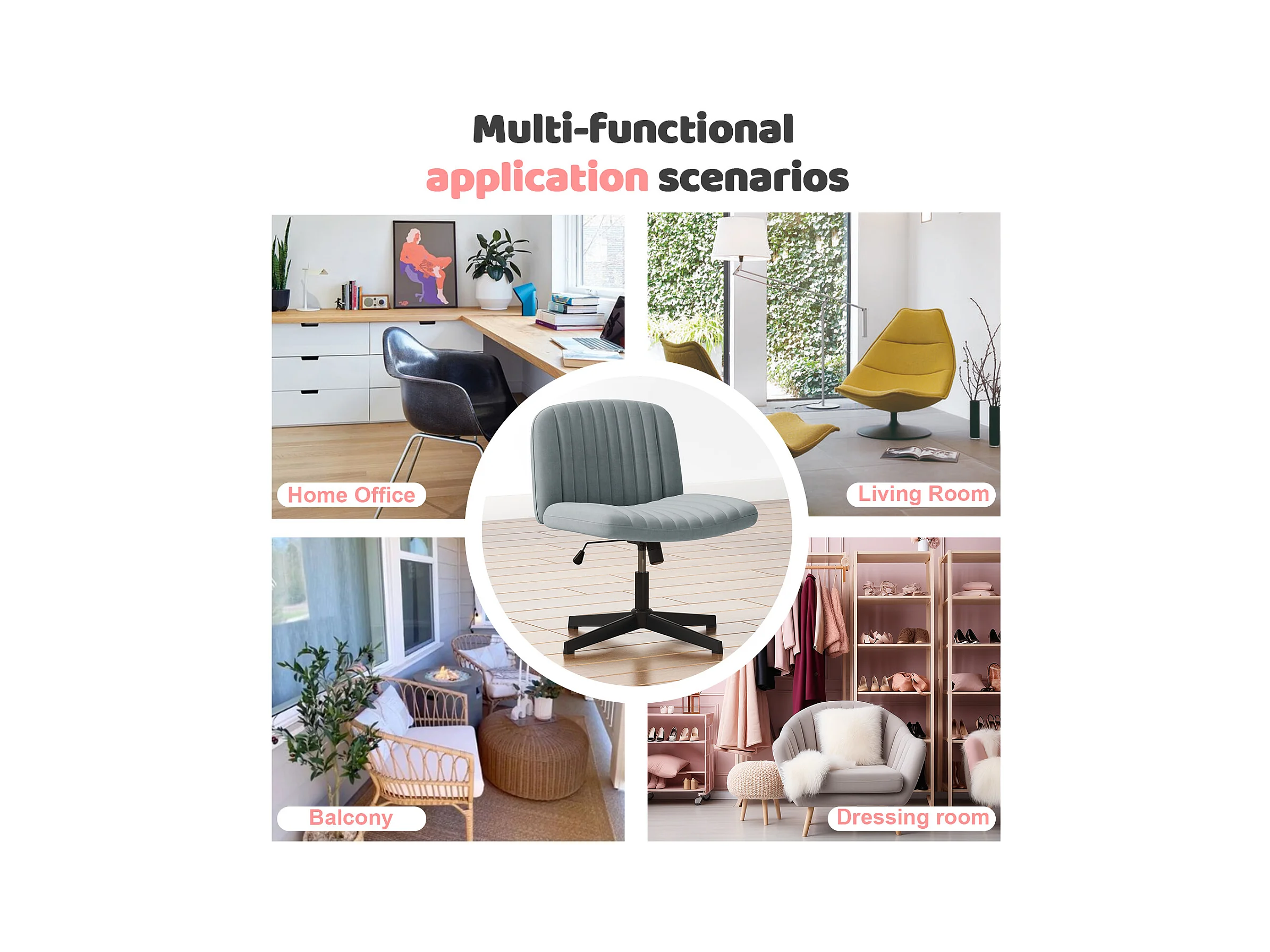 Stilvoller armloser Bürostuhl - Höhe verstellbar, breiter Sitz, perfekt für Heimbüro und Schlafzimmer