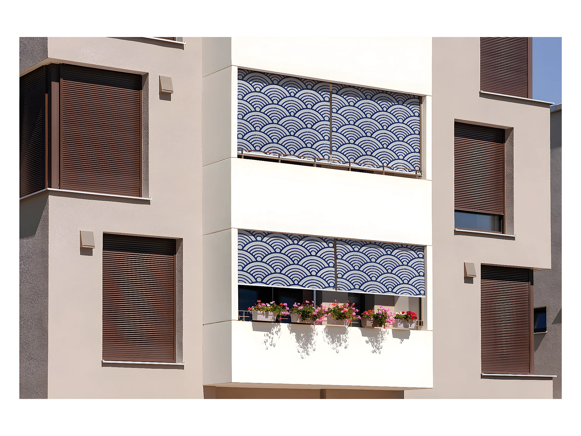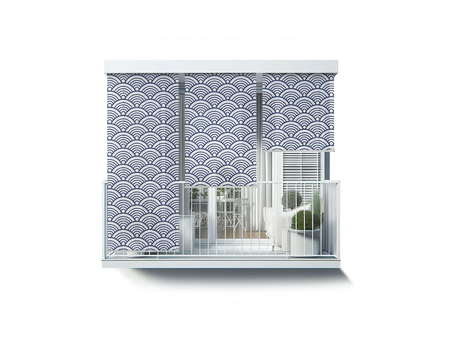 Stilvolles Außenrollo – 120 x 180 cm – Muster im japanischen Stil. Balkonvorhang, Balkonrollos und Sonnenschutzvorhang