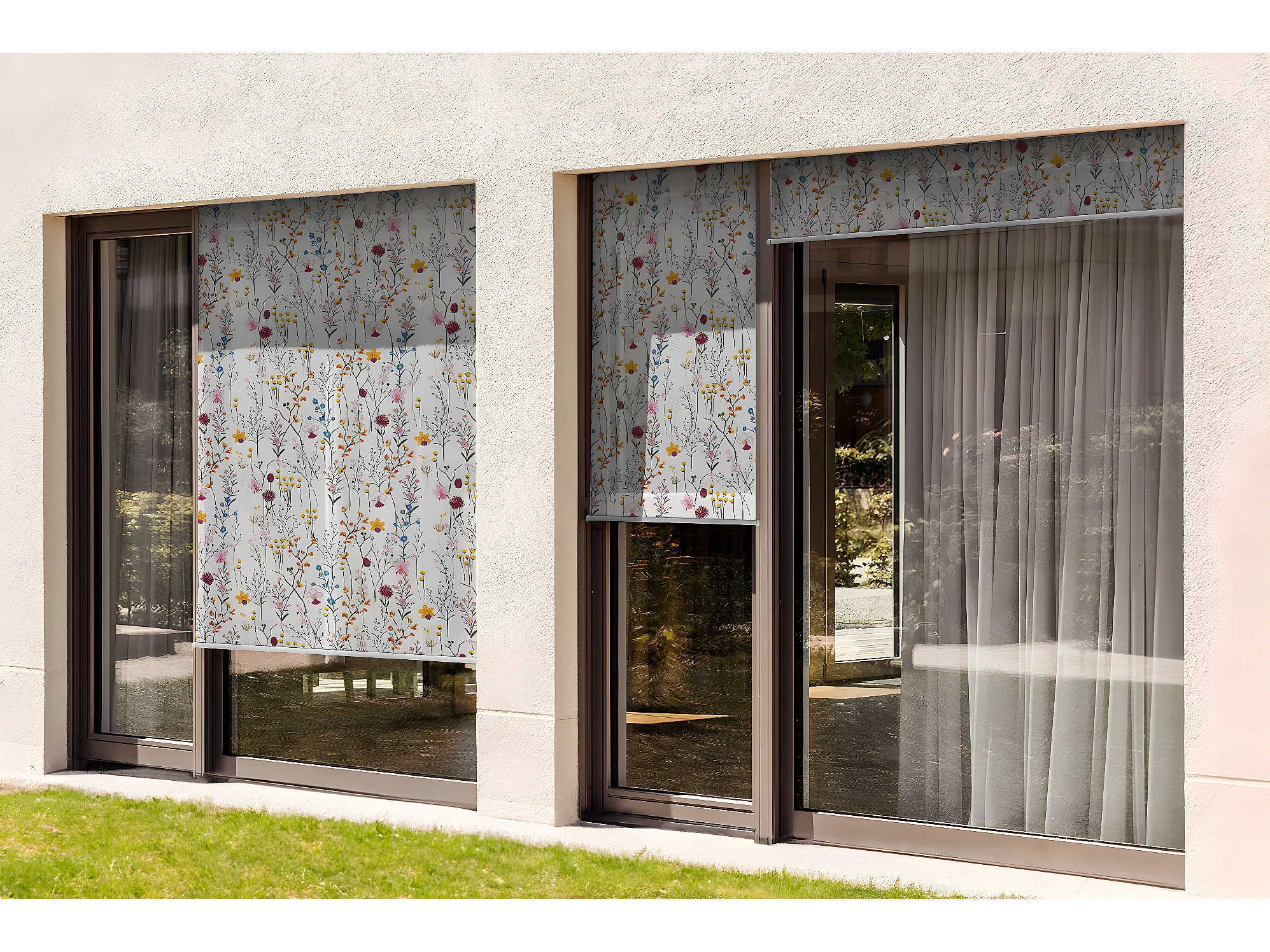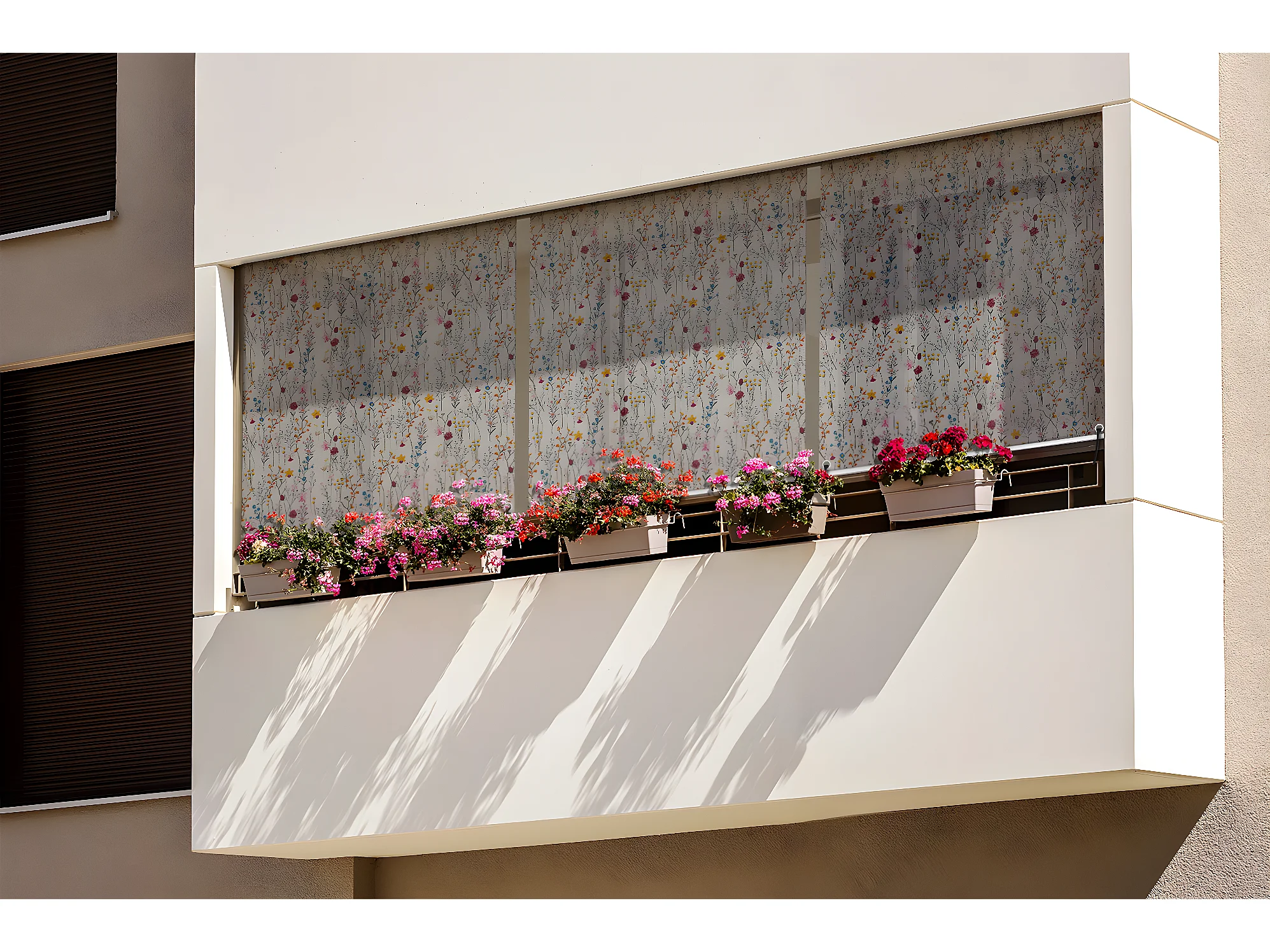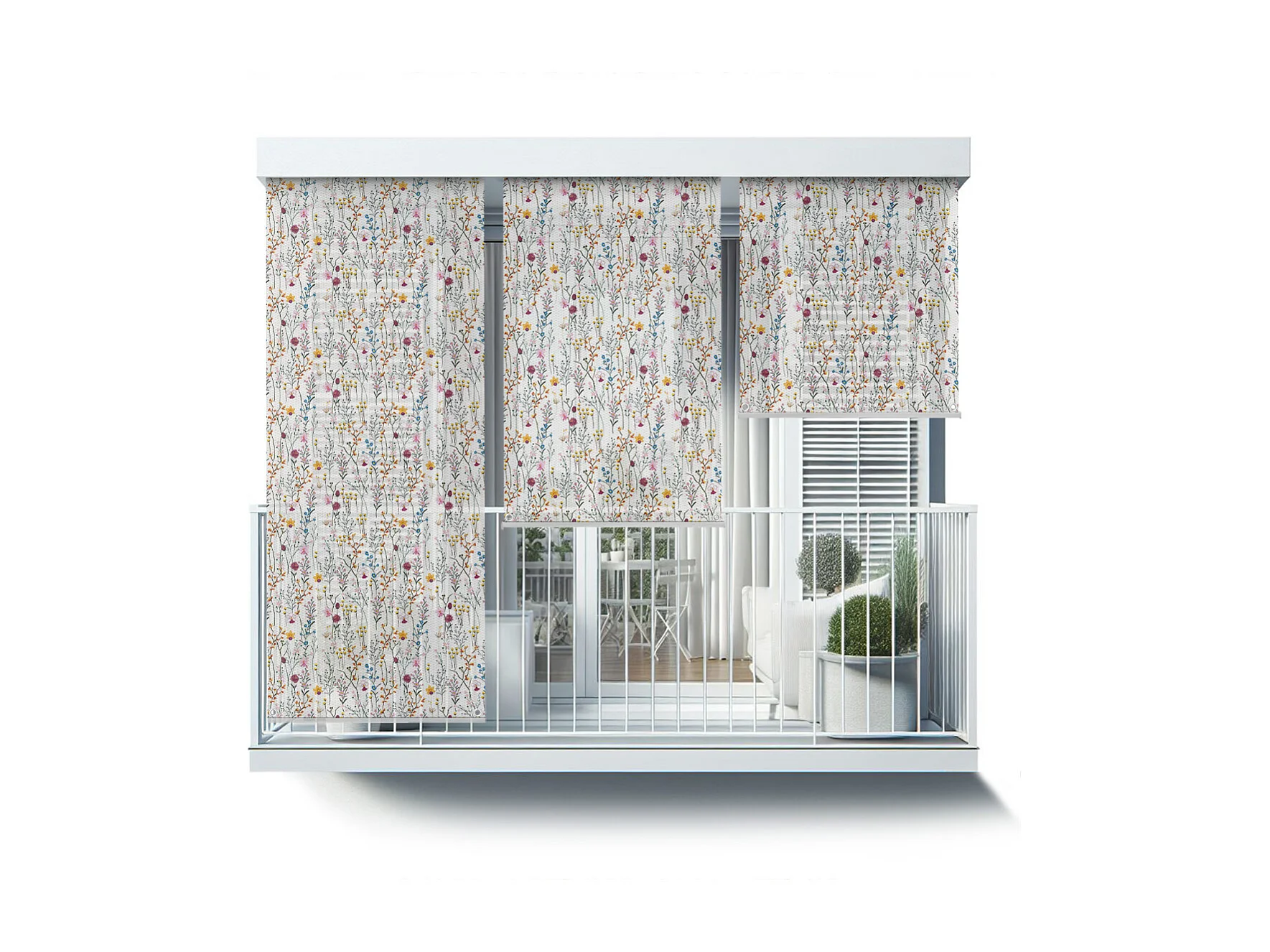 Stilvolles Außenrollo - 120x290 cm - Bunte Blumenwiese Balkonvorhang, Balkonrollos, Sonnenschutzvorhang
