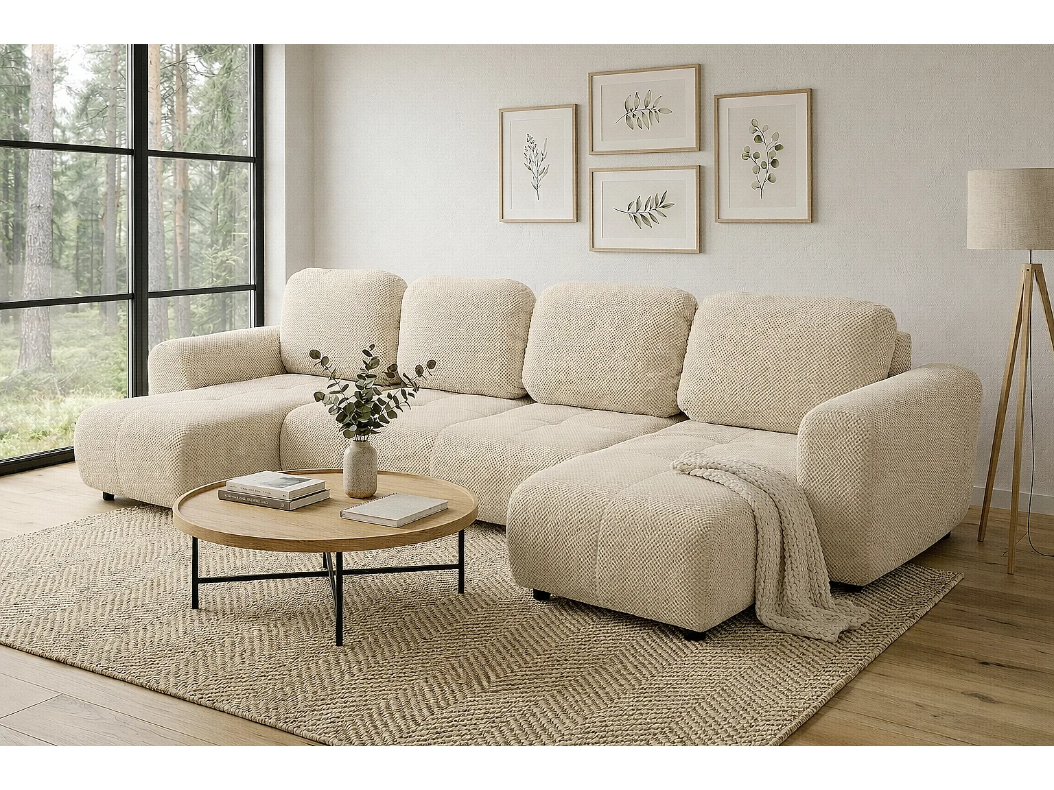 Stilvolles, ausziehbares Ecksofa BINGO U L 315x146 cm, in beigem Stoff POP 6