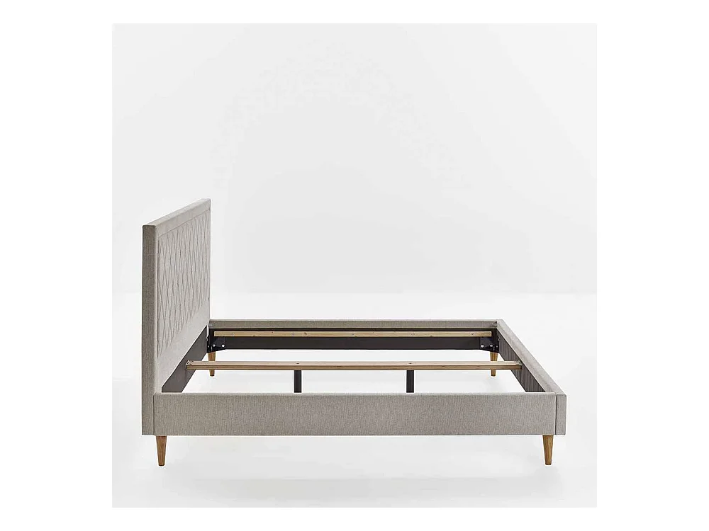Stoffbett Cremefarben Polster in modernem Design Vierfußgestell aus Holz