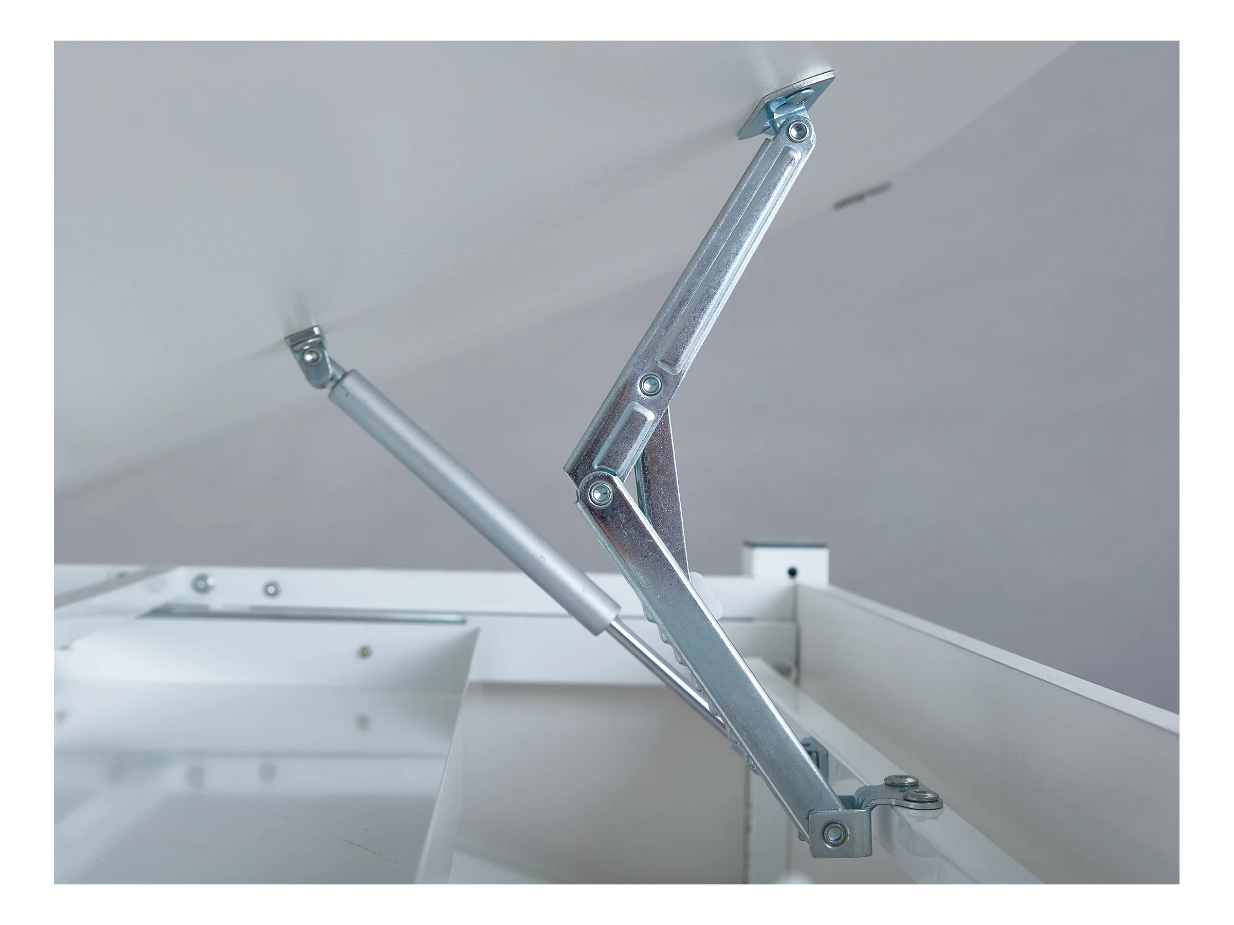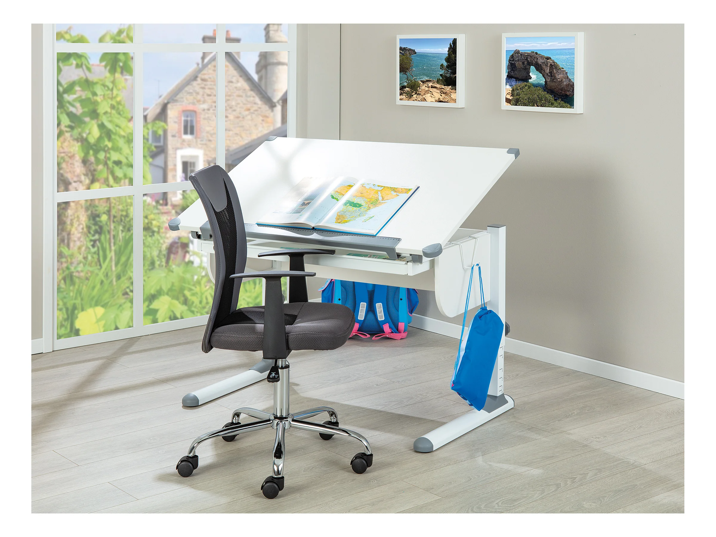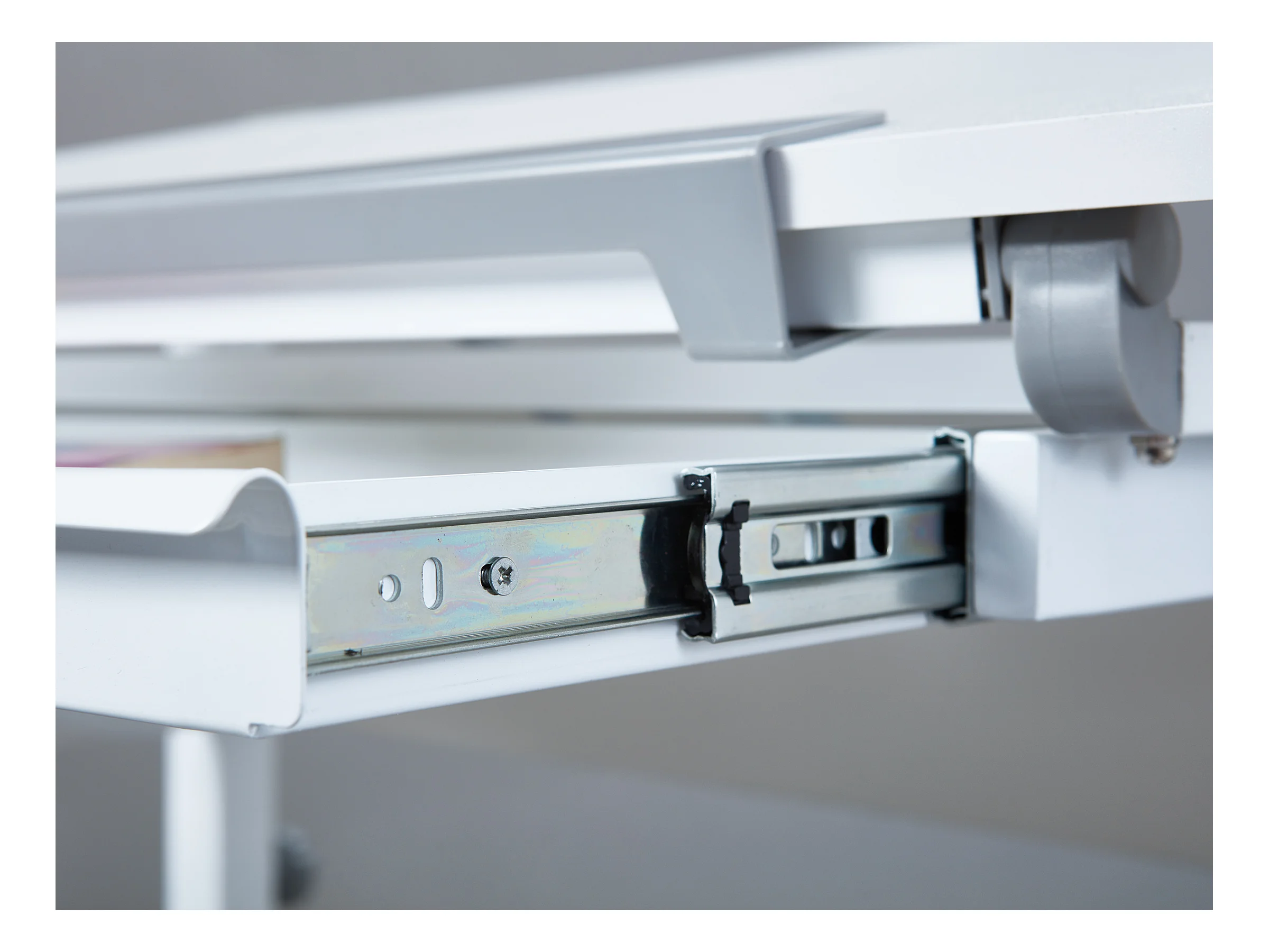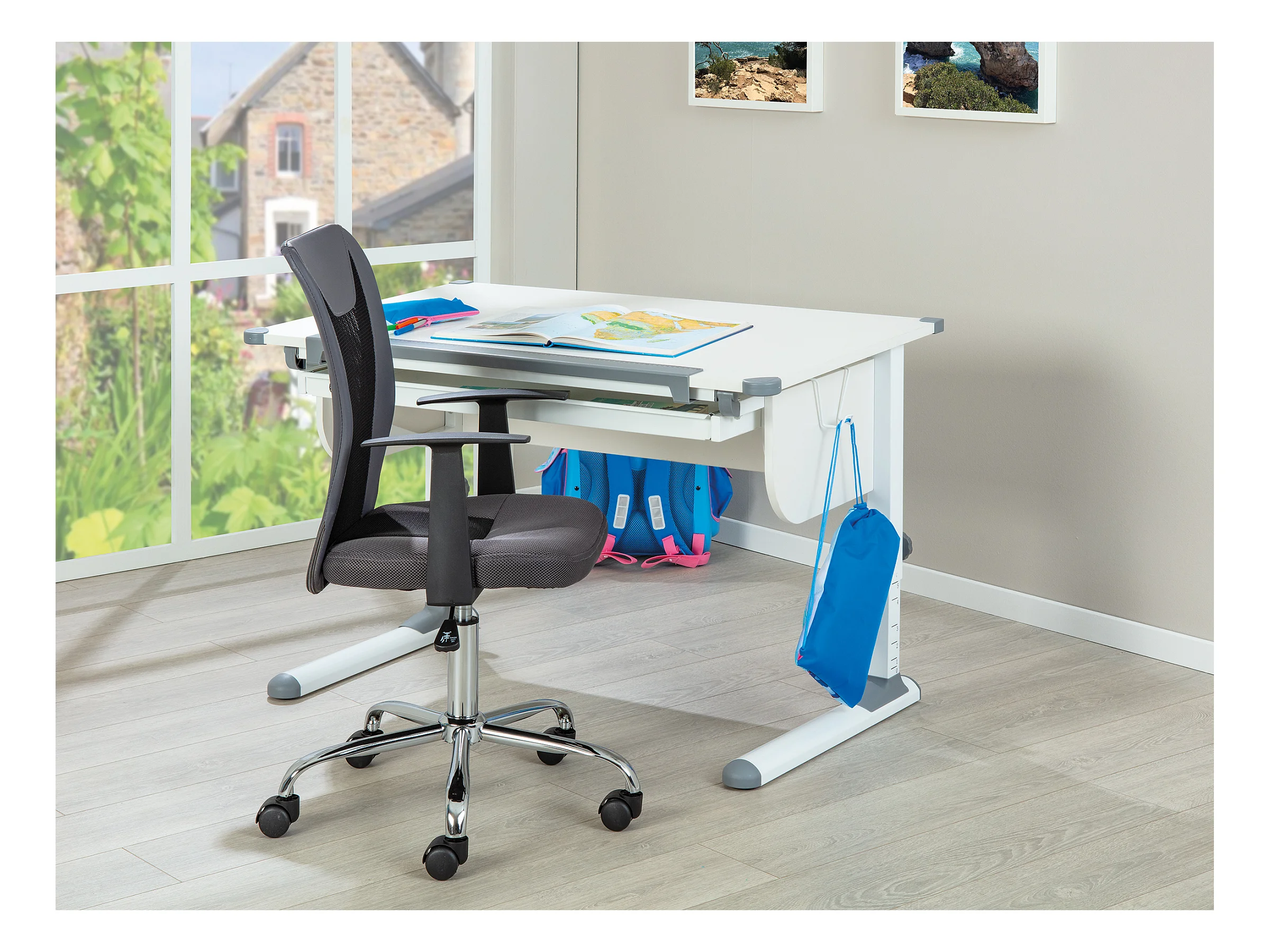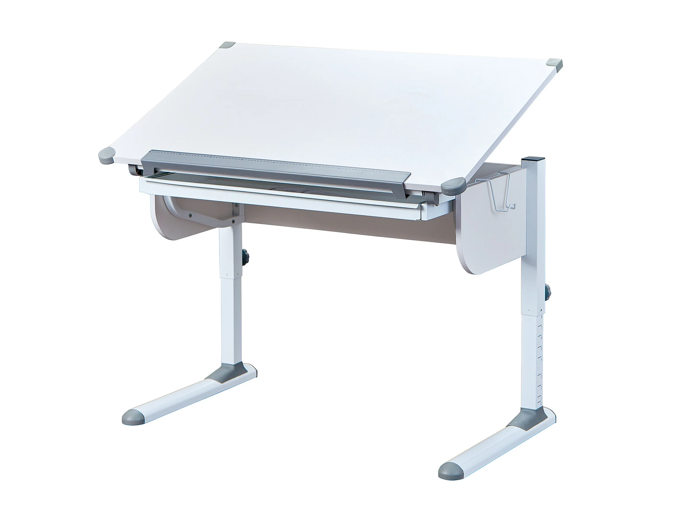 Stog Schreibtisch mit hebe/senk Platte und 1 Schubladen weiss und grau.