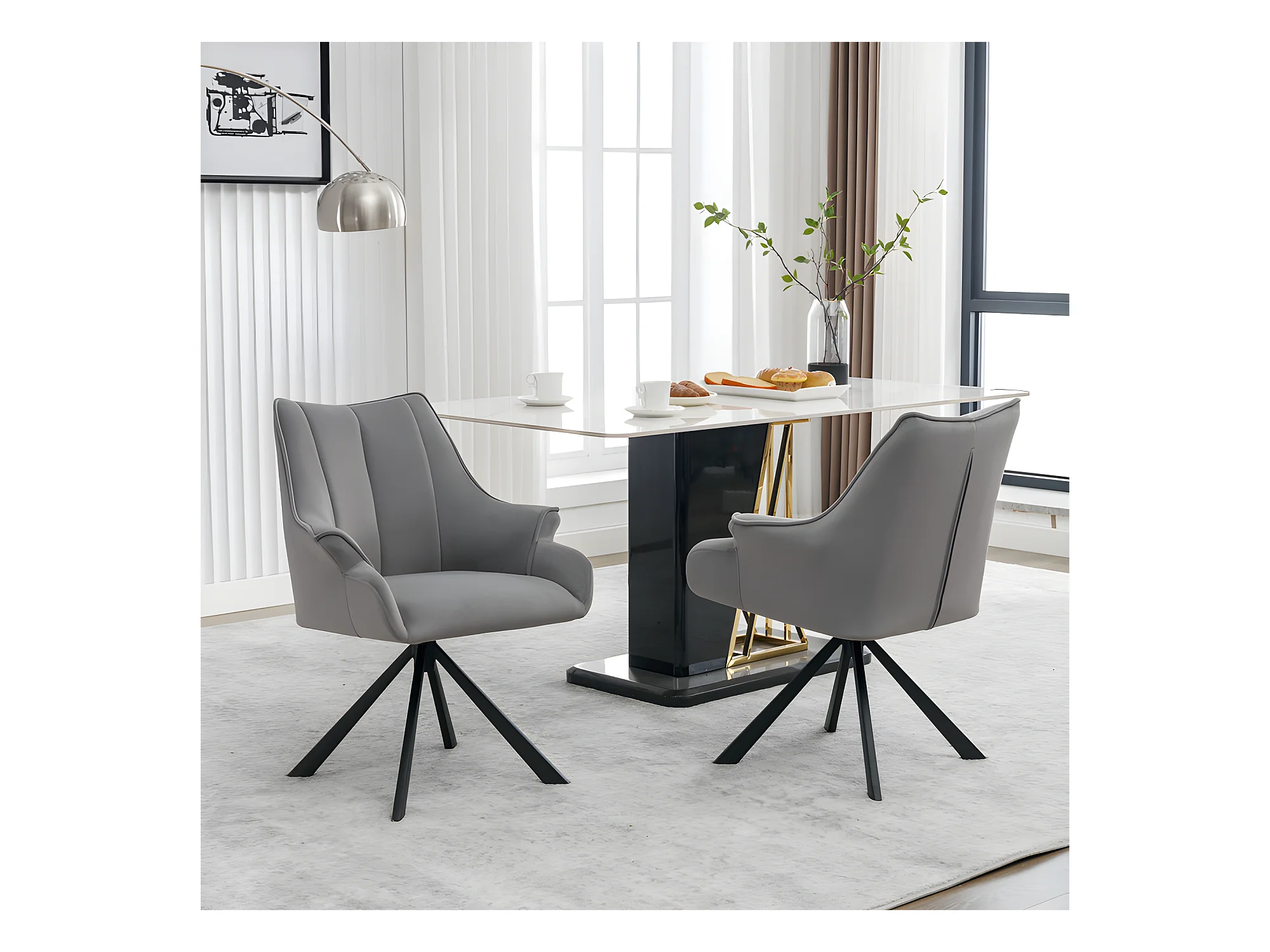 Stuhl 2er-Set aus Samt – Metallbeine – Grau