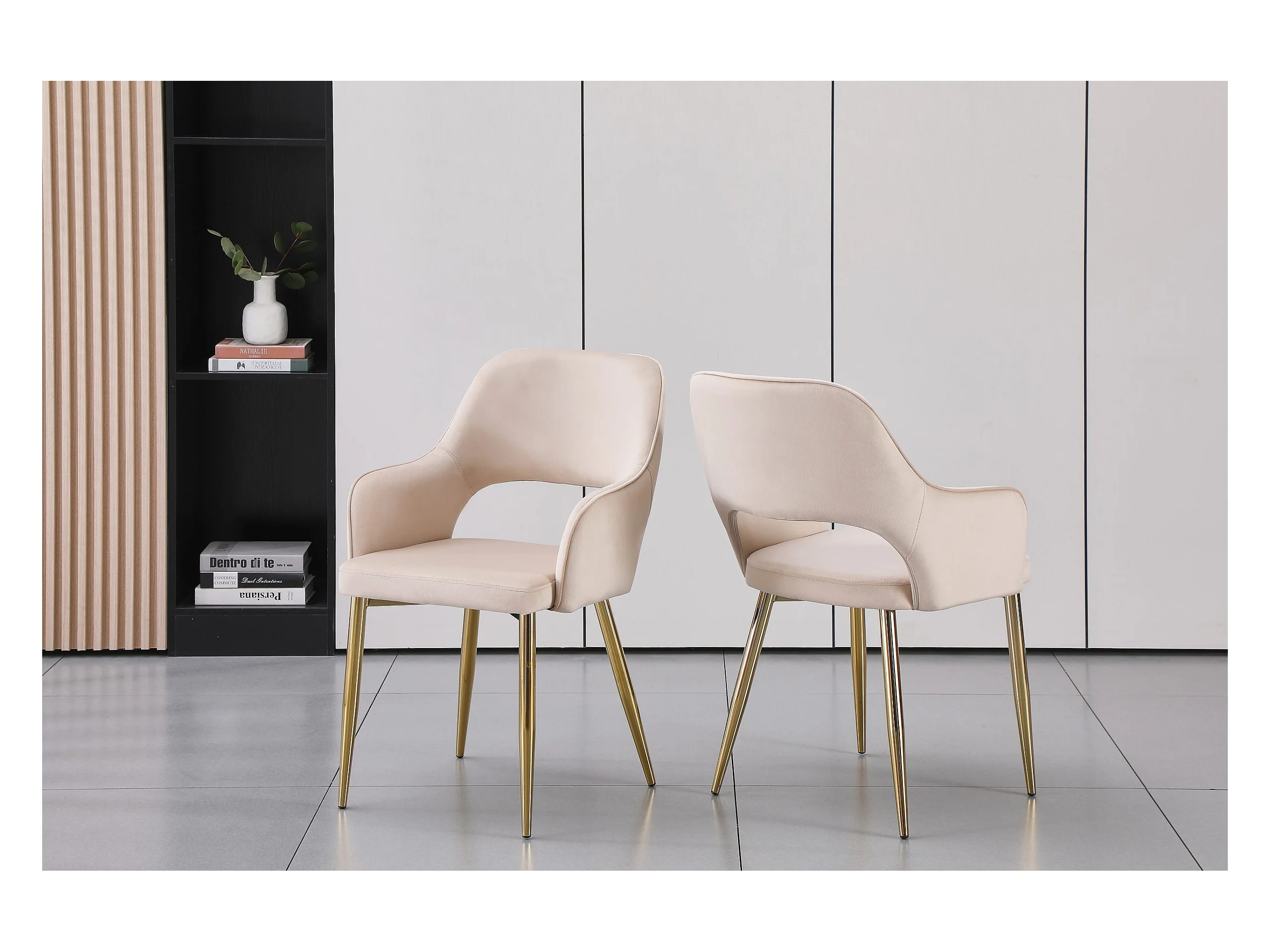 Stuhl 2er-Set aus Samt und goldfarbenem Metall - Beige - GIA