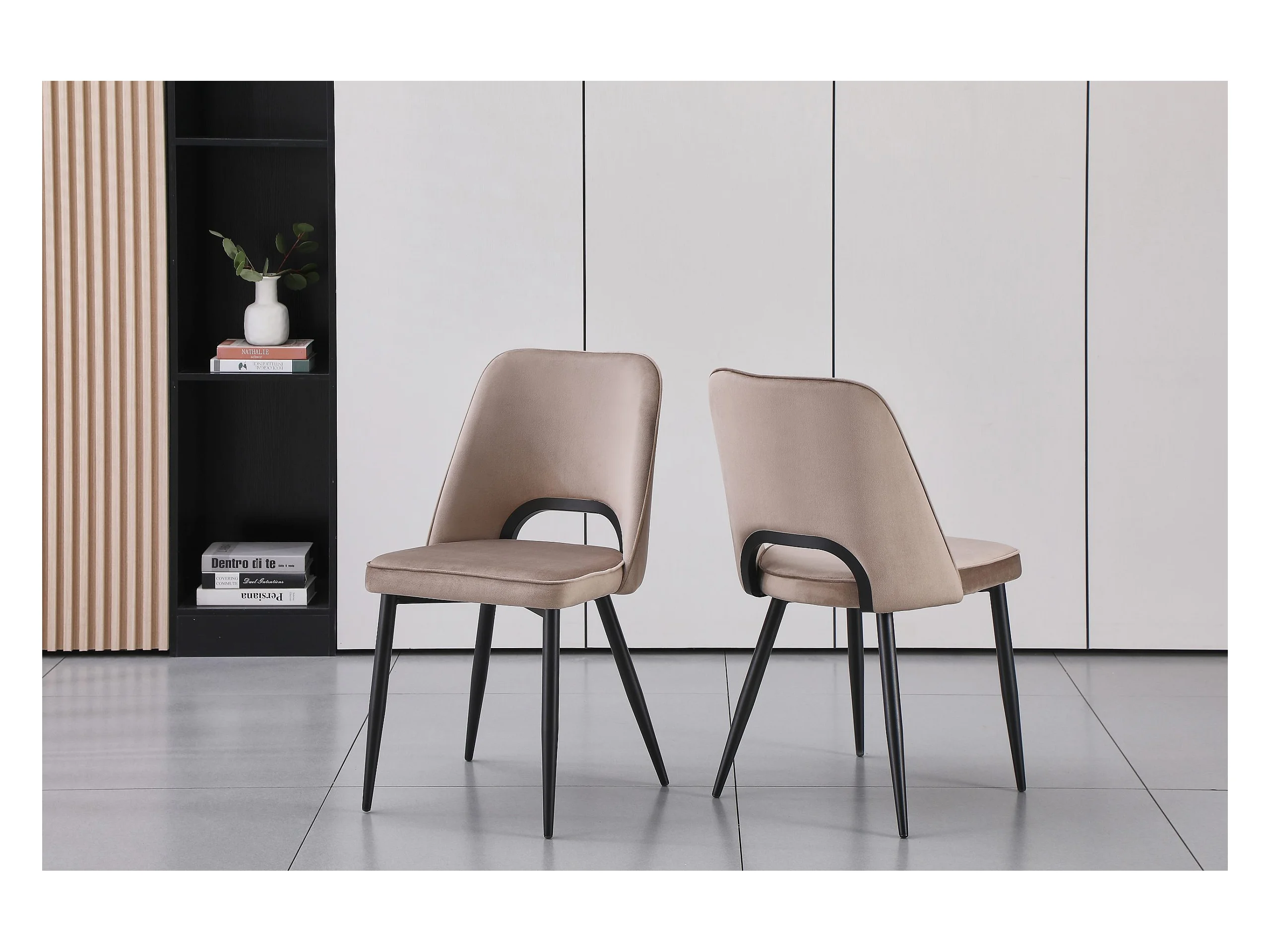 Stuhl 2er-Set aus Samt und schwarzem Metall - Taupe - LUNA