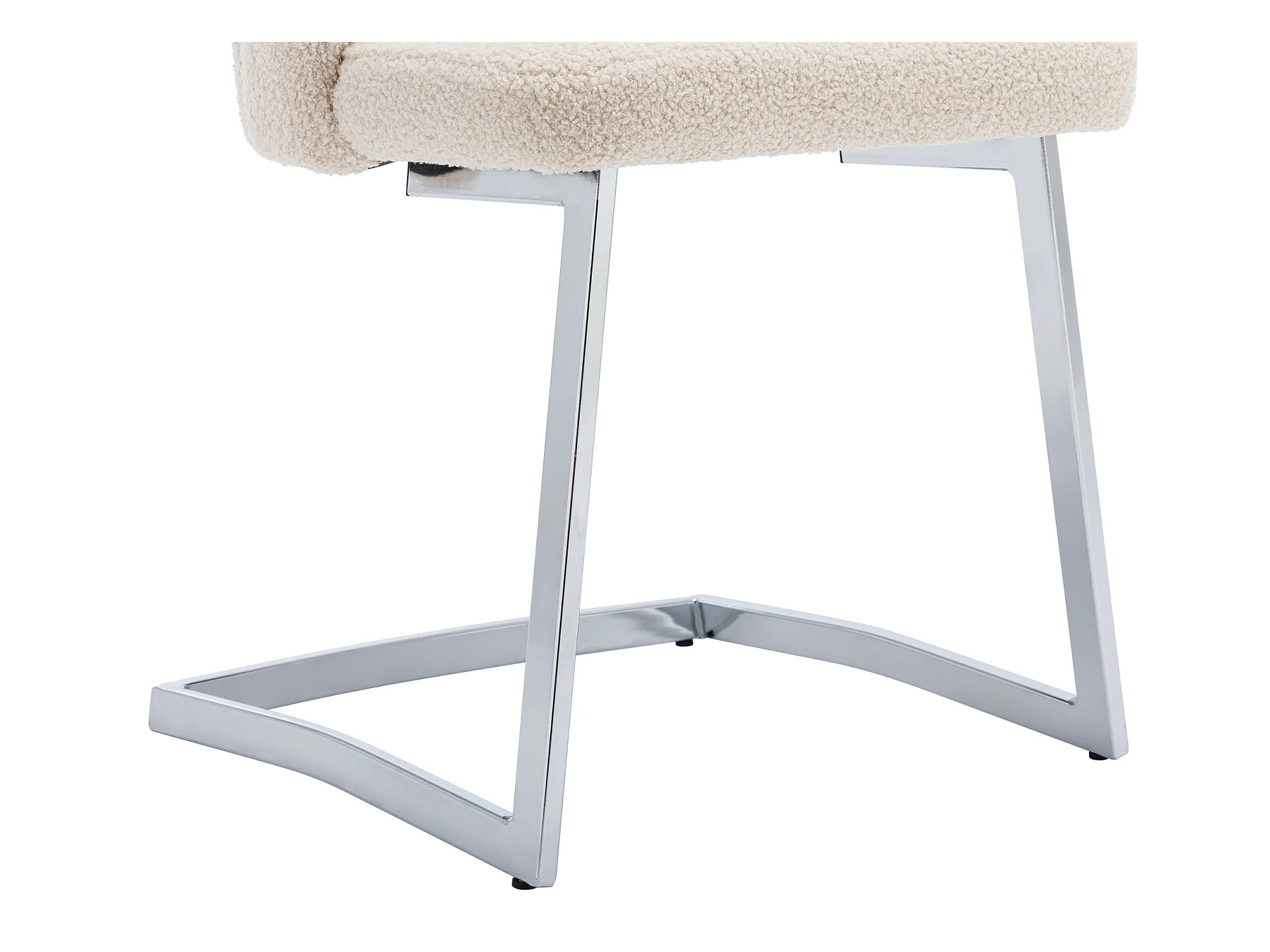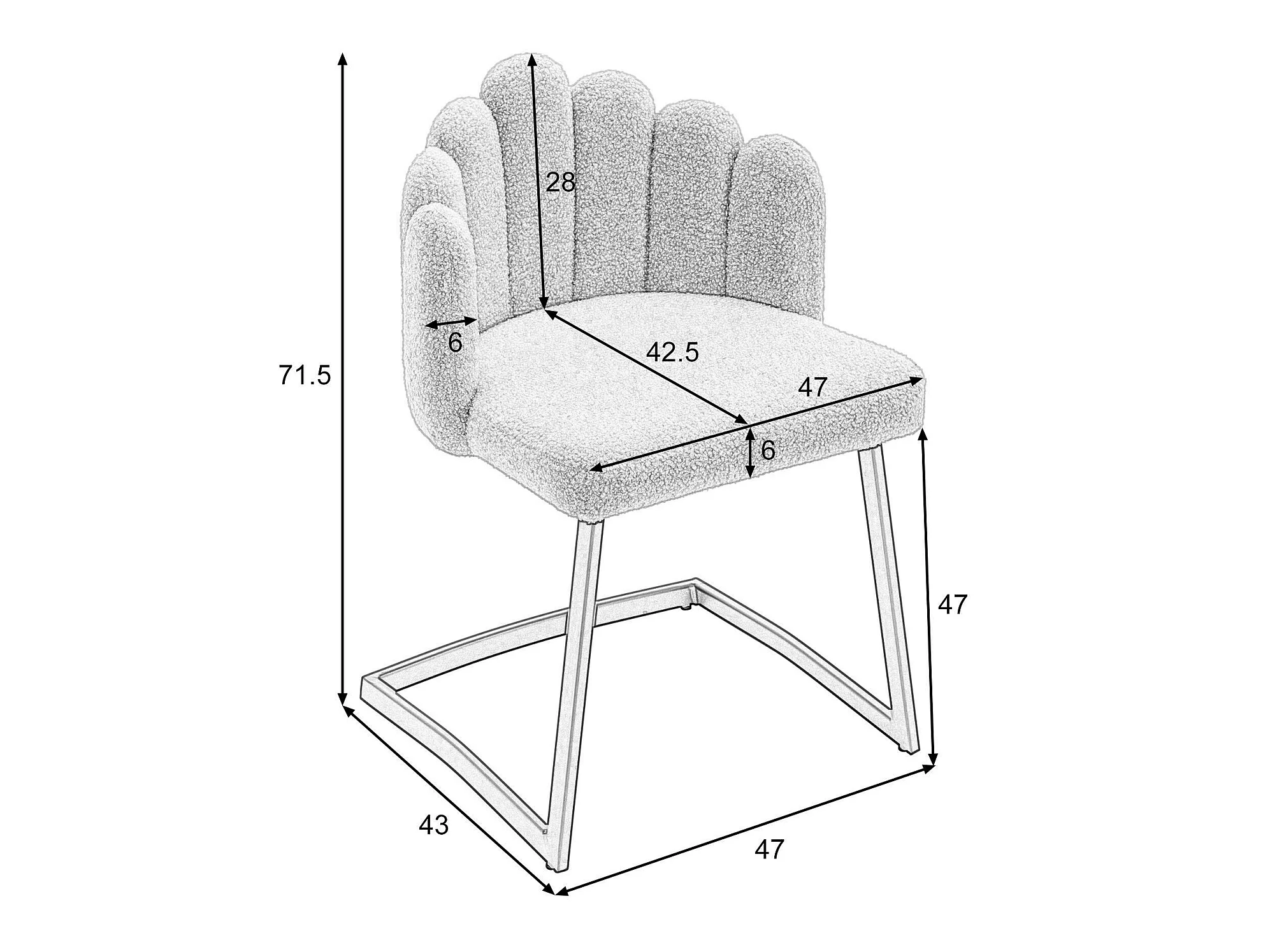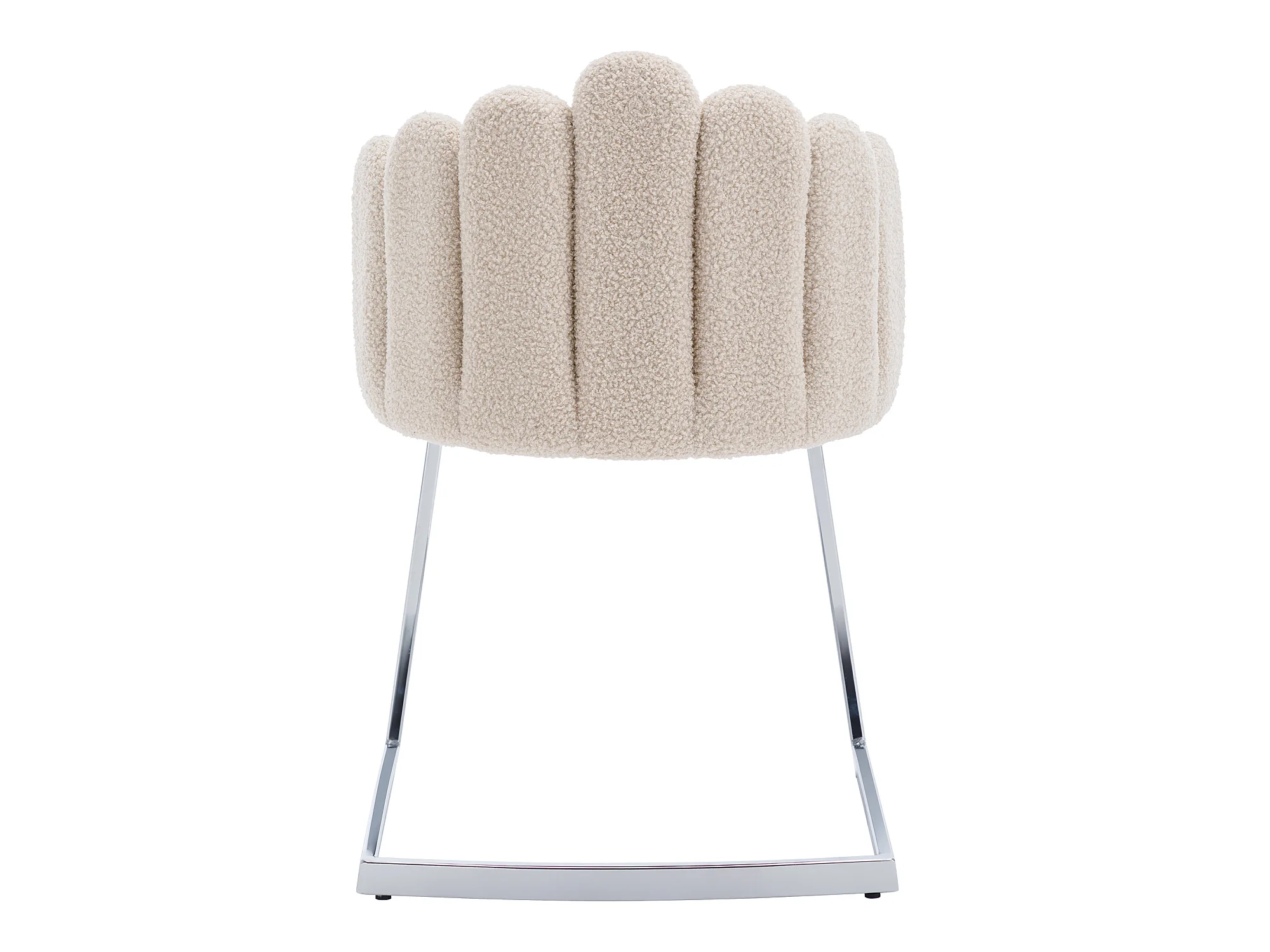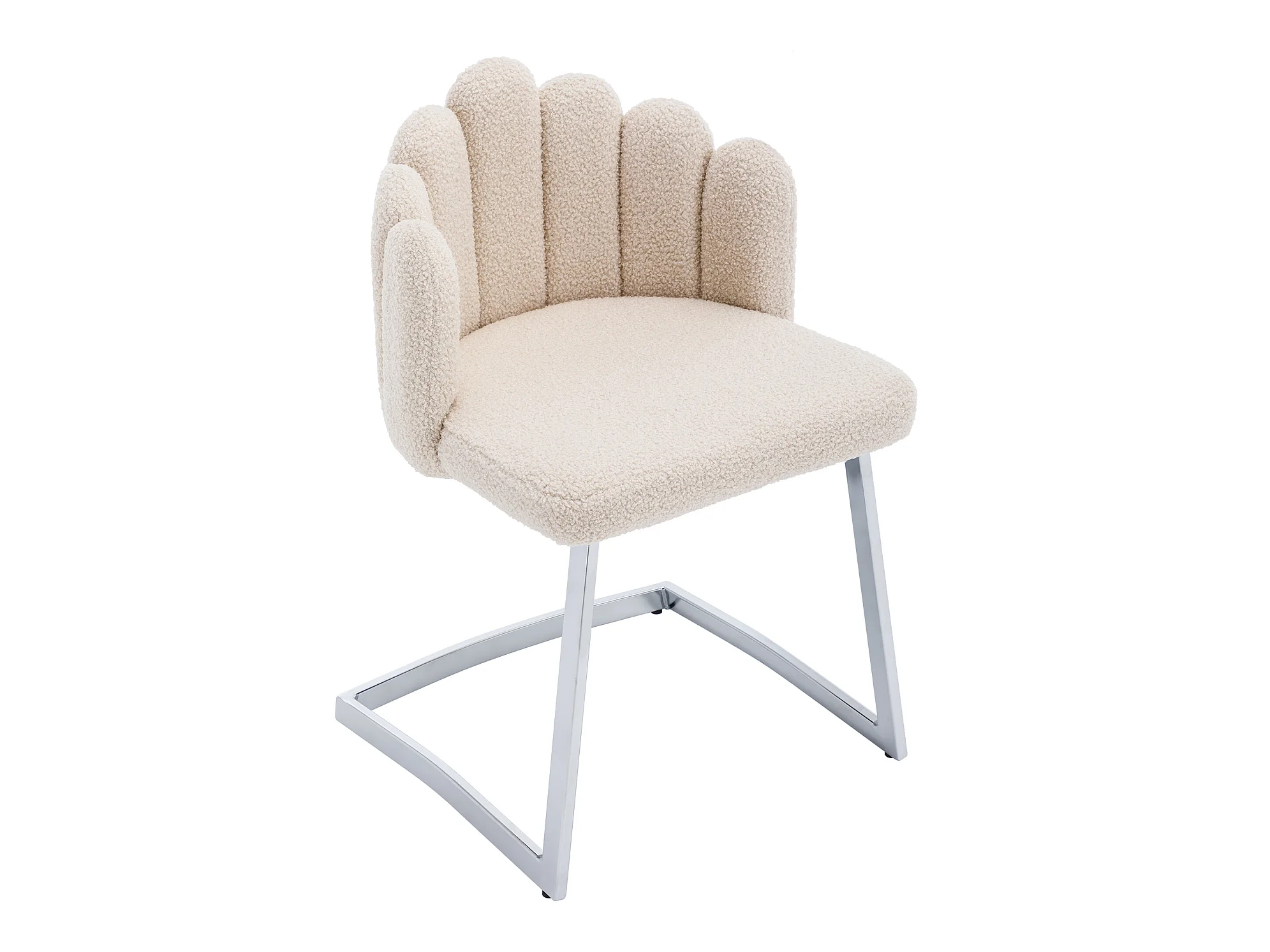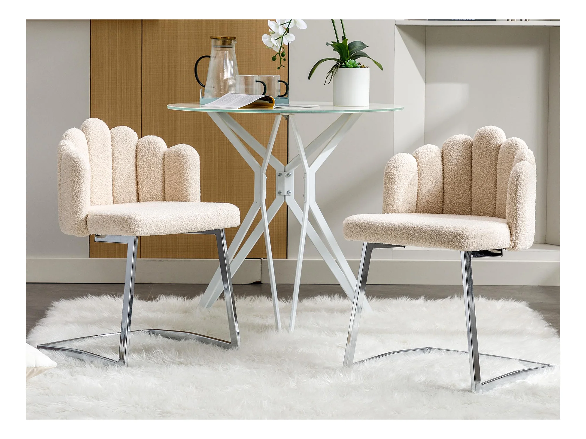 Stuhl 2er-Set – L-förmige Struktur – blütenblattförmige Rückenlehne – Kaschmir – Beige und Silber