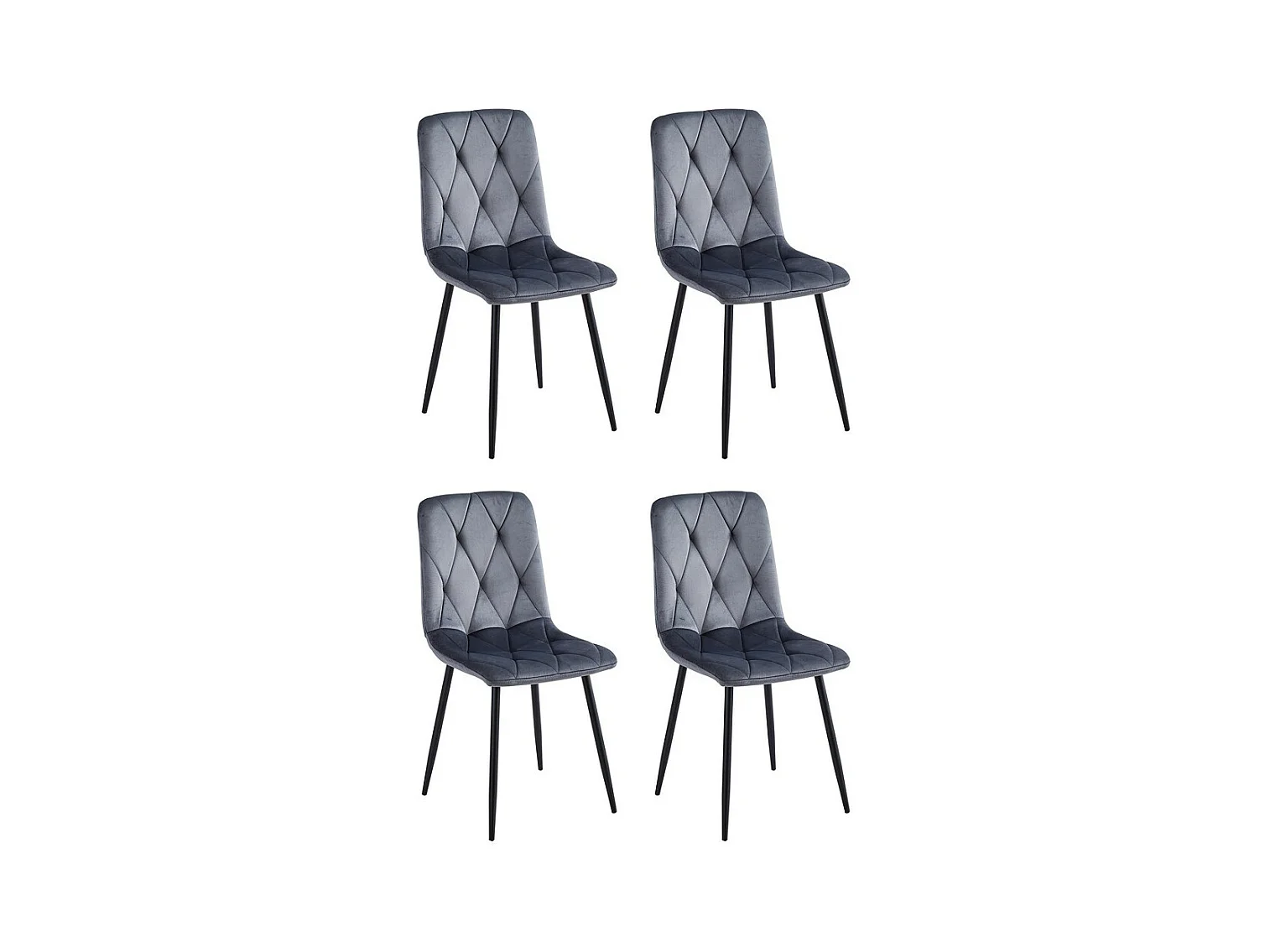 Stuhl 4er-Set - Stoff & schwarzes Metall - Grau - MELKO